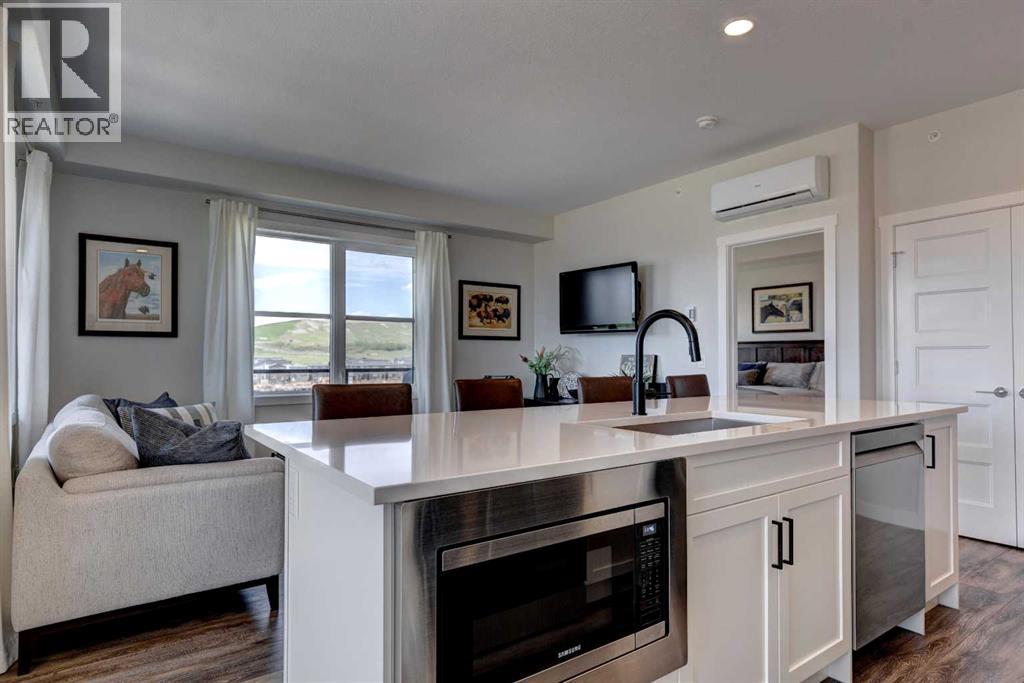Unbelievable Price!!!! Simple Life Style Starts Here!!! Make this your new home today!!! Welcome to Bow 360, A very cool Boutique condo experience where luxury meets lifestyle. This stunning top-floor corner unit offers the ultimate blend of style, comfort, and convenience. Featuring 2 spacious bedrooms and 2 beautifully appointed bathrooms, this home is designed for both everyday living and exceptional entertaining.Step into a chef-inspired kitchen complete with sleek quartz countertops, premium finishes, and an open-concept layout that flows seamlessly into the bright and airy living space. The expansive southwest-facing wraparound deck floods the home with natural light and offers panoramic views, perfect for morning coffee or evening sunsets.Enjoy the comfort of central air conditioning, the ease of in-suite laundry, and the practicality of titled underground parking and extra owned storage. With modern elegance throughout, this home is a rare find, this checks every box. Nestled in the sought after community of Wolf Willow where nature meets luxury and comfort with the walking, bike paths through fish creek park just out your front door. This location can't be beat with the opportunity to swing the clubs at the Blue Devil Golf course or wet your feet in the Bow River on those hot summer days. Why wait to build when you can have it all—style, sophistication, and affordability—right now?This is more than a condo. This is a lifestyle.Book your private showing today and experience Bow 360 at its finest. (id:53676)