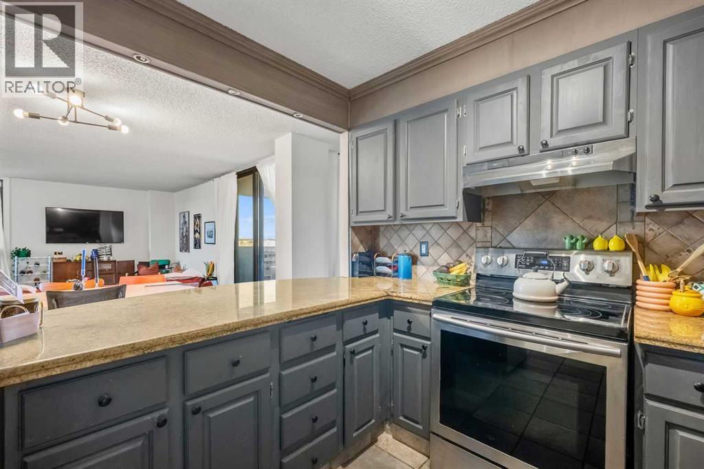 Spacious Corner Unit in the Heart of Downtown Calgary – 1 Bed + Den | Prime Location. Welcome to urban living at its finest! This exceptionally large 1 bedroom + den, 1 bathroom corner unit offers an unbeatable combination of space, natural light, and location – all in the vibrant core of Downtown Calgary.Boasting over 935 SQFT of thoughtfully designed living space, this open-concept layout is perfect for professionals, investors, or anyone seeking the convenience of downtown living without sacrificing comfort. The expansive floor-to-ceiling windows flood the home with natural light and offer stunning cityscape views, while the spacious den/office provides the ideal work-from-home setup or flex space for guests or hobbies. The contemporary open concept kitchen features stainless steel appliances, and sleek cabinetry, making it perfect for cooking and entertaining. The primary bedroom is bright and spacious with ample closet space, and the 4-piece bathroom includes modern finishes, and fresh paint. Building amenities include SUANA / PICKLEBALL COURT / FITNESS CENTER (id:53676)