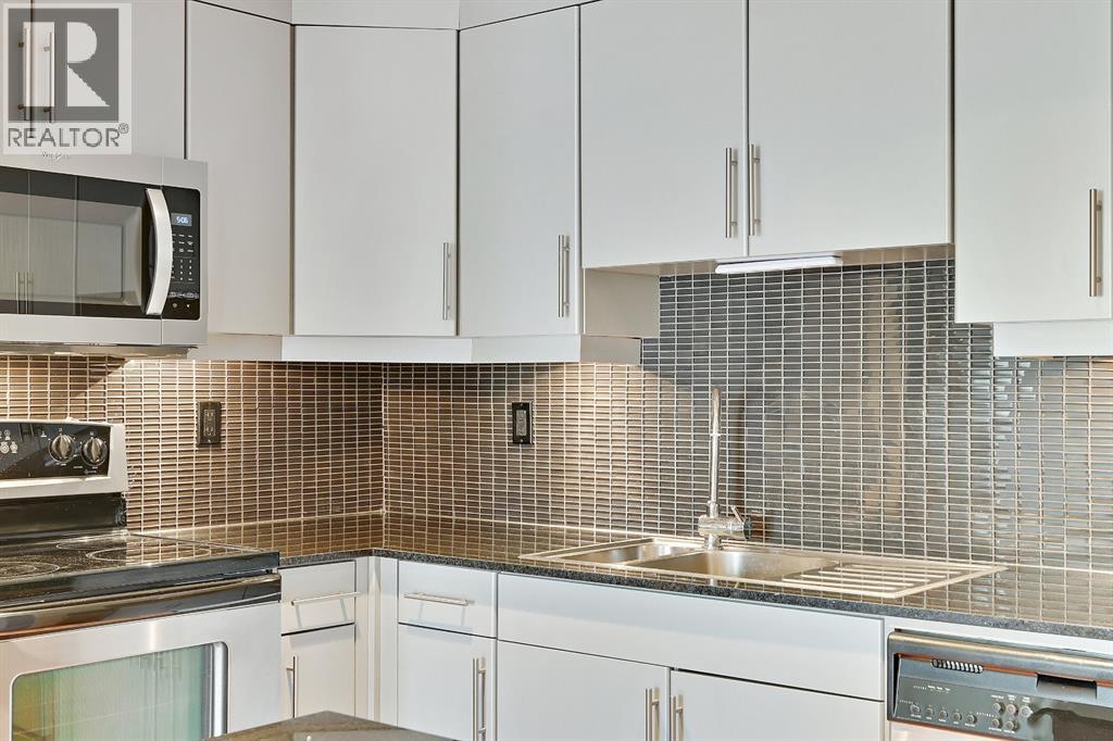 Welcome to your new home! This stunning top-floor 1 bedroom, 1 bathroom condo is the perfect opportunity for first-time buyers or savvy investors alike. Designed with an open-concept layout, the home is finished with rich hardwood floors, granite countertops, a perfectly sized kitchen island, and sleek stainless steel appliances. Natural light pours through the large balcony doors, creating a bright and inviting living space; ideal for enjoying those sunny summer days. The spacious primary bedroom offers plenty of comfort, while the 4-piece bathroom showcases a fully tiled bathtub. For added convenience, the unit includes in-suite laundry with a stackable washer and dryer. An assigned parking stall is also included. Perfectly located just minutes from downtown Calgary, the Bow River pathways, and some of the city’s best restaurants, shopping, and amenities, this home combines modern comfort with unmatched urban convenience.Opportunities like this don’t come up often. Schedule your private showing today! (id:53676)