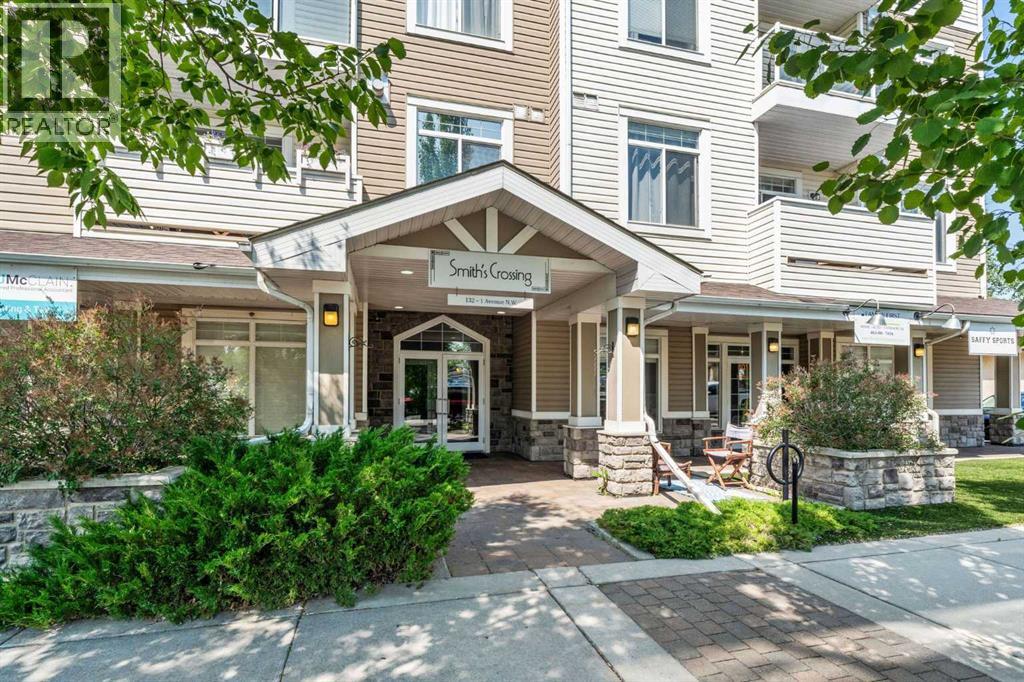 CHECK OUT OUR 24/7 VIRTUAL OPEN HOUSE. Welcome to this bright and inviting top-floor end unit, nestled in a charming boutique building right in the heart of downtown Airdrie! Perfectly located, this home is just a short stroll away from parks, grocery stores, banks, shopping, and more—making daily errands and weekend adventures incredibly convenient. Step inside and you'll find a thoughtfully designed space with high ceilings that create a wonderfully open and airy feel. The open-concept kitchen and living area is warm and welcoming, complete with a cozy corner fireplace, sleek granite countertops, stainless steel appliances, and ample cupboard space.The spacious primary bedroom offers a peaceful retreat, while the in-floor heating keeps things cozy all year round. For added convenience, the unit includes a stacked washer and dryer, as well as an assigned storage unit. Step out onto the sunny south-facing balcony—perfect for soaking up the sun or firing up the grill with the built-in BBQ hook-up.Other highlights include a titled underground parking space to keep your vehicle secure and warm during those chilly winter mornings. The unit has been well maintained. If you're looking for comfort, style, and unbeatable location, this top-floor gem has it all! (id:53676)