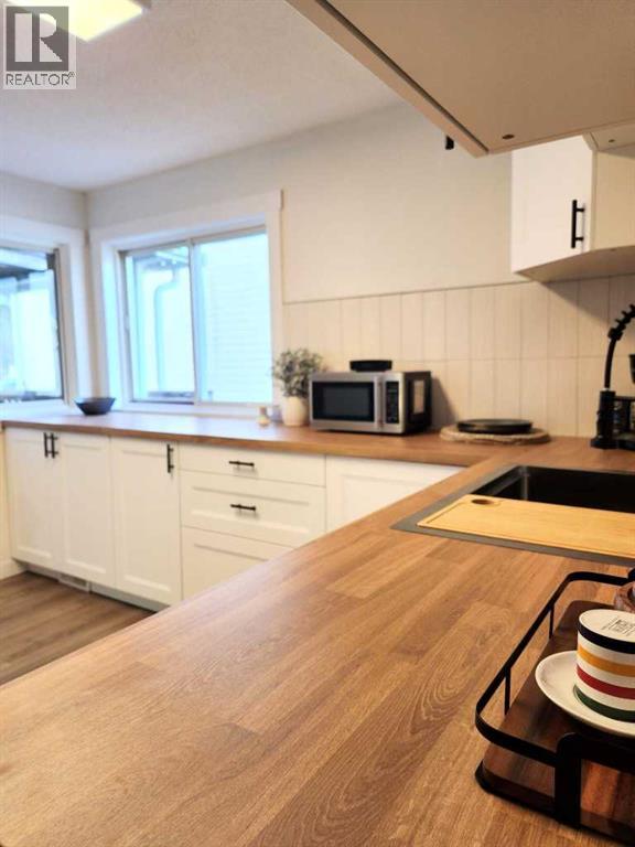 Welcome to this beautifully updated four-bedroom home, offering over 2500 hundred square feet of living space. The main level combines comfort and style, featuring two spacious bedrooms, an upgraded, modern bathroom, a large dining room ,and a brand-new kitchen. The kitchen is beautifully lit by two large windows and is equipped with sleek countertops, ample counter space, brand new cabinets, upgraded appliances, as well as a walk-in pantry, making it perfect for your culinary adventures. The main level also offers a large living room with a grand bay window, bringing in even more natural light. Additionally, there is the convenience of upstairs laundry. Downstairs, you'll find two comfortable bedrooms, a stylish renovated bathroom, and a generous open area that can be easily serve as a cozy TV room, games area, or versatile bonus space. The basement also offers incredible flexibility with rough-plumbing and electrical for a future kitchen and laundry setup- making it ideal for a secondary suite, mother-in-law suite, or income-generating rental income. Outside, you'll find an attached, covered 300-square deck and oversized double-car garage with plenty of room for a workspace and extra storage. Located in a quiet neighborhood, this home blends timeless charm with modern conveniences. Call your Realtor to show. (id:53676)