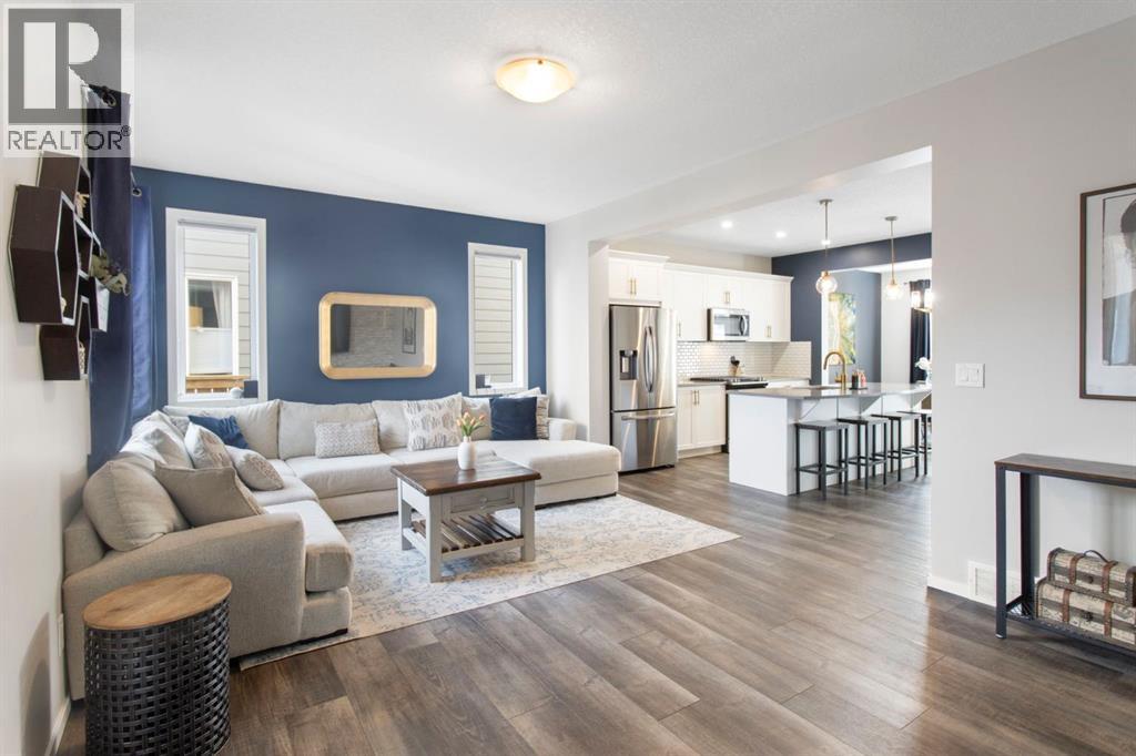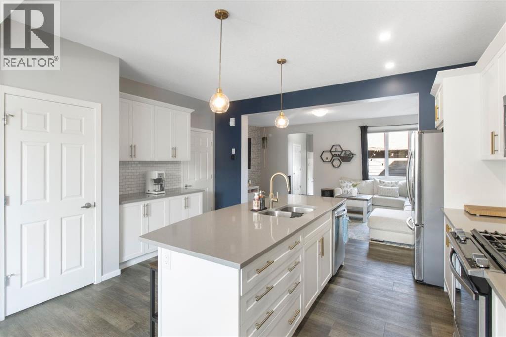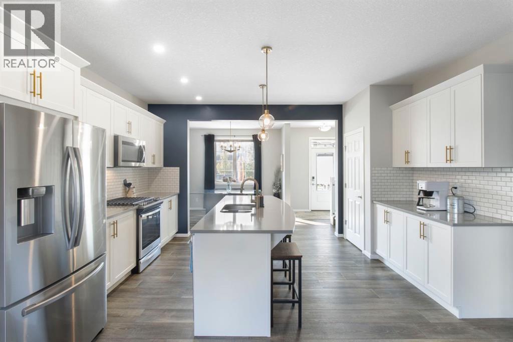 OPEN HOUSE SUNDAY OCTOBER 5TH FROM 2-4PM! Located in the thoughtfully designed community of Yorkville, this 3 bed 2.5 bath duplex offers airy living spaces, an attached two car garage and functionality throughout. Stepping inside you'll discover a bright and inviting front dining room with south facing windows with enough room for 8 guests comfortably. At the heart of the home you'll find a chef's dream with stylish quartz countertops, gas range, white shaker cabinets, stainless steel appliances and a pantry. The kitchen is complete with a large island holding seating for 4 and open site lines to your main floor living room. The living room is perfect for entertaining friends and family, watching the game on Sunday or cuddling up for a movie at the end of the night. At the back of the home you'll love the large mudroom that has direct access to your attached double garage. Off the mudroom you also have a half bath and access to the outdoor patio space with stamped concrete and a gas line. Upstairs you have 2 generous secondary bedrooms, a large 4 piece bathroom, a linen closet, a laundry room and a beautiful primary retreat. The primary bedroom has room for a king bed while showcasing a walk in closet and 5 piece en suite. The unfinished basement is your blank canvas offering a bathroom rough in, a large window and open concept floor plan for easy development and additional storage. This home is located close to parks, playground and Spruce Meadows. (id:53676)