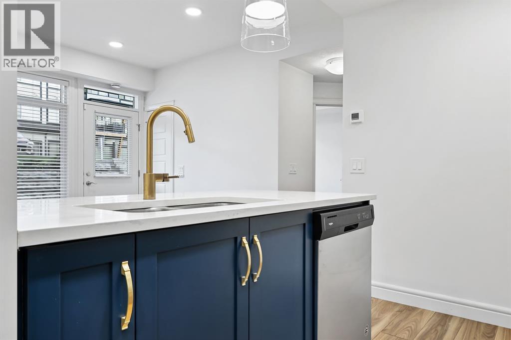 Quiet Location and Parking for 2 cars with this unit! Attached Garage and a Long driveway like this one are hard to find. This bright main floor townhome is located minutes away from the Seton YMCA and south Calgary Health Campus. The inviting bright and open floor plan offers a good size living room, well appointed Kitchen with lots of cabinets and Light coloured Quartz Countertops that are accented by modern blue cabinets. Stainless Steel appliances add to the decore and the peninsula Island offers an eating bar for your convenience. With the 4 piece Bathroom, ample size Primary Bedroom and a second bedroom/den you have lots of lifestyle choices. A Laundry area/furnace room offers so much convenience to have in your home. You can enjoy direct access to you insulated garage on those cold days as well! There are lots of shops, restaurants and amenities within walking distance and you have excellent access to major roads. Do not miss your chance too get this property. (id:53676)