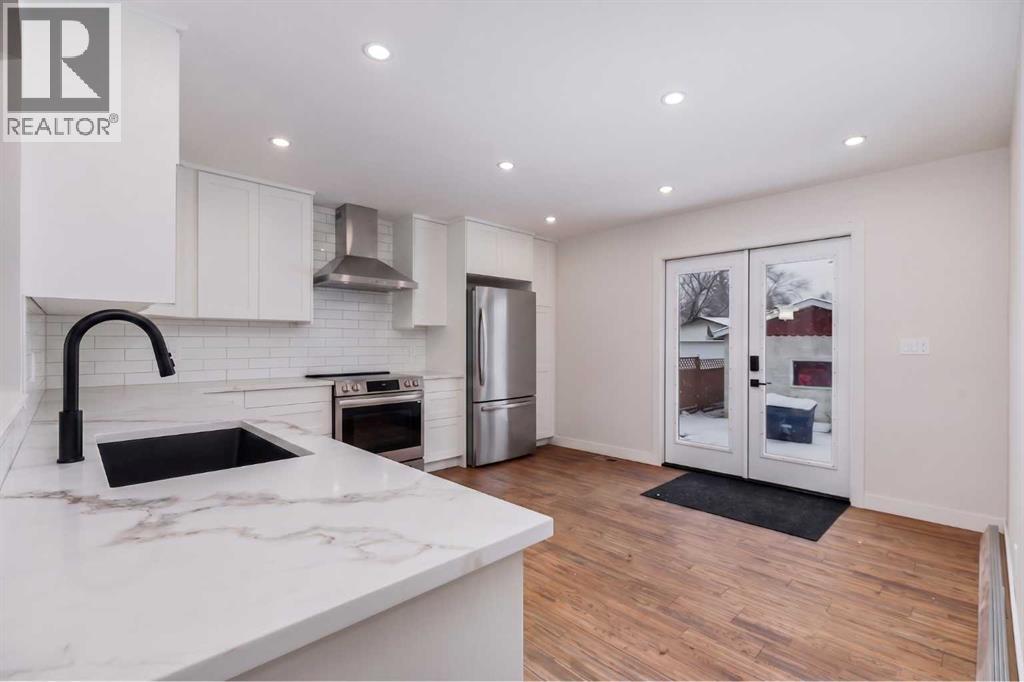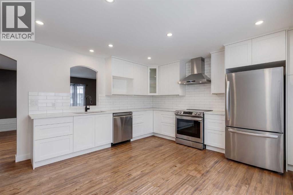 Looking for a detached home with a BRAND NEW KITCHEN & EN-SUITE BATHROOM in the low 500's? This may be the one for you. Outside you'll first notice the large lot sizes in this mature Airdrie neighbourhood. As you enter you'll come to the main living room featuring a wood burning fireplace & bay window to bring in lots of natural light. Next you'll come to the brand new kitchen with lots of cabinet space, QUARTZ COUNTERS and New Stainless Steel Appliances. Moving down the hall you'll come to the master bedroom, which is complete with a Walk-In Closet & New Ensuite-Bathroom! Also on this main level you'll find a great size second bedroom, and another full bathroom. Moving downstairs you'll notice the new vinyl plank flooring. Down here you'll find 2 additional rooms that could be used as office space, bedrooms, or flex spaces, as well as a large rec room. Completing the basement you'll find a dedicated storage room, half bathroom, laundry. Don't forget the brand new furnace in 2025! Moving outside you'll come to the large SOUTH FACING BACKYARD, with lots of grass space, RV Parking, and a Single Detached Garage (id:53676)