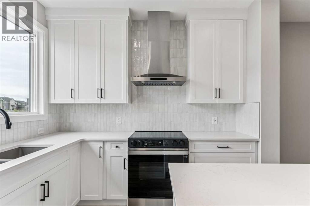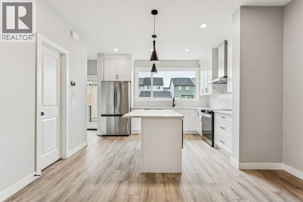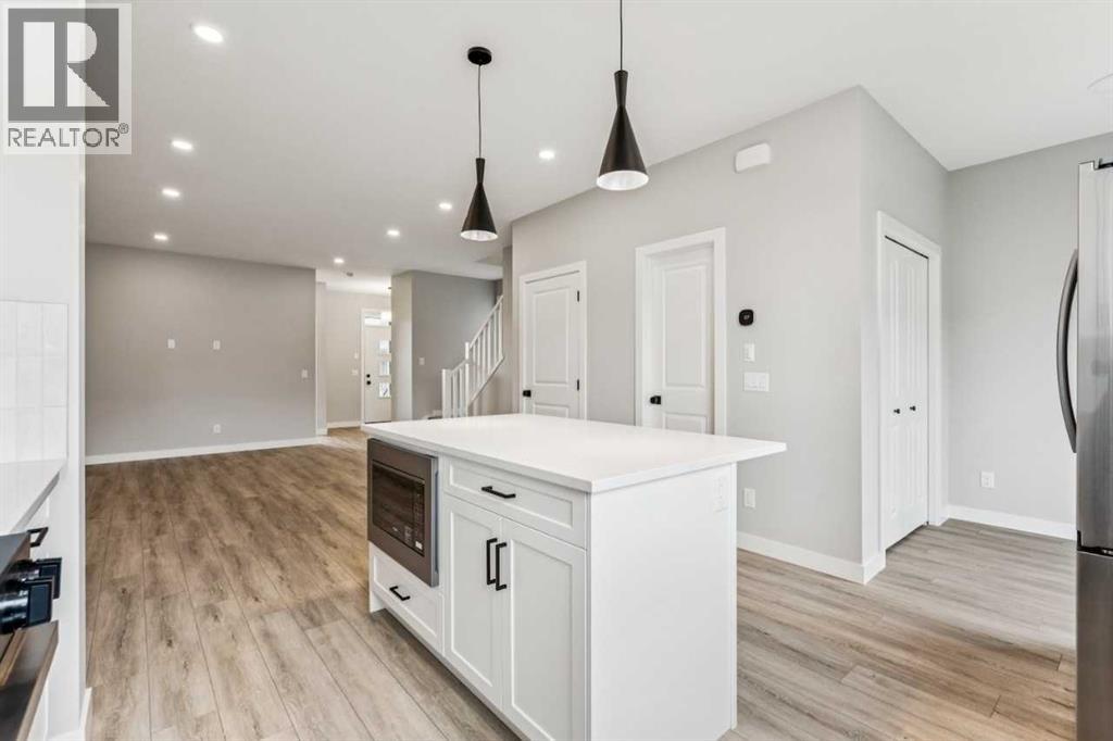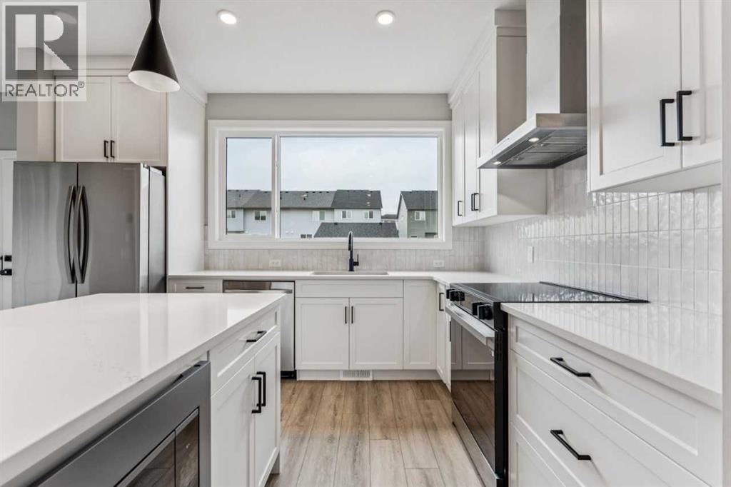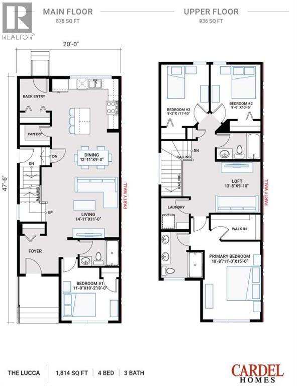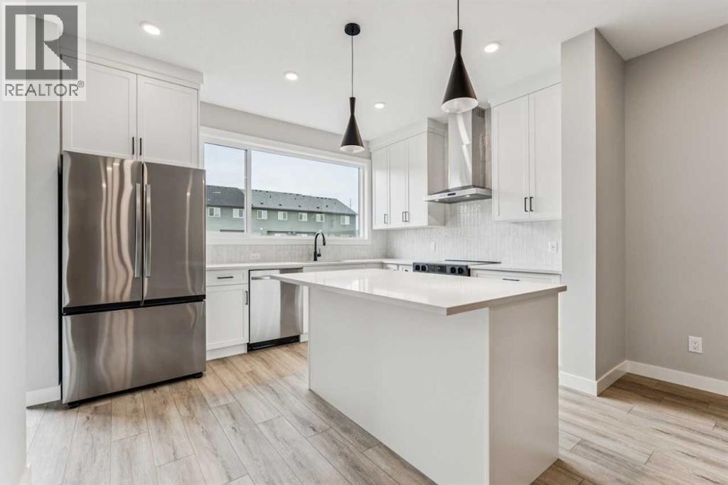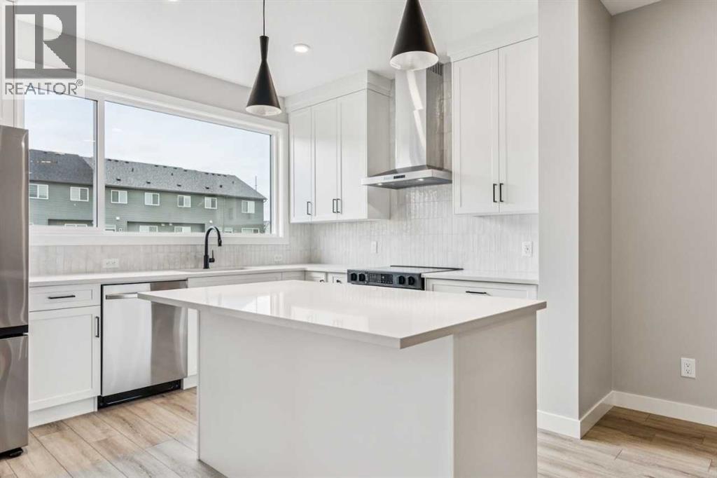 The Lucca by Cardel Homes, a Premium Paired home at 1,814 sq. ft. of well-designed living space. Its farmhouse-inspired exterior features Hardie board and vinyl siding, black-framed windows, and a modern, open-concept layout. The interior boasts luxury vinyl plank flooring throughout the main floor, upper-floor loft, and hallway, creating a cohesive feel. The rear-facing kitchen overlooks the backyard and features Winter-stained maple cabinetry, quartz countertops, and Samsung stainless steel appliances. A chimney hood fan, large island, and picture window above the granite sink elevate both style and practicality. A functional back entry and walk-in pantry, ensures everyday convenience. At the front, a main-floor bedroom and full bath provide flexibility. Upstairs, the primary bedroom offers a dual-sink ensuite, while two additional bedrooms are separated by a loft space and a conveniently located laundry room. Cardel Homes offers better and design and quality. Photos are representative. (id:53676)