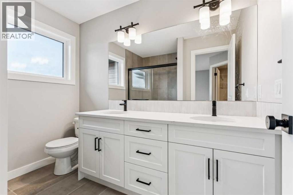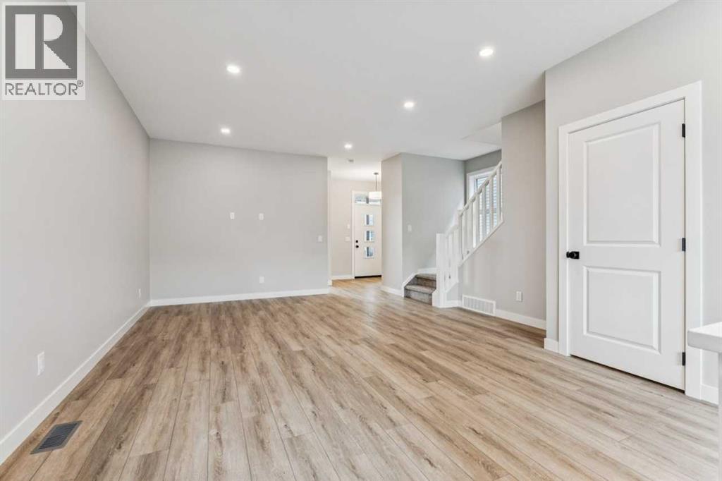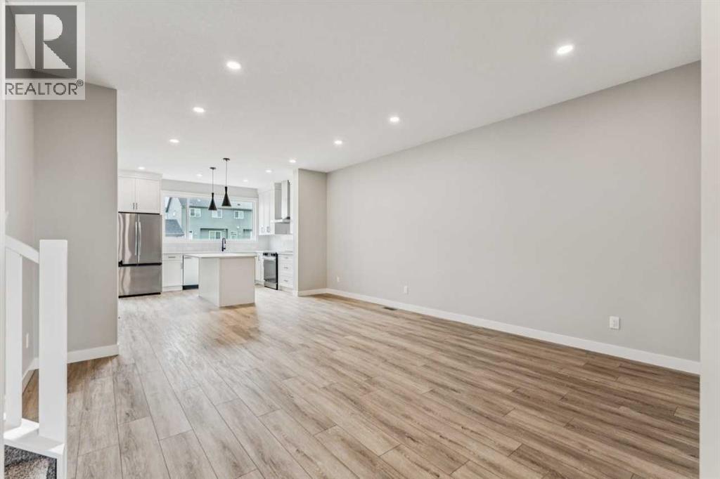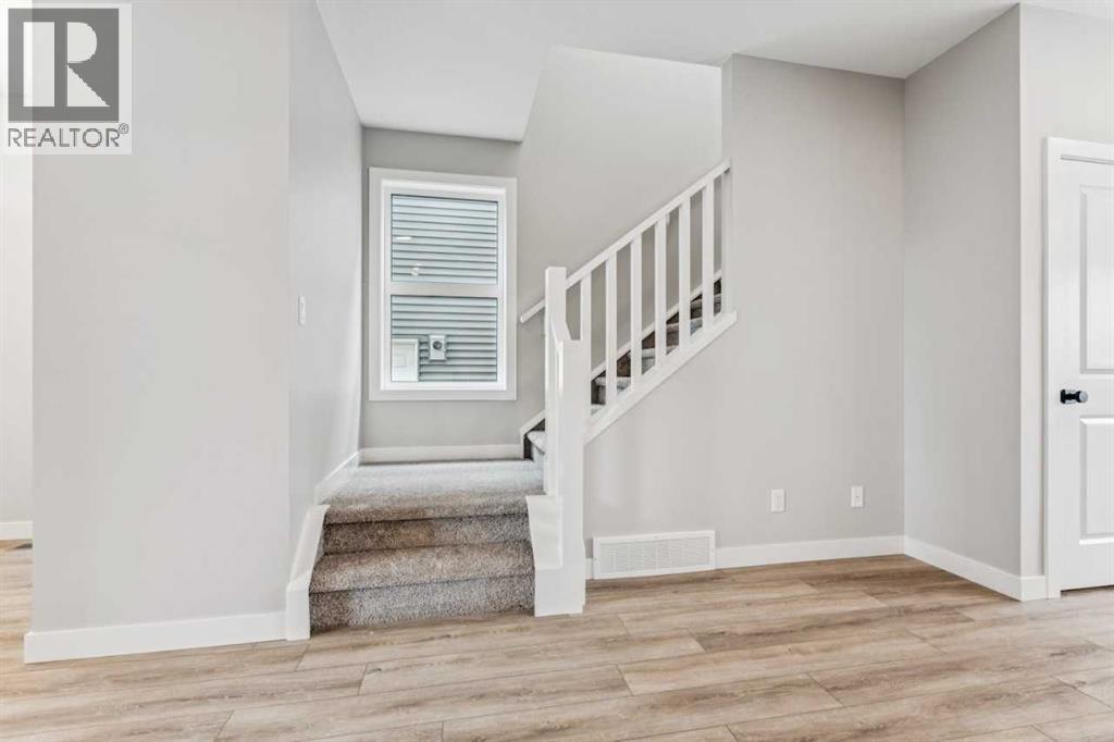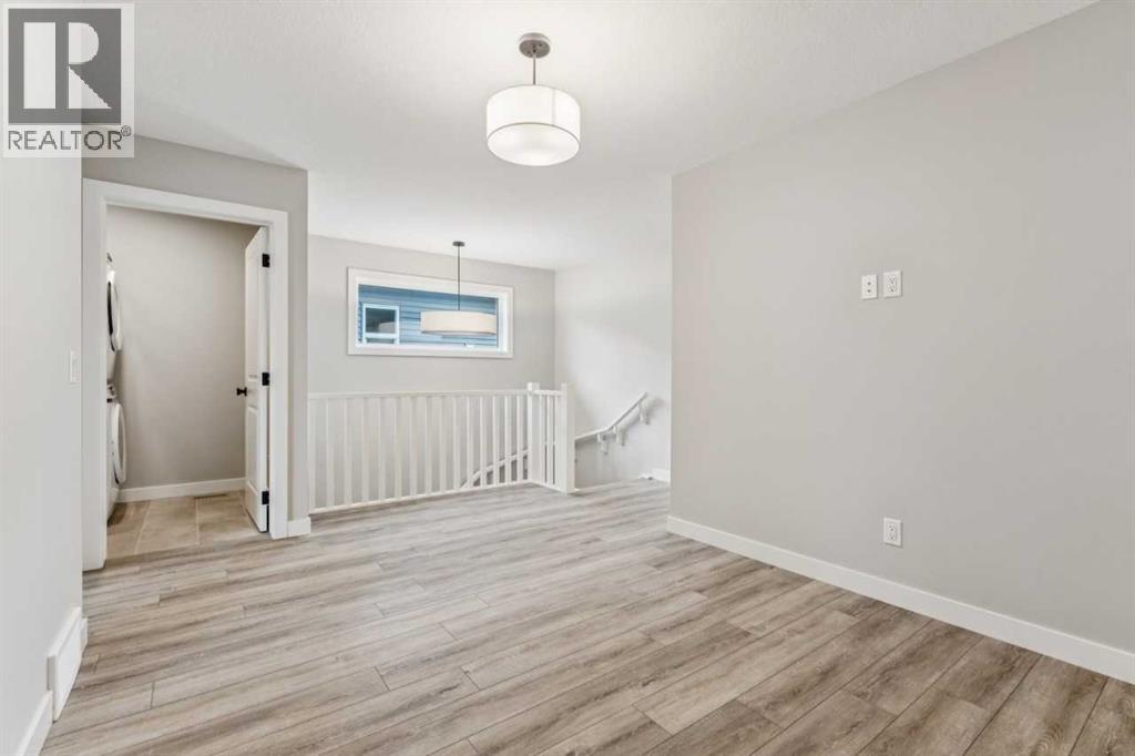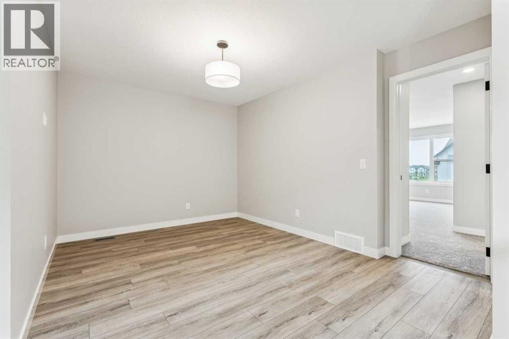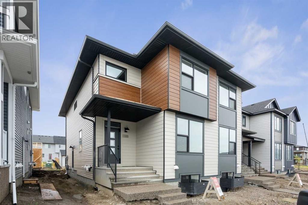 The Lucca by Cardel Homes, a Premium Paired home at 1,814 sq. ft. of well-designed living space. Its farmhouse-inspired exterior features Hardie board and vinyl siding, black-framed windows, and a modern, open-concept layout. The interior boasts luxury vinyl plank flooring throughout the main floor, upper-floor loft, and hallway, creating a cohesive feel. The rear-facing kitchen overlooks the backyard and features Winter-stained maple cabinetry, quartz countertops, and Samsung stainless steel appliances. A chimney hood fan, large island, and picture window above the granite sink elevate both style and practicality. A functional back entry and walk-in pantry, ensures everyday convenience. At the front, a main-floor bedroom and full bath provide flexibility. Upstairs, the primary bedroom offers a dual-sink ensuite, while two additional bedrooms are separated by a loft space and a conveniently located laundry room. Cardel Homes offers better and design and quality. Photos are representative. (id:53676)
