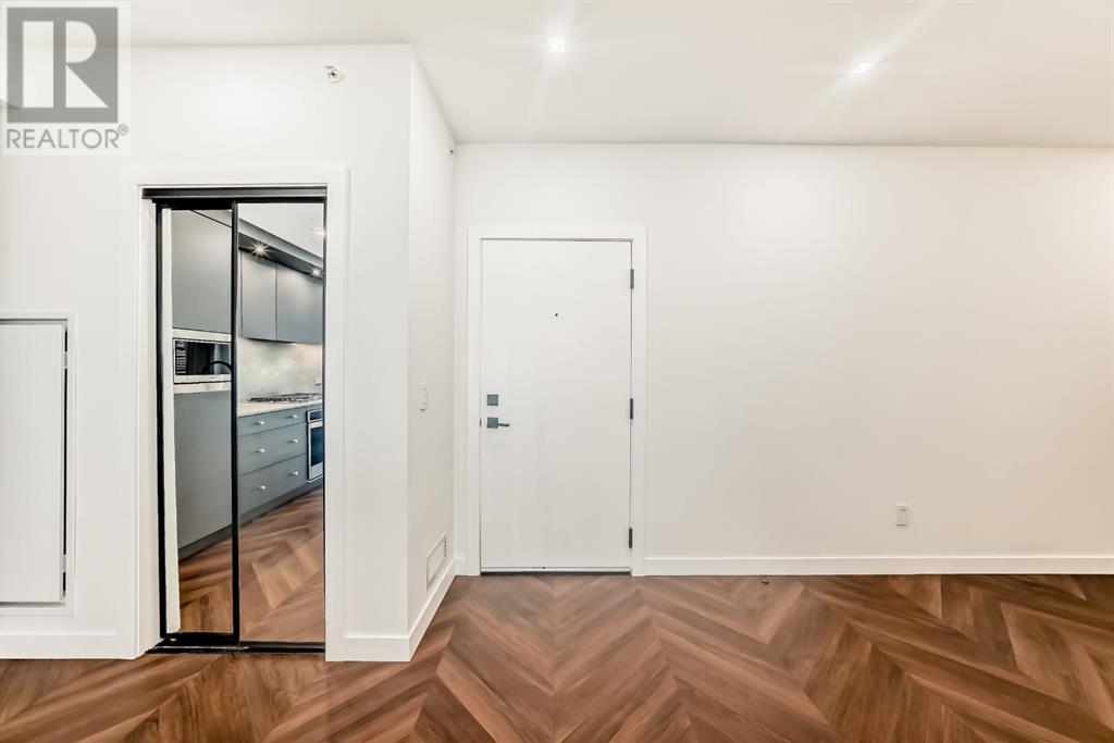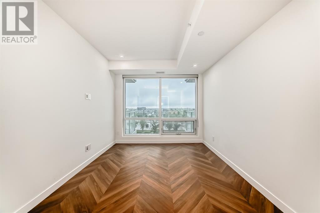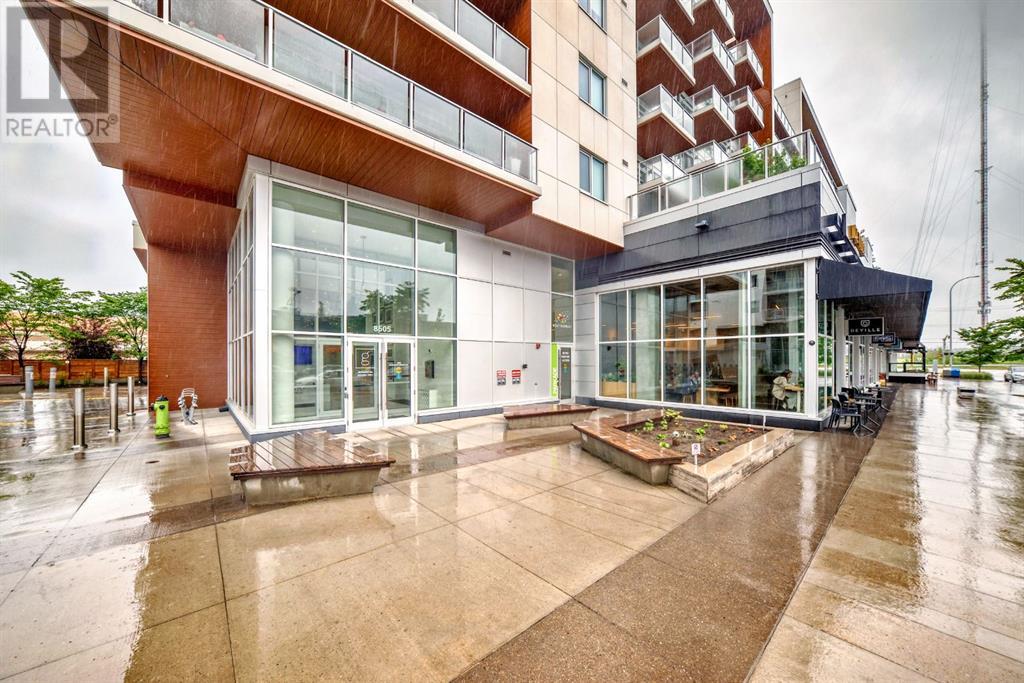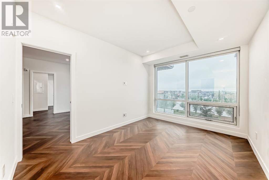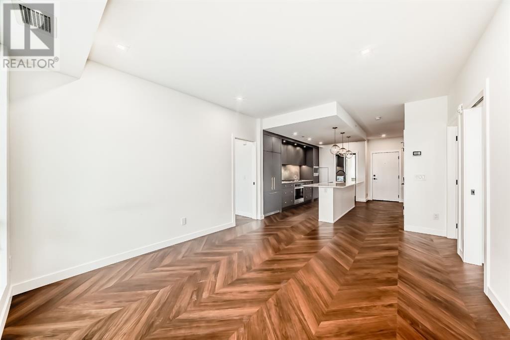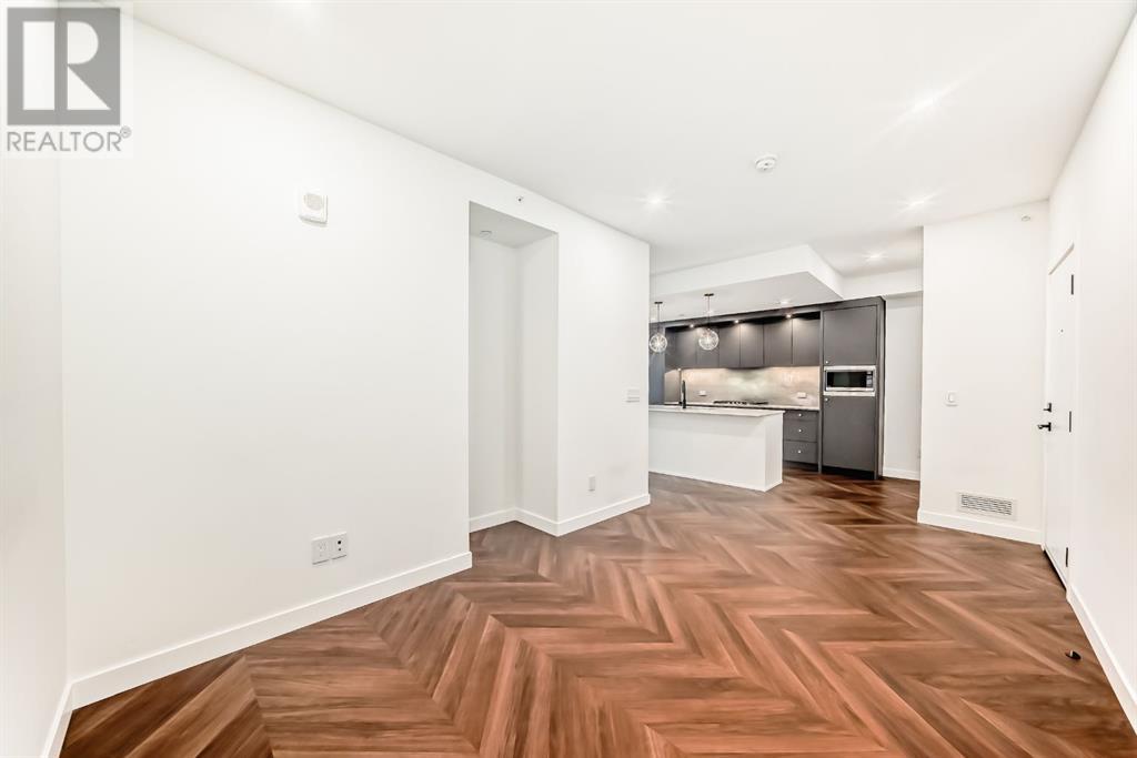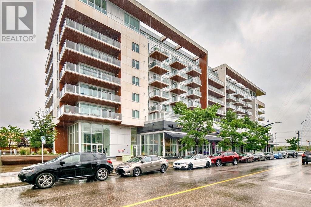 Step into this stunning 2-bedroom, 2-bathroom plus den condo that perfectly blends modern luxury with everyday comfort. Featuring 9-ft ceilings, floor-to-ceiling windows, and stylish herringbone flooring, this bright and open space includes a gourmet kitchen with quartz countertops, full-height soft-close cabinetry, LED lighting, and premium appliances. The spacious primary bedroom boasts a walk-in closet and a 4-piece ensuite, while the second bedroom is paired with a sleek 3-piece bath. Enjoy the convenience of in-suite laundry, a private balcony, and access to amenities like concierge service, a social lounge, bike storage, and vibrant ground-floor retailers. Located just 15 minutes from downtown and 5 minutes from WinSport, with easy access to major roads, this home offers the perfect balance of urban living and outdoor lifestyle. (id:53676)