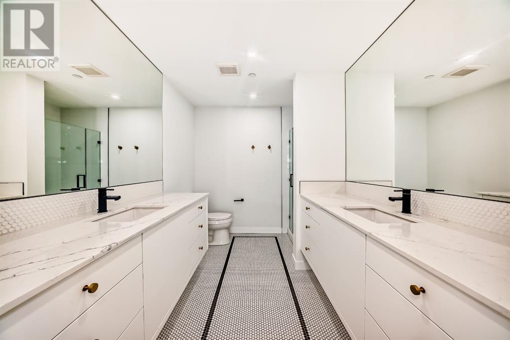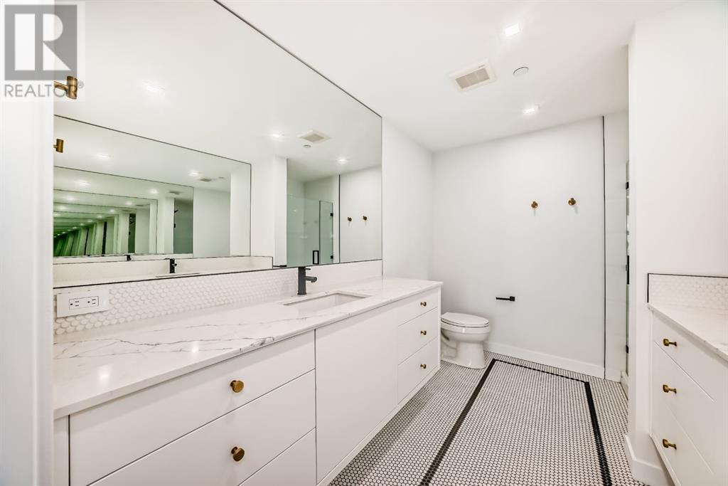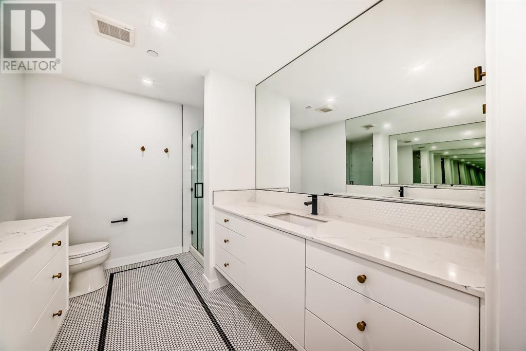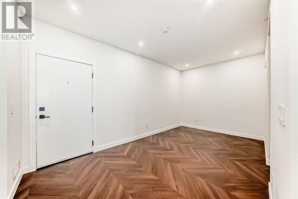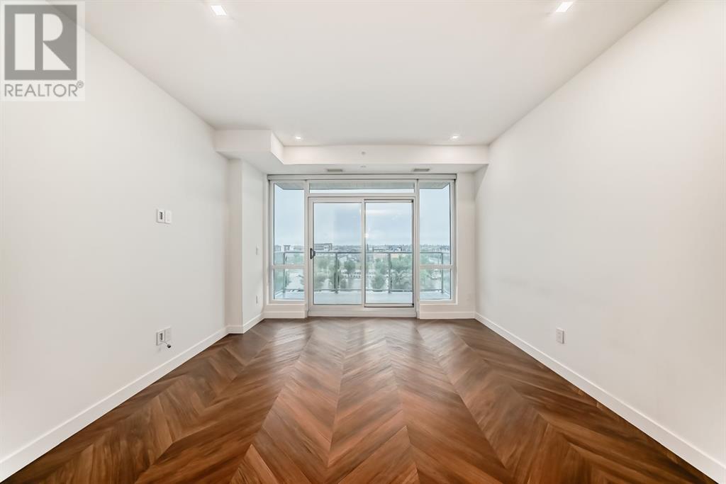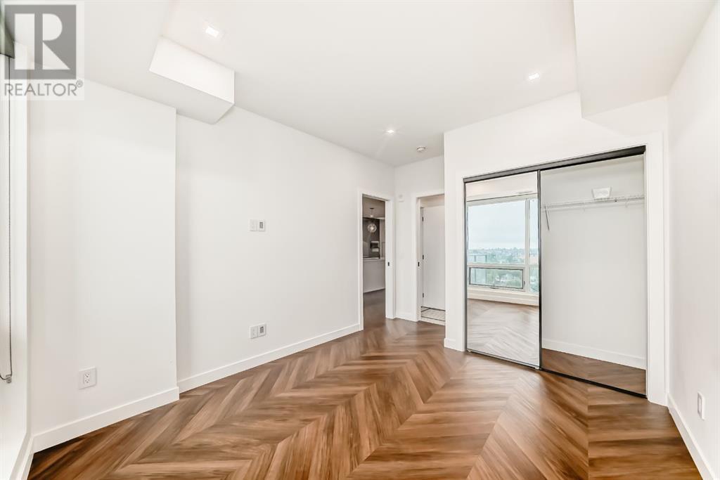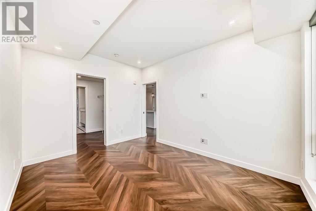 Step into this stunning 2-bedroom, 2-bathroom plus den condo that perfectly blends modern luxury with everyday comfort. Featuring 9-ft ceilings, floor-to-ceiling windows, and stylish herringbone flooring, this bright and open space includes a gourmet kitchen with quartz countertops, full-height soft-close cabinetry, LED lighting, and premium appliances. The spacious primary bedroom boasts a walk-in closet and a 4-piece ensuite, while the second bedroom is paired with a sleek 3-piece bath. Enjoy the convenience of in-suite laundry, a private balcony, and access to amenities like concierge service, a social lounge, bike storage, and vibrant ground-floor retailers. Located just 15 minutes from downtown and 5 minutes from WinSport, with easy access to major roads, this home offers the perfect balance of urban living and outdoor lifestyle. (id:53676)