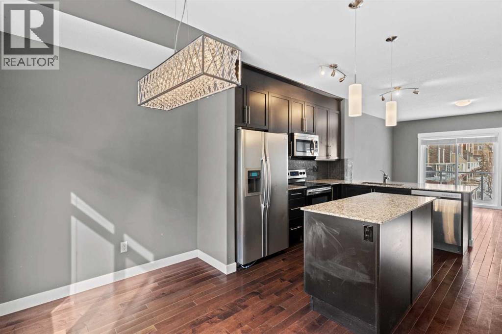 Welcome to this beautifully upgraded townhome in the heart of Skyview Ranch! Offering an OPEN-CONCEPT LAYOUT, MODERN FINISHES, and exceptional privacy, tucked away from busy roads and overlooking a peaceful courtyard from your PRIVATE BALCONY. The entry level features a SPACIOUS FOYER, a versatile flex room perfect for a home office, gym, or guest space, and a functional mudroom with direct access to the attached DOUBLE GARAGE.The main floor impresses with 9’ CEILINGS, rich hardwood flooring, and abundant NATURAL LIGHT throughout. The stunning kitchen is a true highlight, complete with GRANITE COUNTERTOPS, STAINLESS STEEL appliances, and elegant dark cabinetry. The open dining area is perfect for entertaining, while the bright living room seamlessly extends onto your private balcony. A convenient 2-piece bath and built-in workspace add to the functionality of this level. Upstairs, enjoy the convenience of UPPER-FLOOR LAUNDRY, along with a spacious primary retreat featuring a 4-piece ensuite. Two additional well-sized bedrooms and a full bathroom—both finished with granite countertops—complete the upper level. With OVER 1,530 SQ FT of living space and LOW condo fees, this home offers incredible value. Ideally located within walking distance to schools, parks, and amenities, and just minutes from the airport, Deerfoot Trail, and Stoney Trail—making commuting effortless. Perfect for first-time buyers, growing families, or investors—this is a move-in-ready opportunity you don’t want to miss! (id:53676)