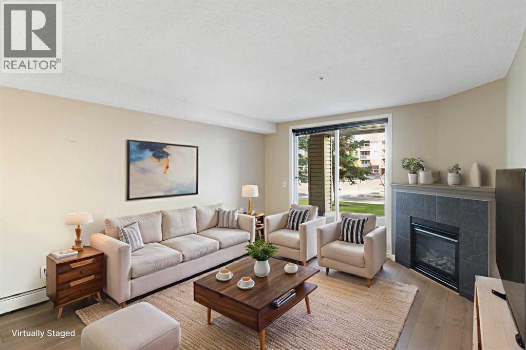 Welcome to this inviting main floor condo in the heart of McKenzie Towne, perfectly refreshed with new paint throughout and ready for its next owner. Offering a smart and functional layout, this 2-bedroom, 1-bath unit combines comfort and convenience with all the features you’ve been looking for. Step inside and you’ll appreciate the open concept design, with laminate flooring carrying through the main living areas. The kitchen offers plenty of workspace, complete with maple cabinetry, a tiled backsplash, black appliances, and both a raised eating bar and breakfast counter—perfect for casual meals or entertaining friends. The spacious dining room easily accommodates a full table, while the adjoining family room is anchored by a cozy corner gas fireplace. From here, sliding patio doors lead to your private patio, making it easy to enjoy summer evenings or walk a pet. The primary bedroom features a walk-in closet for excellent storage, while the large in-suite laundry and storage room adds function and convenience. A well-appointed 4-pc bathroom completes the space. This unit also comes with titled underground parking, keeping your vehicle secure and out of the elements year-round. The location is a highlight—you’ll love being steps from the shops, restaurants, and services of 130th Avenue, with easy access to both Stoney Trail and Deerfoot Trail for commuting or weekend getaways. McKenzie Towne is known for its walkable, community-focused design, with tree-lined streets, pathways, and excellent amenities right at your doorstep. Whether you’re a first-time buyer, downsizer, or investor, this refreshed home offers incredible value in one of Calgary’s most desirable southeast communities. (id:53676)