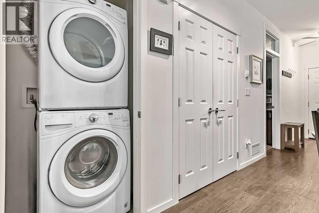 Welcome to the community of Legacy, where this 2 bedroom, 2 bathroom condominium is perfect for those seeking the convenience of modern living, nearby restaurants, greenspaces, walking paths, schools, shopping and more! Upon entering the unit, you’ll see stainless steel appliances, an incredible amount of cabinets, low maintenance vinyl plank flooring, and laundry facilities within the unit itself. The great room has sliding patio doors for an influx of natural light. The spacious master bedroom connects to a dual-sided walk in closet and its own private bathroom, complete with stand-in shower with bench seating. The 2nd bedroom is also a great size, with it’s own private closet space and access to the main 4-piece bathroom. Other amenities include 2 parking stalls, where the first is underground and titled, another above-ground that is assigned to this unit, and a large storage area also underground and away from the elements. If you like to entertain, having guests over is a breeze, with ample guest parking conveniently in front of the unit itself! This is an incredible opportunity to be part of a vibrant community – call for your private showing today! (id:53676)