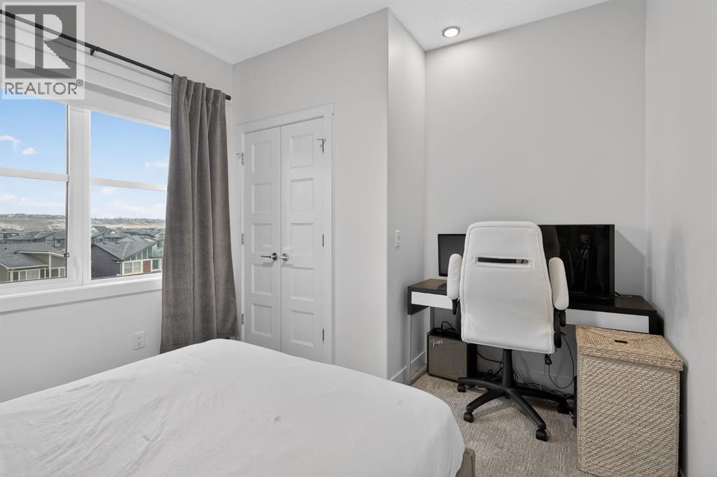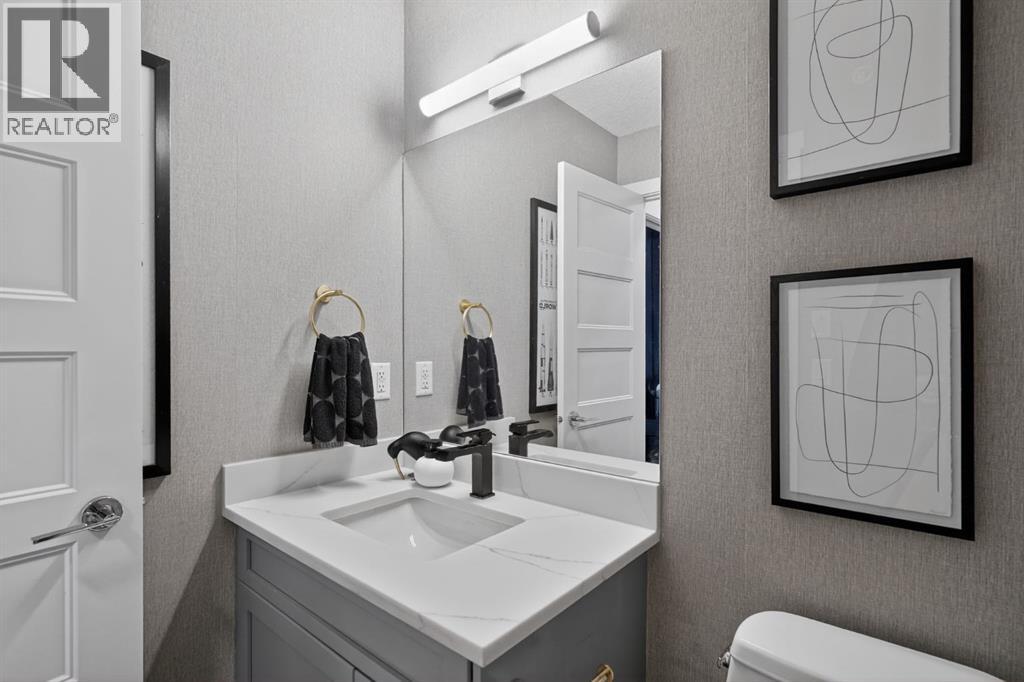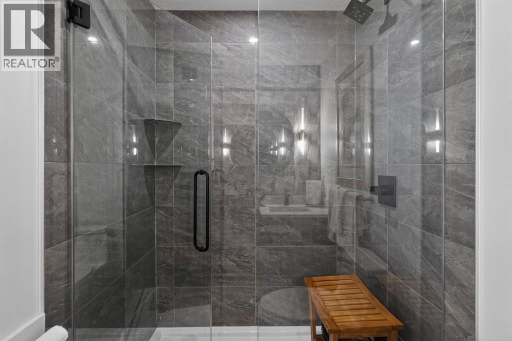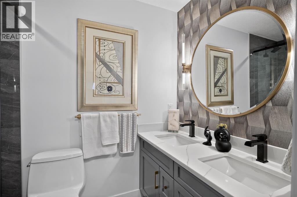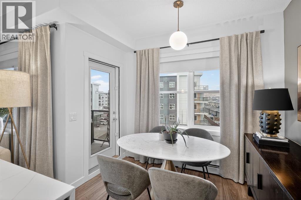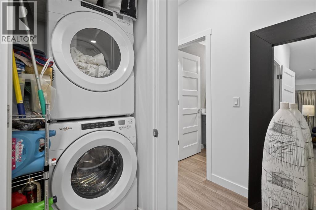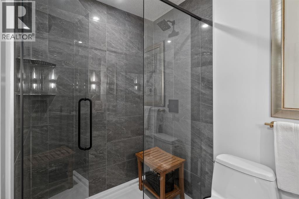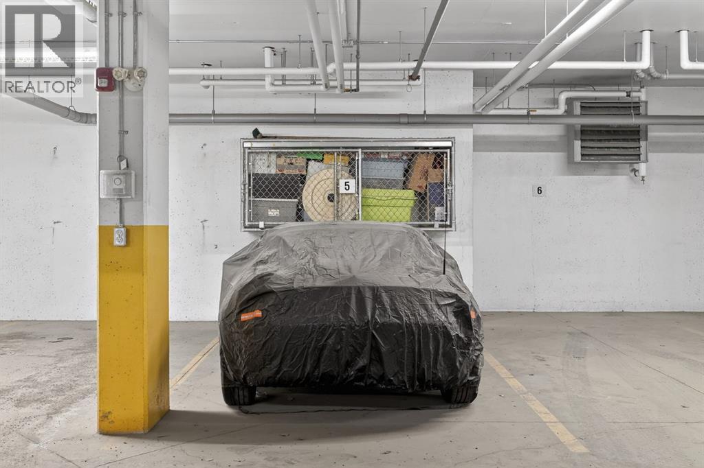 RARE TOP-FLOOR SW CORNER RESIDENCE WITH WRAP-AROUND BALCONY IN BOW360Perched on the top floor of BOW360, this southwest corner home offers elevated living with over $47,000 in builder upgrades, expansive natural light, and one of the most desirable layouts in the building. With no neighbours above and windows on two sides, this residence delivers privacy, sunshine, and a true sense of space that is rarely available in condo living.From the moment you step inside, the difference is clear. The entry has been thoughtfully redesigned to create an impressive, oversized foyer, a feature that immediately sets this home apart. The open-concept living space is bright and refined, anchored by a stunning travertine-wrapped fireplace that adds warmth and architectural sophistication.The kitchen was designed to impress, featuring a dramatic waterfall quartz island, stainless steel appliances, upgraded cabinetry, and elevated designer finishes throughout. Whether entertaining or enjoying a quiet evening at home, the space feels modern, intentional, and effortlessly stylish.The wrap-around southwest-facing balcony extends your living space outdoors, offering open sky views and sunlight throughout the afternoon and evening, perfect for summer evenings and year-round enjoyment.The primary suite provides a private retreat with a walk-through closet and beautifully finished four-piece ensuite. A spacious second bedroom and full bath offer flexibility for guests, a home office, or shared living.Titled underground parking and secure storage add convenience, while condo fees that include heat, water, and gas provide exceptional value.Steps to the Bow River pathways, parks, golf, and off-leash areas, this is an opportunity to own one of the best-positioned and most upgraded homes in BOW360. (id:53676)