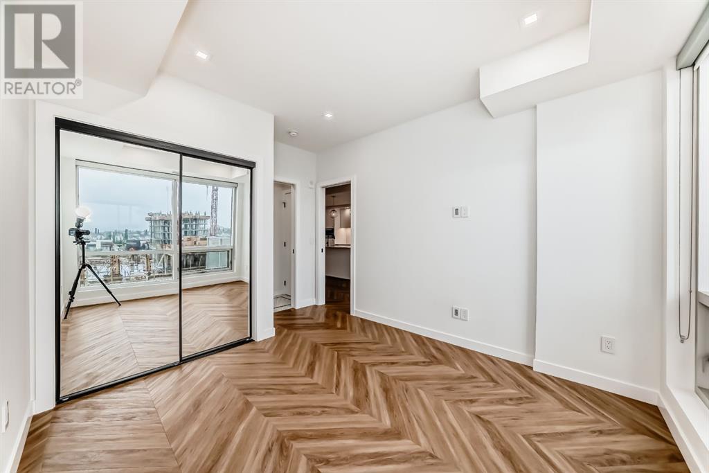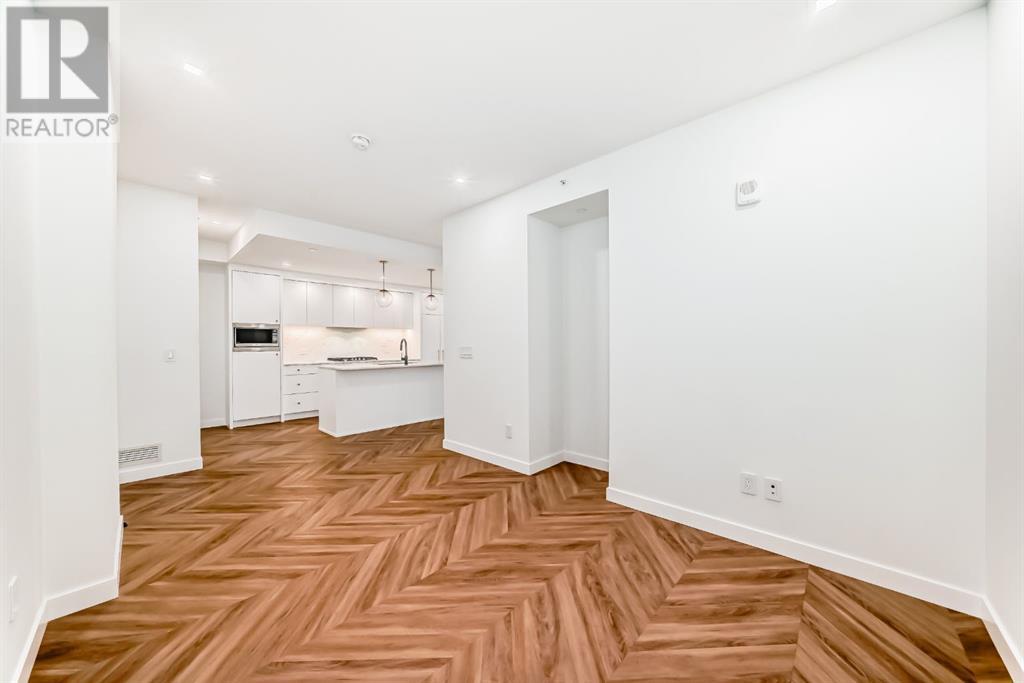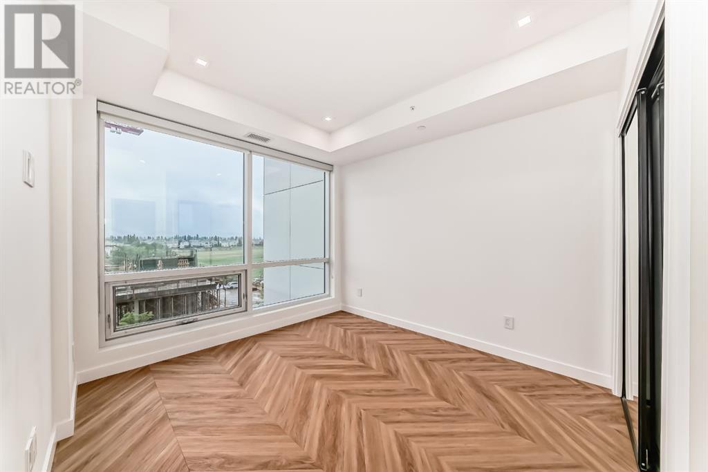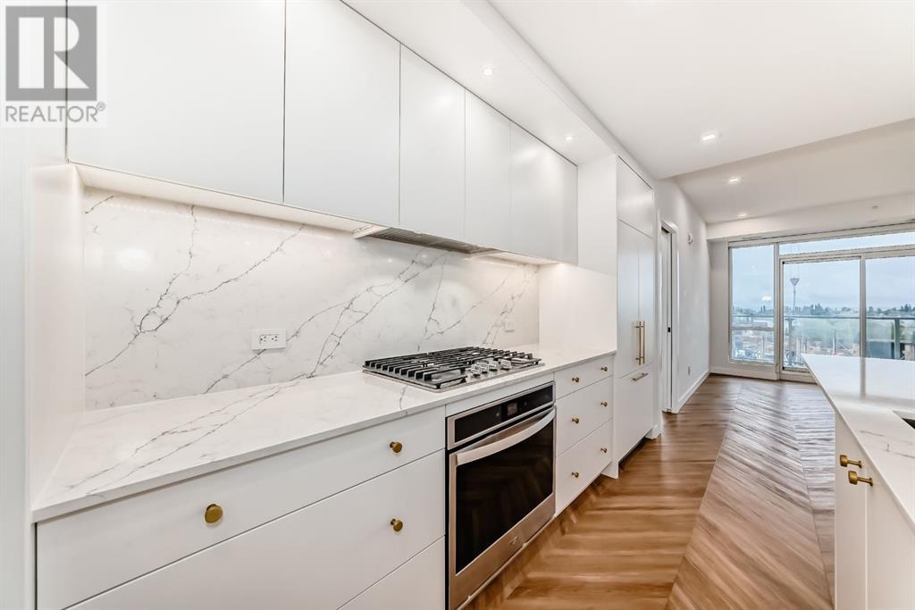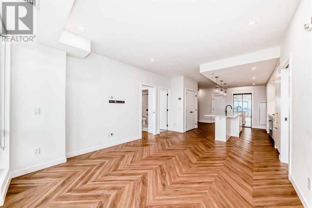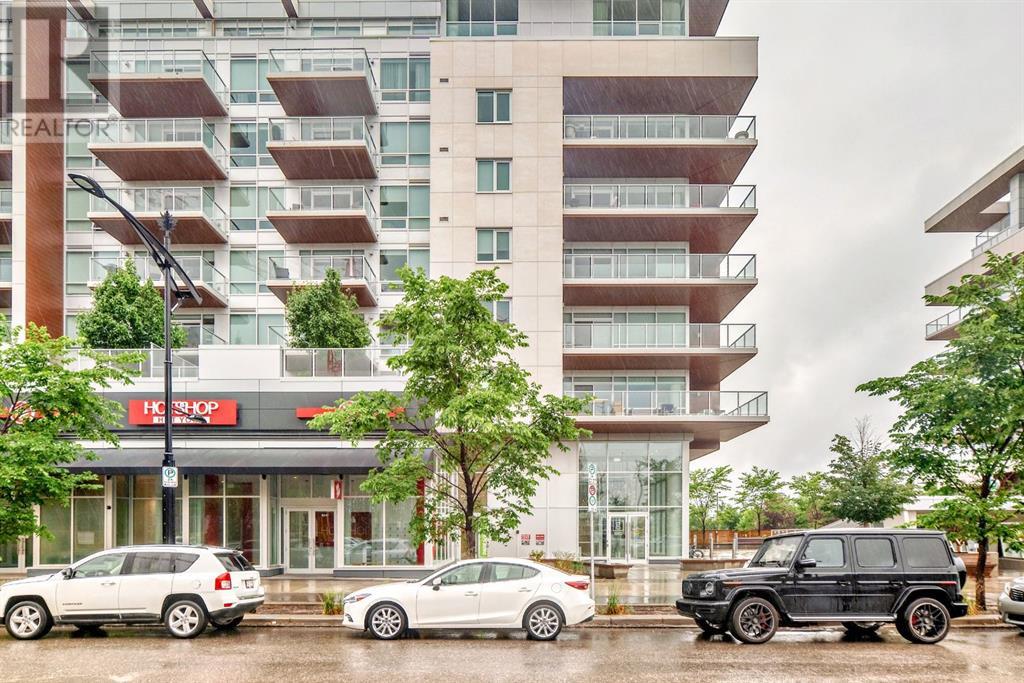 Experience modern luxury and everyday ease in this stunning 2-bedroom, 2-bathroom plus den condo. Boasting 9-ft ceilings, floor-to-ceiling windows, and elegant herringbone flooring, the bright open layout features a gourmet kitchen with quartz countertops, soft-close cabinetry, LED lighting, and premium appliances. The spacious primary bedroom offers a walk-in closet and a 4-piece ensuite, while the second bedroom enjoys a sleek 3-piece bath. Additional perks include in-suite laundry, a private balcony, concierge service, social lounge, bike storage, and lively ground-floor retailers like F45 gym, coffee shops, yoga studios, boutiques, restaurants, and pizza spots. Close to all amenities like grocery stores, banks, etc. Just minutes from downtown and WinSport, with easy access to major roads, this home perfectly blends urban convenience with active living. (id:53676)