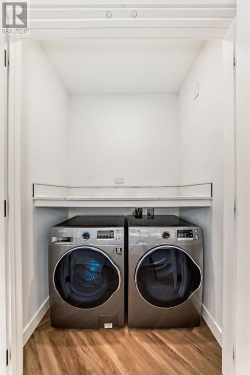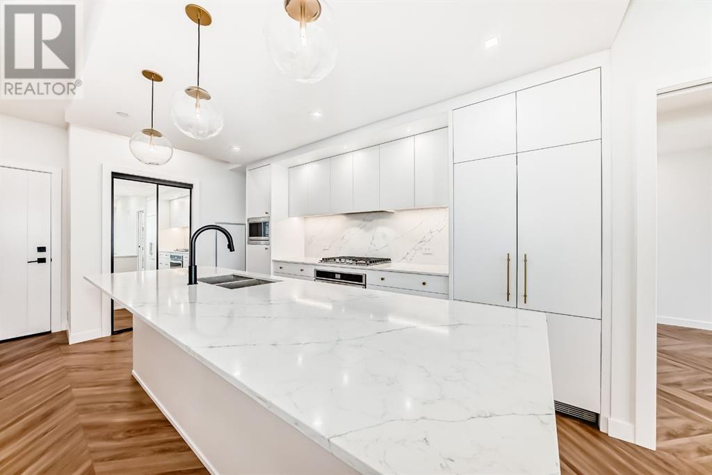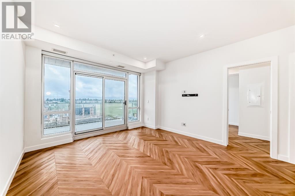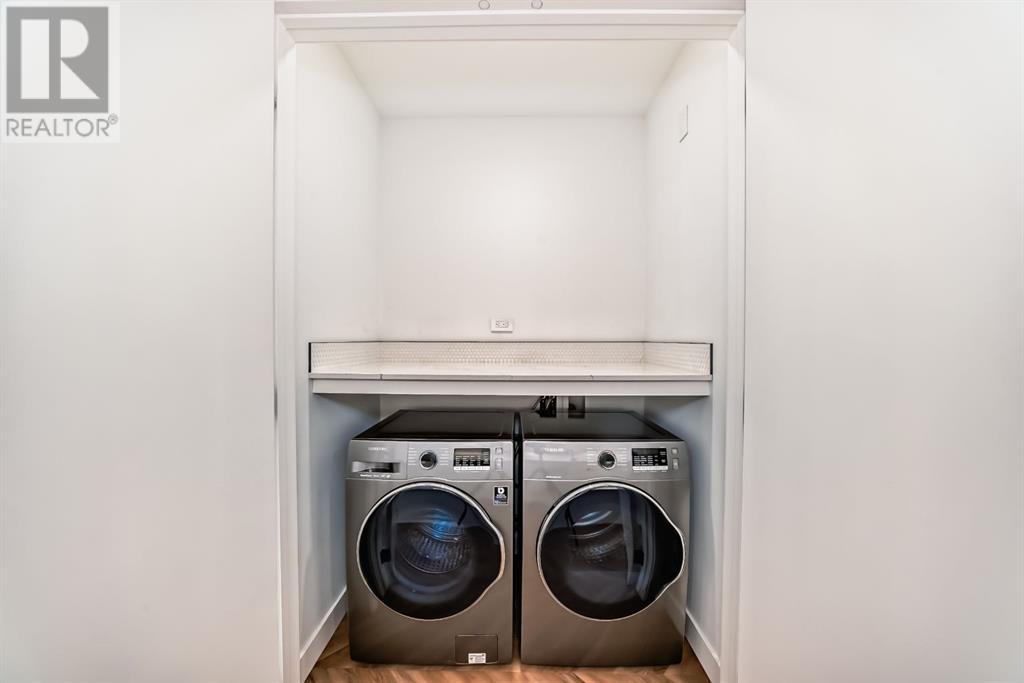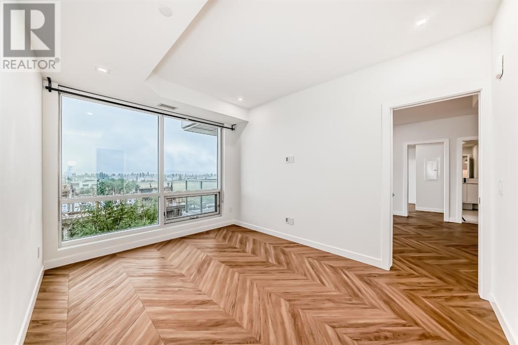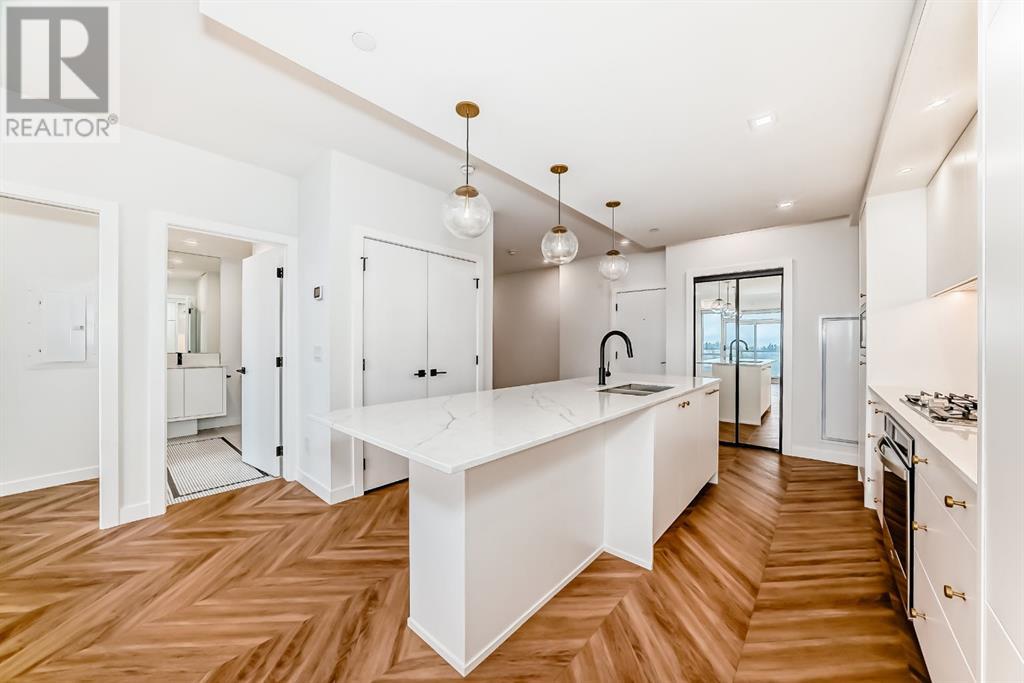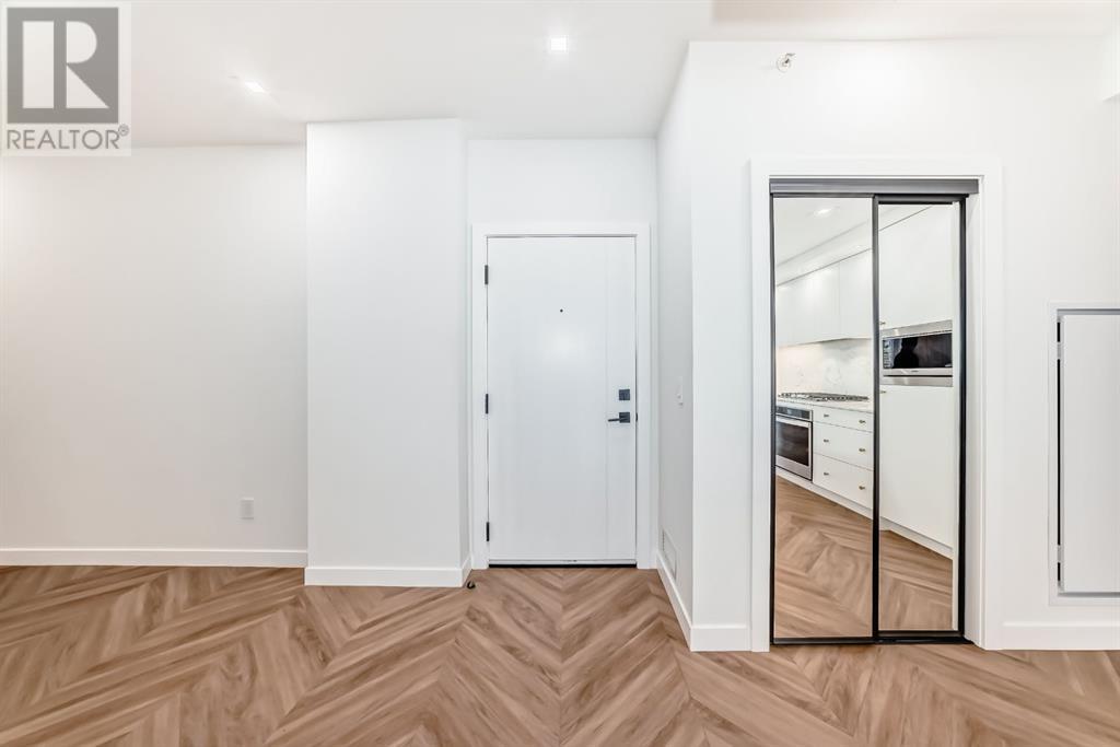 Experience modern luxury and everyday ease in this stunning 2-bedroom, 2-bathroom plus den condo. Boasting 9-ft ceilings, floor-to-ceiling windows, and elegant herringbone flooring, the bright open layout features a gourmet kitchen with quartz countertops, soft-close cabinetry, LED lighting, and premium appliances. The spacious primary bedroom offers a walk-in closet and a 4-piece ensuite, while the second bedroom enjoys a sleek 3-piece bath. Additional perks include in-suite laundry, a private balcony, concierge service, social lounge, bike storage, and lively ground-floor retailers like F45 gym, coffee shops, yoga studios, boutiques, restaurants, and pizza spots. Close to all amenities like grocery stores, banks, etc. Just minutes from downtown and WinSport, with easy access to major roads, this home perfectly blends urban convenience with active living. (id:53676)