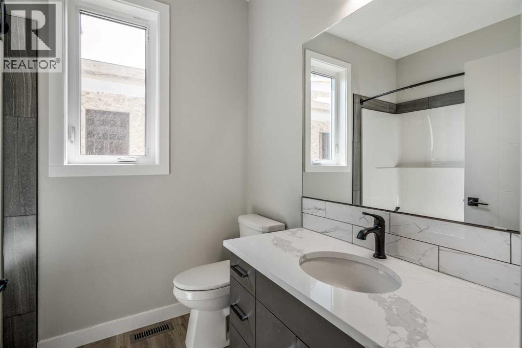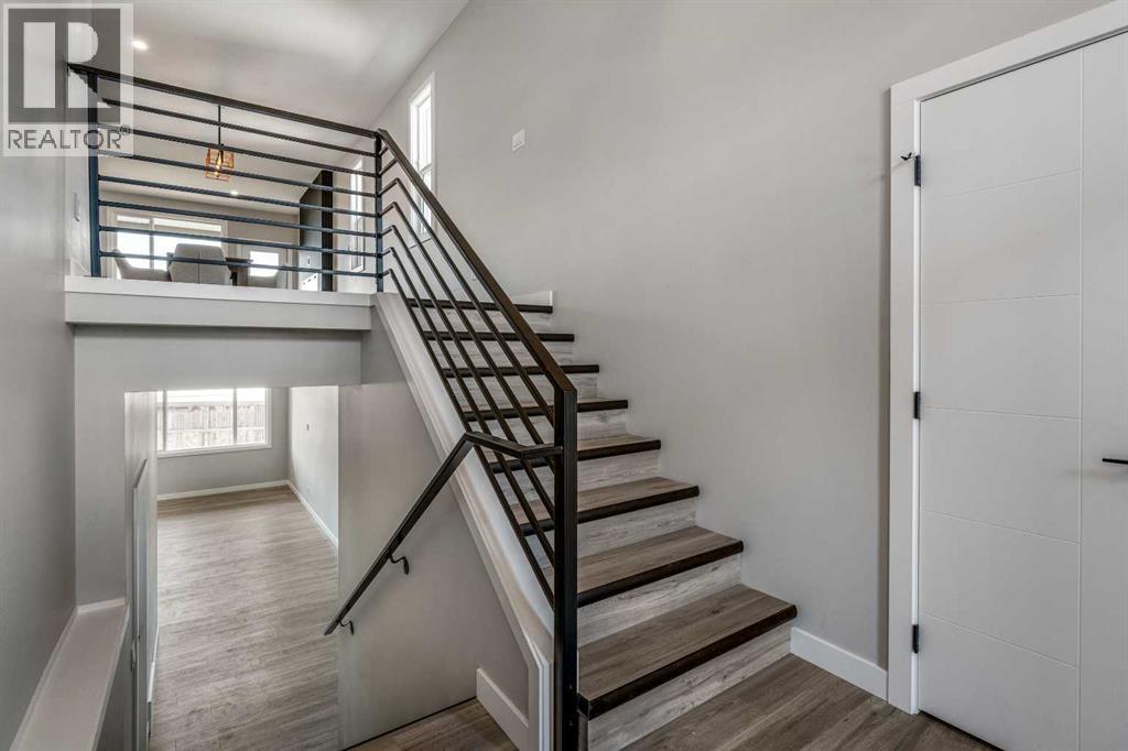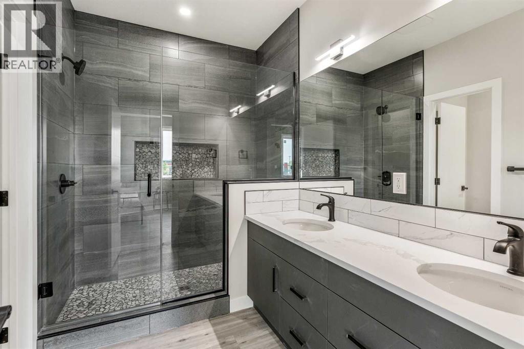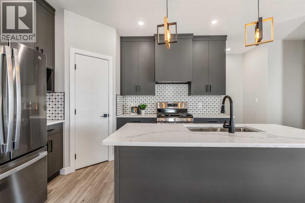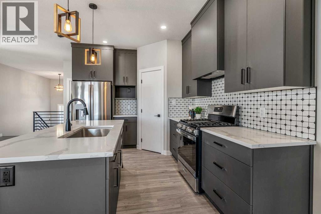JUST COMPLETED SEPTEMBER 2025! Custom Quality Build Ltd. continues to deliver! Front landscaping now included! They know you want a brand new finished house to the basement with the appliances and central a/c! They also know you want an actual big enough garage for your vehicles! This one is 24 feet wide by 25 feet deep! This bi-level plan with walk-out basement tucked away in a cul-de-sac features 2535 total square feet of developed living space & is scheduled to be finished September 2025. Lot has no rear neighbours! Main entry is welcoming with high ceilings. Main floor features 9 foot ceilings with vinyl plank floors throughout. There is also a door to a covered deck out back! Living room features electric fireplace with remote. Kitchen has quartz counters, stainless steel appliances, and has a corner pantry. There is also a laundry room on the main floor. Primary bedroom is a good size and features a walk-in closet and ensuite with double vanity and large walk-in shower. Another bedroom/office and another full bathroom with tub/shower combo complete the main. Walk-Out Basement has 9 foot ceilings and large family room with wet bar, 3 more bedrooms, another full bathroom with tub/shower combo, furnace room with additional laundry hookups and tankless hot water, and a lower foyer with walk-out to covered patio! Dare to compare all that Custom Quality Build has to offer! (id:53676)