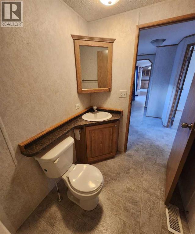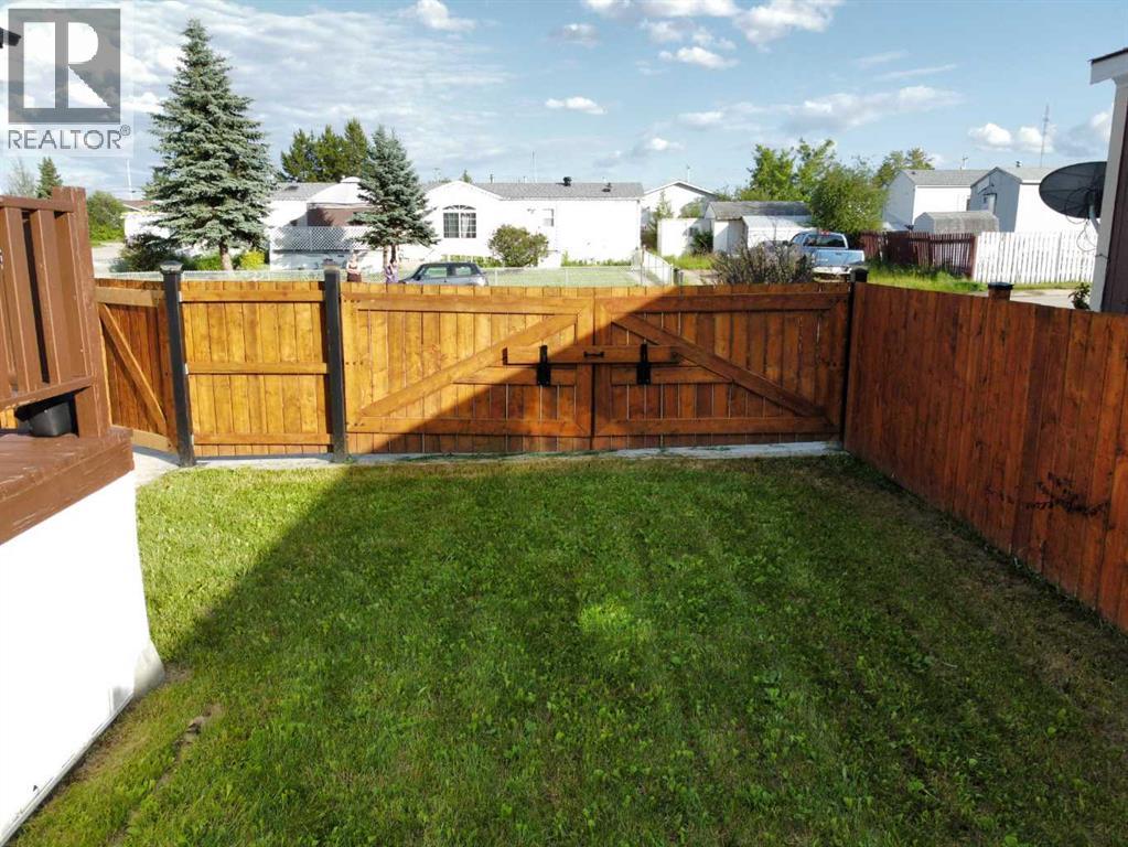 This beautiful home boasts excellent curb appeal and a spacious three-car concrete parking pad, along with an RV gate leading into the yard from the driveway. The property is fully enclosed with a privacy fence from the street and backs onto a serene greenbelt, offering a gate for easy trail access. Conveniently located close to a golf course and school, this home is perfectly situated for both leisure and education.Inside, the home features three bedrooms with the primary suite located at one end of the house. The primary bedroom includes an extra-large ensuite complete with a linen closet and a full-length closet that spans the width of the room. The other two bedrooms are situated at the opposite end, adjacent to a four-piece main bathroom.The interior showcases laminate flooring throughout and an open-concept kitchen and living room. The kitchen is equipped with a breakfast bar, motion-sensing under-cabinet lighting, a double-door fridge with a bottom-shelf freezer, and plenty of cabinet space. Garden doors off the kitchen lead to a deck, perfect for outdoor dining and relaxation. Additionally, there is a pantry room and a back entry mudroom with space for a deep freeze.The home Is built on 18 6-inch steel pilings, with insulated under-home plumbing. It also features two separate front circuits for plug-ins and a new chimney on the furnace, along with an updated circuit board installed in 2022.This home is ideal for those seeking comfort, convenience, and a touch of nature, all within a beautifully maintained property. (id:53676)