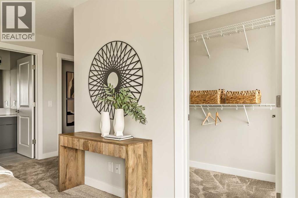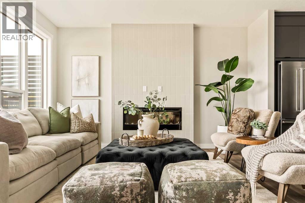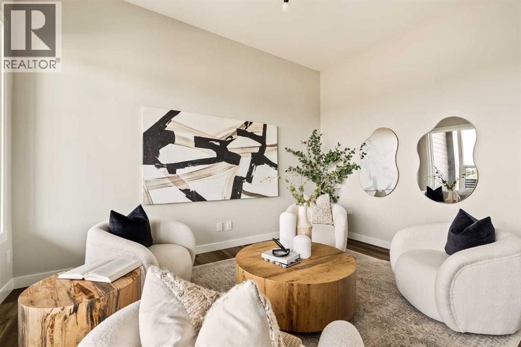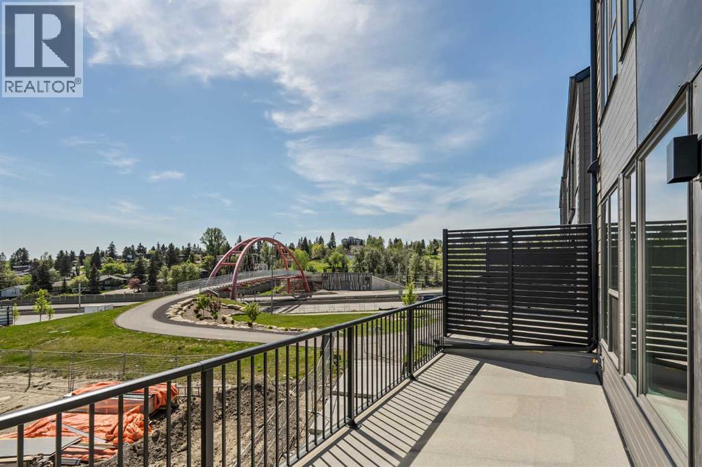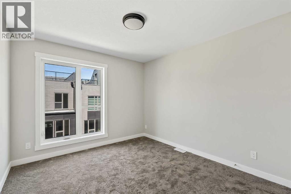 **Open House - Saturday, October 11th - 1:00 PM - 3:00 PM** Current Promotion: FREE A/C + 2 years of FREE condo fees - a limited-time incentive for you to enjoy maintenance-free living from day one at no cost to you for 2 years! This brand-new home features 3 bedrooms, 2.5 bathrooms, an office/flex space, a double attached garage, two outdoor living areas, and unobstructed city views from upper floors! The ‘Rouge’ walkout is an urban townhome at Crown Park, offering over 2,100 square feet of interior living space and nearly 400 square feet of outdoor space between the expansive balcony off the main living area and lower level covered patio space. The open-concept main living area is thoughtfully designed with a spacious layout, showcasing 9' ceilings and oversized windows that flood the home with natural light from morning to night. At the center of this home is the gourmet kitchen, perfectly positioned between the dining area and the main living room, making it an ideal space for entertaining. It features a gas cooktop, built-in microwave and oven, range hood, a large quartz island with seating, and elegant design details throughout. A balcony spanning the width of the property has direct access off of the main living area, making it the ideal space to entertain and host guests while soaking up sun all year long. A 2pc bathroom completes the main level. Upstairs, the expansive primary bedroom includes a large walk-in closet and a full ensuite with dual sinks and a walk-in shower with tile surround. Two additional well-sized bedrooms, a laundry area, and a full bathroom complete the second level. The lower walkout level features 10' ceilings and a welcoming foyer with storage and an office/flex room, ideal for a home office, media room, or gym. The lower level also has direct access to the second outdoor living area - a generous walkout patio that stretches across the home at ground level, providing the perfect covered outdoor living space. The private double attach ed garage ensures your vehicles and valuables stay safe and warm throughout the year. Additional features include natural gas line for BBQ, triple pane windows and a comprehensive 3-year extended workmanship warranty program. This stunning property provides all the conveniences of downtown living without the congestion. Located just minutes from downtown Calgary, Crown Park offers a unique opportunity to own a beautiful, brand-new home in a picturesque setting. Alberta New Home Warranty + Builder Warranty allow you to purchase with peace of mind at one of Calgary's most coveted developments. (id:53676)