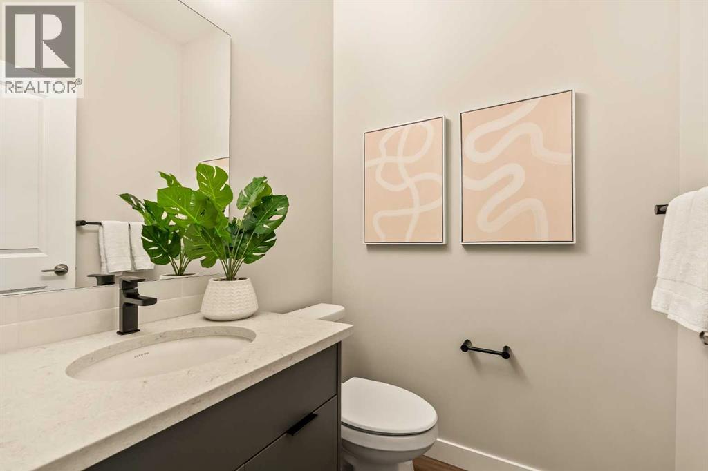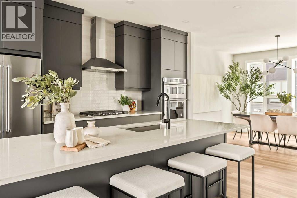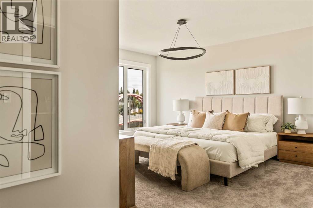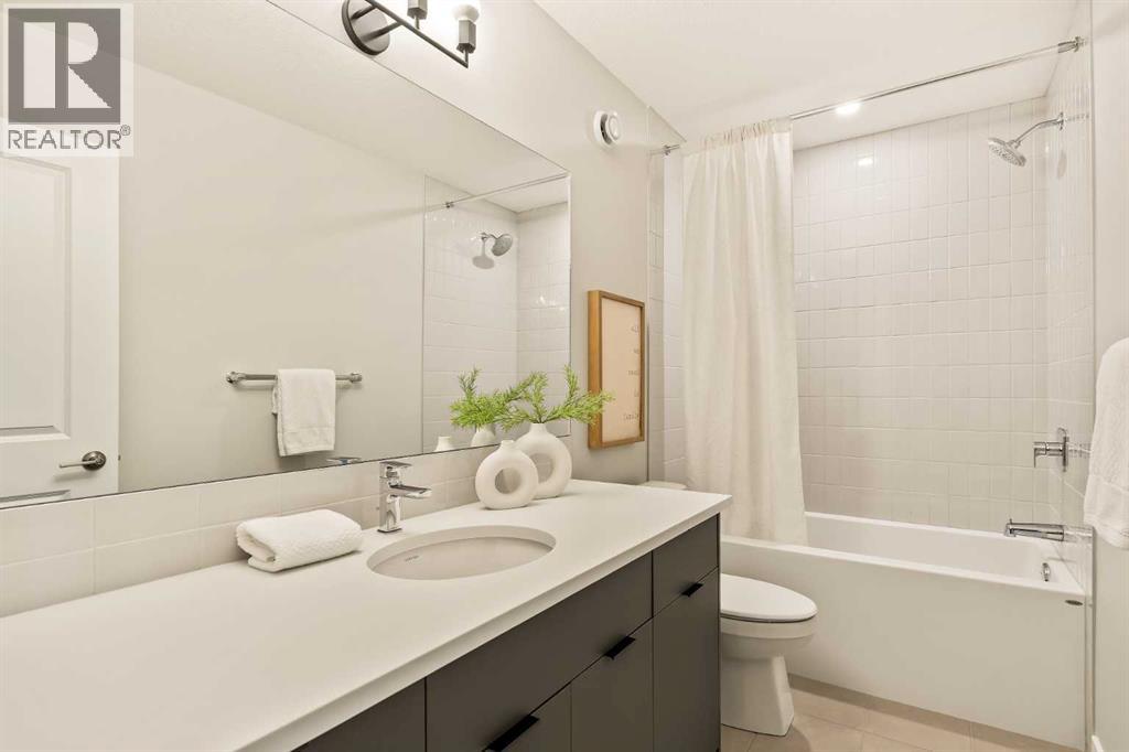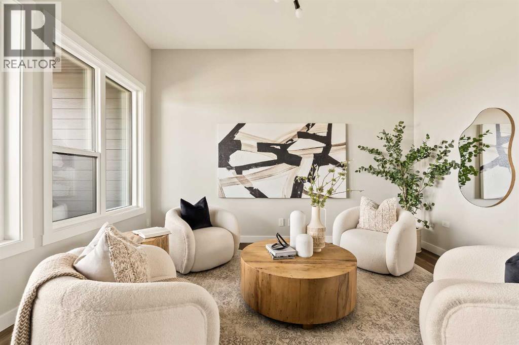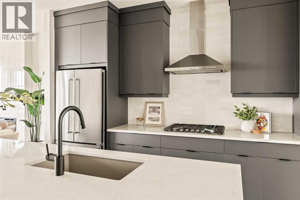 **Open House - Saturday, October 11th - 1:00 PM - 3:00 PM** Current Promotion: FREE A/C + 2 years of FREE condo fees - a limited-time incentive for you to enjoy maintenance-free living from day one at no cost to you for 2 years! This brand-new home features 3 bedrooms, 2.5 bathrooms, an office/flex space, a double attached garage, two outdoor living areas, and unobstructed city views from upper floors! The ‘Rouge’ walkout is an urban townhome at Crown Park, offering over 2,100 square feet of interior living space and nearly 400 square feet of outdoor space between the expansive balcony off the main living area and lower level covered patio space. The open-concept main living area is thoughtfully designed with a spacious layout, showcasing 9' ceilings and oversized windows that flood the home with natural light from morning to night. At the center of this home is the gourmet kitchen, perfectly positioned between the dining area and the main living room, making it an ideal space for entertaining. It features a gas cooktop, built-in microwave and oven, range hood, a large quartz island with seating, and elegant design details throughout. A balcony spanning the width of the property has direct access off of the main living area, making it the ideal space to entertain and host guests while soaking up sun all year long. A 2pc bathroom completes the main level. Upstairs, the expansive primary bedroom includes a large walk-in closet and a full ensuite with dual sinks and a walk-in shower with tile surround. Two additional well-sized bedrooms, a laundry area, and a full bathroom complete the second level. The lower walkout level features 10' ceilings and a welcoming foyer with storage and an office/flex room, ideal for a home office, media room, or gym. The lower level also has direct access to the second outdoor living area - a generous walkout patio that stretches across the home at ground level, providing the perfect covered outdoor living space. The private double attach ed garage ensures your vehicles and valuables stay safe and warm throughout the year. Additional features include natural gas line for BBQ, triple pane windows and a comprehensive 3-year extended workmanship warranty program. This stunning property provides all the conveniences of downtown living without the congestion. Located just minutes from downtown Calgary, Crown Park offers a unique opportunity to own a beautiful, brand-new home in a picturesque setting. Alberta New Home Warranty + Builder Warranty allow you to purchase with peace of mind at one of Calgary's most coveted developments. (id:53676)
