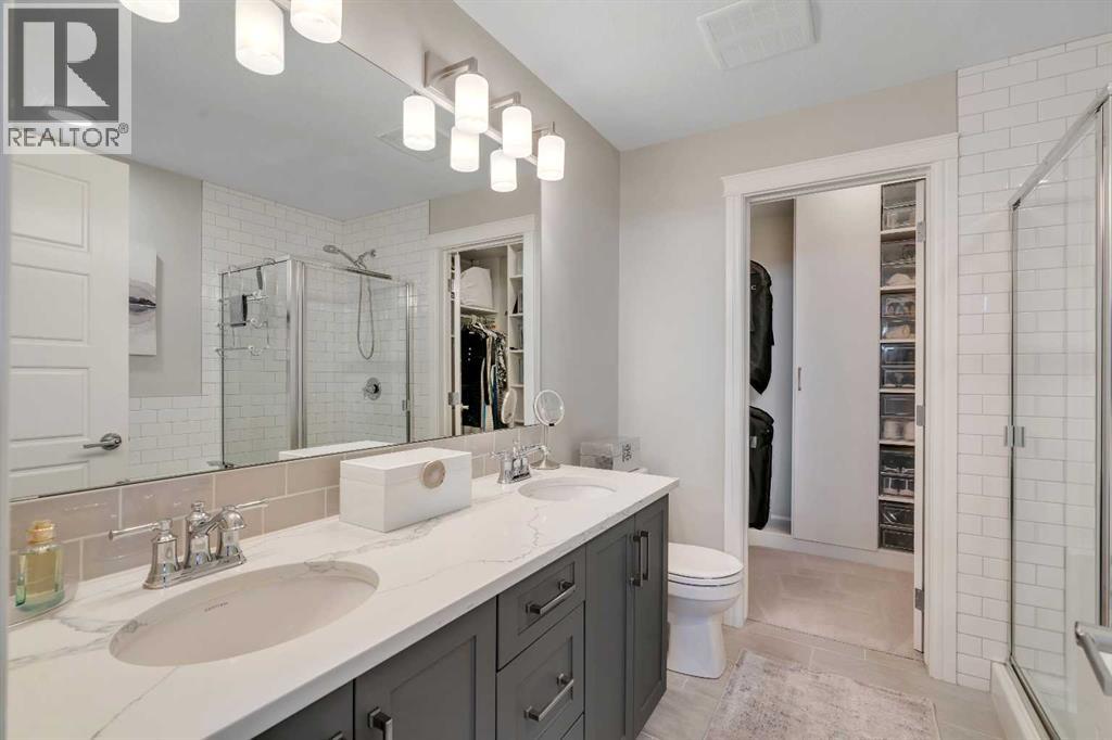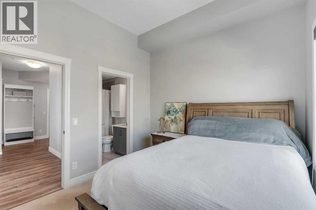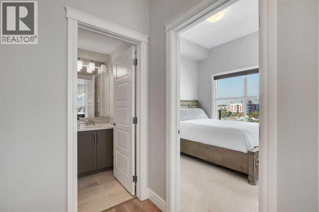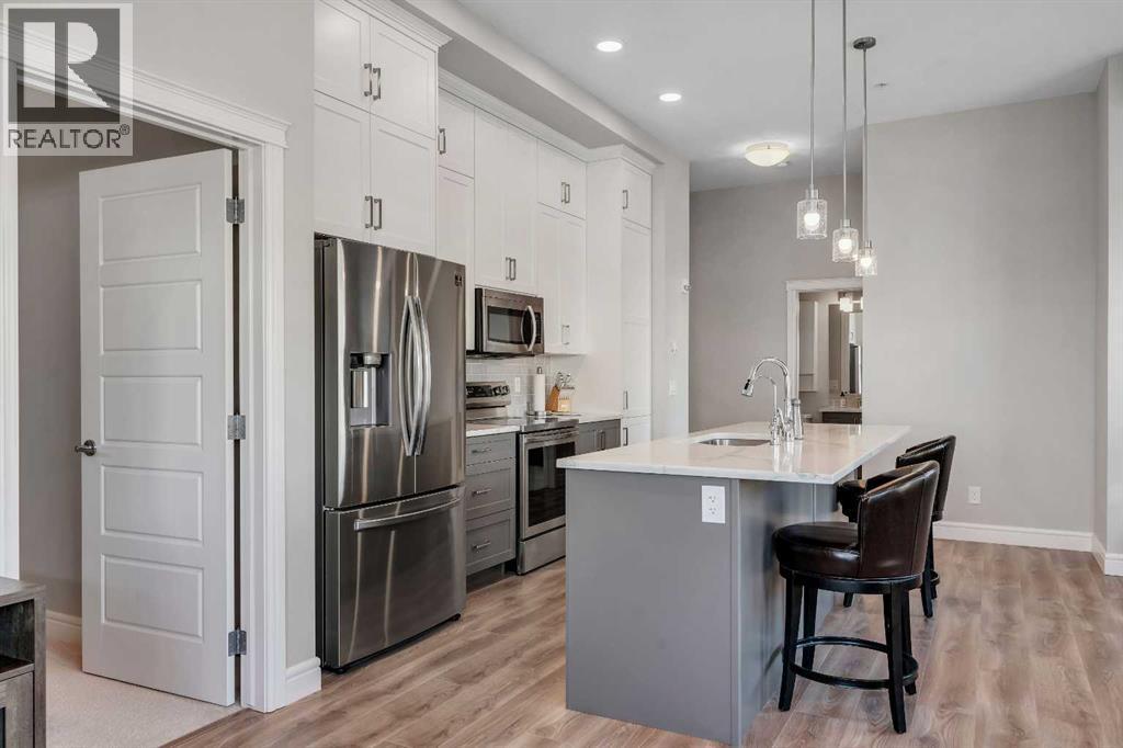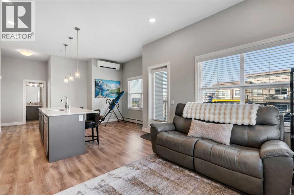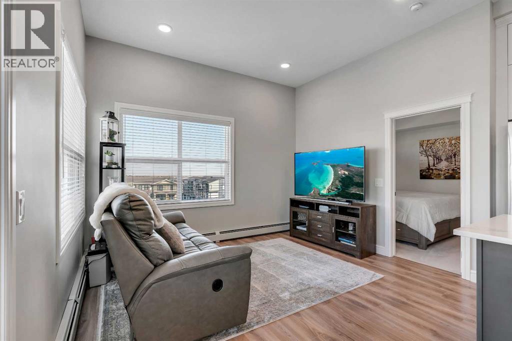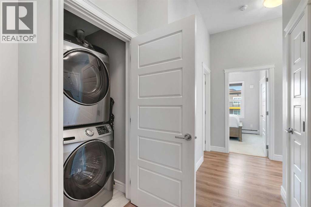 Experience upscale living in this exceptional 2-bedroom, 2-bathroom top-floor corner unit in Seton. Featuring soaring 11-ft ceilings and an open layout, this condo offers an inviting atmosphere and expansive city and mountain views from a large balcony with a gas line for grilling. The modern kitchen is a showpiece with quartz countertops, ceiling-height cabinets & pantry offer ample storage, a large island perfect for entertaining, stainless steel upgraded appliances, and an in-sink water filtration system. The spacious primary bedroom offers a tranquil retreat with Hunter-Douglas blackout blinds, a spa-like ensuite with double vanities, walk-in shower, soaker tub, and a custom California walk-in closet. The second bedroom features its own California closet, Hunter-Douglas blinds, and connects to a full bathroom. Extras include: entryway and hallway closets and a laundry closet with full-size washer & dryer, two parking stalls: one underground with storage, one surface stall steps from the stairs, central location near the South Health Campus, YMCA, high school, Superstore, Cineplex and more. This is luxury condo living at its finest—a rare find in Seton. Book your showing today! (id:53676)