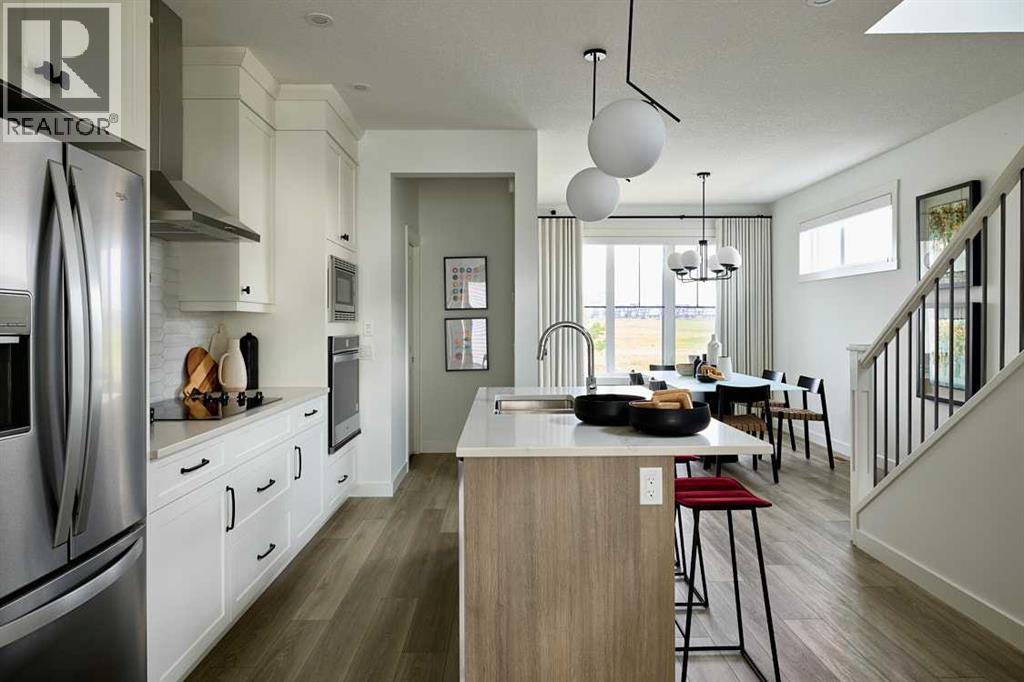 SHOW HOME FOR SALE! The beautiful Oak show home by Brookfield Residential is now for sale! This brand new home is situated on a corner lot and includes countless upgrades throughout. Featuring 2 living areas, 3 bedrooms, 2.5 bathrooms, an insulated and heated double detached garage and a full basement with side entrance that awaits your imagination. The open concept main level features a central gourmet kitchen with built-in appliances which opens to both the living and dining spaces - making this the perfect home for entertaining! Walls of windows on the front, back and side of this home that is positioned on a corner lot allow for natural light to flood the home all day long. The expansive main level living space is complete with a central fireplace and access to the backyard which is complete with a large deck. The upper level features a central bonus room that separates the primary suite from the secondary rooms for added privacy. The primary suite includes a large walk-in closet and is complete with a full ensuite with walk-in tiled shower. Two more bedrooms, a full bathroom and laundry room complete the upper level. The side entrances on the main level opens up more possibilities for the future basement development on the large side-yard. Completing the exterior of the home is a heated double detached garage, landscaping, irrigation and partial fencing. If the south sun gets warm in the backyard, the central A/C will keep you cool all summer long. Custom window treatments (motorized), upgraded railing, gemstone lights, and wallpaper are just some of the features of this professionally designed show home model. Builder warranty and Alberta New Home Warranty allow you to purchase with peace of mind! Don't wait, these rare offerings never last. (id:53676)