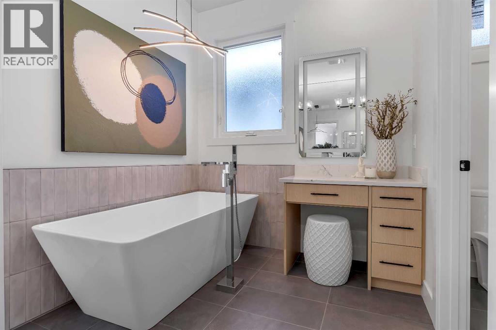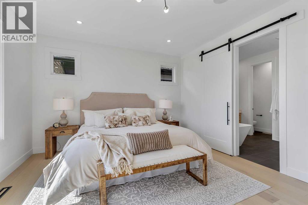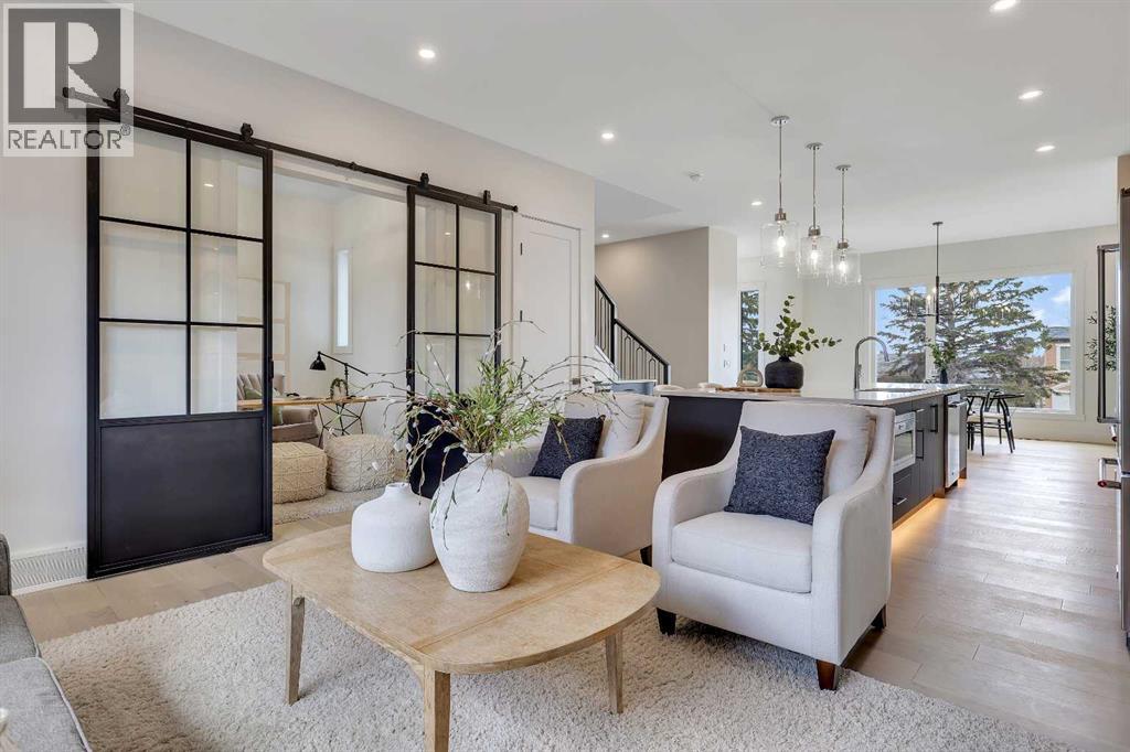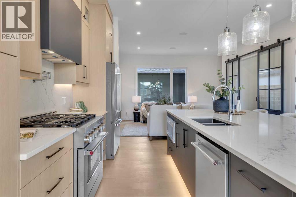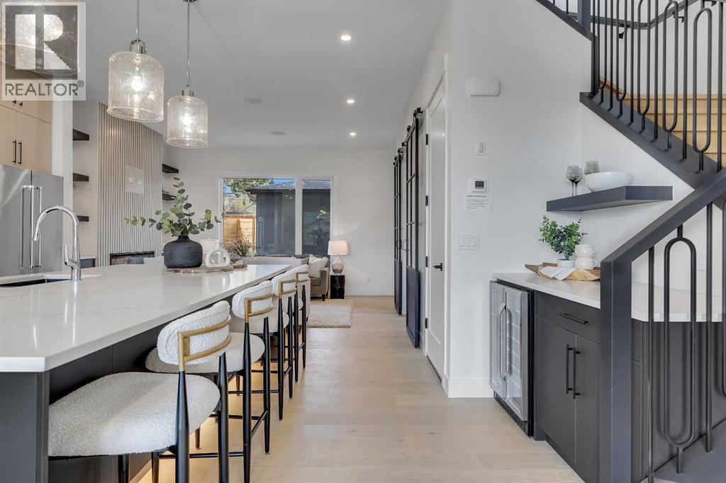 COLLINGWOOD LUXURY CUSTOM HOME | ATTACHED DOUBLE GARAGE | LEGAL 2 BDRM BASEMENT SUITE. Welcome to 42 Collingwood Place. Situated on a 32’ x 100’ lot atop a quiet cul-de-sac in Collingwood Place, this custom-built home features over 3,000 sqft of total living area. Every detail has been meticulously planned for OPTIMAL LIVING. The main floor features 10’ CEILINGS and a bright south-facing dining area to house all your guests over the holidays. The chef’s kitchen is built with an OVERSIZED ISLAND with quartz counters and LED-under-lighting, matching quartz backsplash, full-height cabinetry and a pot-filler above the 36” gas range. A COFFEE BAR with cabinetry and a beverage fridge adds convenience. A private office is secluded by custom French-inspired iron and glass casement sliding doors provides a sanctuary. The living room features an electric fireplace, custom LED shelving, an in-ceiling speaker system, and a powder room near the mudroom which featuring floor-to-ceiling cabinetry for ample gear storage. The ATTACHED double garage is FULLY INSULATED, drywalled, and includes a 200 AMP breaker, and gas heater and EV charger rough-ins. Upstairs, the primary suite offers breathtaking views of DOWNTOWN CALGARY and the ROCKY MOUNTAINS, an expansive walk-in closet, and a dual vanity ensuite with an OVERSIZED SOAKER TUB, STEAM SHOWER with dual niches, and a standalone VANITY COUNTER with a light-up mirror. A frosted glass window provides privacy while allowing in natural light. The laundry room features quartz counters, a sink, and full-height cabinetry. Two additional bedrooms overlook NOSEHILL PARK, each with custom closet built-ins. A main bathroom and linen closet complete this level. All bathrooms (except the powder room) include IN-FLOOR HEATING and LED underlighting. The LEGAL BASEMENT SUITE boasts 9’ ceilings, a spacious kitchen, a large living area, and TWO BEDROOMS. The suite comes with a full kitchen / laundry appliance package. The mechanical room features TWO furnaces, an A/C unit for the main, a sump pump, radon rough-in, and an oversized hot water tank. The private courtyard-style backyard (vinyl decking) includes outdoor speaker rough-ins and a gas outlet for a BBQ or fire table. CONFEDERATION PARK is just steps away to the south, with Nose Hill Park to the north. Short walk to Collingwood elementary school , St. Francis High School & bus stops, plus easy access to downtown. Close to all amenities—Calgary Winter Club, shopping malls, U of C, Children and Foothills Hospitals. This home blends urban convenience with natural beauty and offers downtown & mountain views. Fully hardwired for security systems and cameras, it also qualifies for CMHC’s 30-year amortization and GST rebates—check with your lender/accountant! Built by Archway Developments, a family-owned business with 20+ years of experience, this home is backed by Progressive New Home Warranty. (id:53676)