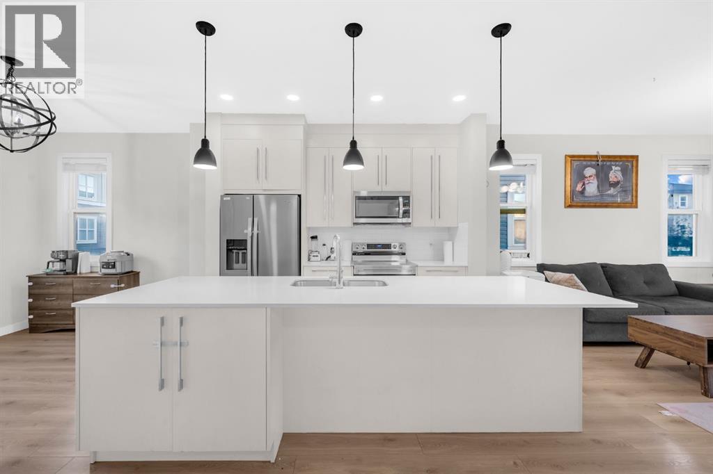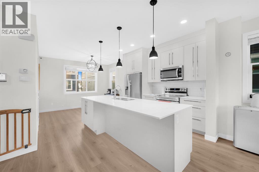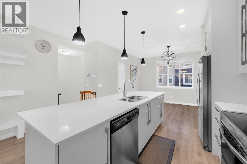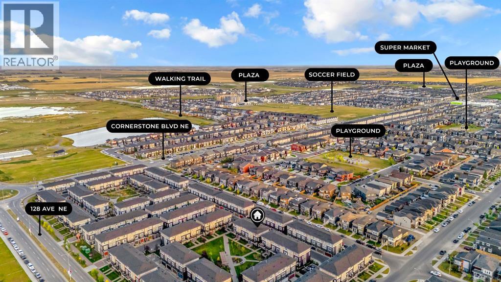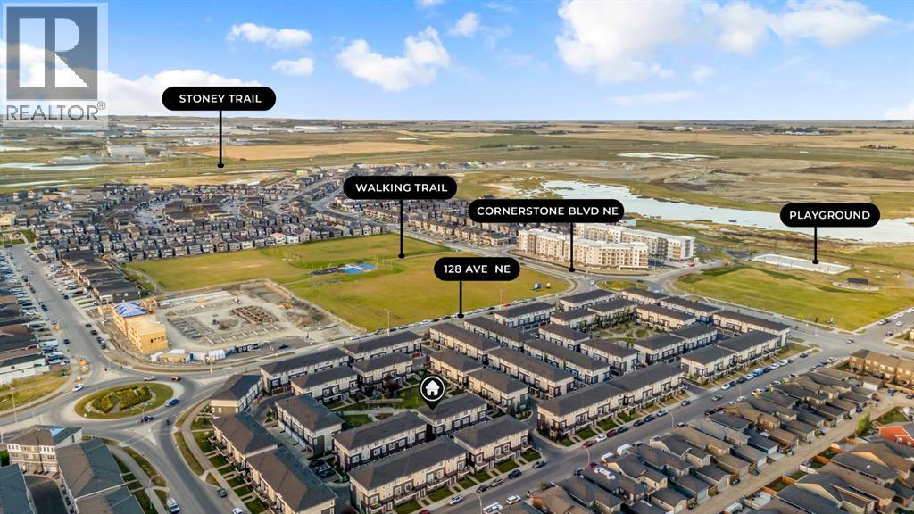 OPEN HOUSE SUNDAY SEP 28, 12pm - 3pm | Welcome to this beautiful CORNER END-UNIT townhome in the vibrant and fast-growing community of Cornerstone, perfectly positioned to enjoy full-day sunshine and directly facing a large park and green space. This spacious 3-level home offers a thoughtful layout with 4 bedrooms, 2.5 bathrooms, and a heated double attached garage. The entry level features a versatile bedroom that can serve as a guest room, office, or flex space, with direct access to the heated garage to keep your vehicles warm during winter. The open-concept second level is designed for both everyday living and entertaining, showcasing a bright and modern kitchen with full-height white cabinetry, quartz countertops, stainless steel appliances, a pantry for extra storage, a dining area, a cozy reading nook, and a large living room that flows seamlessly onto a private balcony overlooking the courtyard—perfect for summer BBQs and relaxing evenings. A convenient 2-piece bathroom completes this level. Upstairs, the spacious primary suite features a walk-in closet and ensuite with floor-to-ceiling tiled shower for a sleek, low-maintenance finish, while two additional bedrooms share a 4-piece bathroom. Laundry is thoughtfully located on the upper floor for added convenience. Large windows throughout the home create a bright and inviting atmosphere, while the location offers easy access to parks, walking paths, and family-friendly green spaces just steps from your front door. Cornerstone is one of Calgary’s fastest-growing communities, with new schools opening in the next two years and potentially a Gurdwara just 3 minutes away, along with convenient access to Stoney Trail, Deerfoot Trail, Calgary International Airport, and CrossIron Mills Mall. Combining comfort, style, and location, this home is the perfect choice for families or anyone seeking a spacious property in a thriving community—schedule your private showing today before it’s gone! (id:53676)