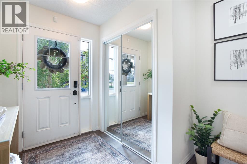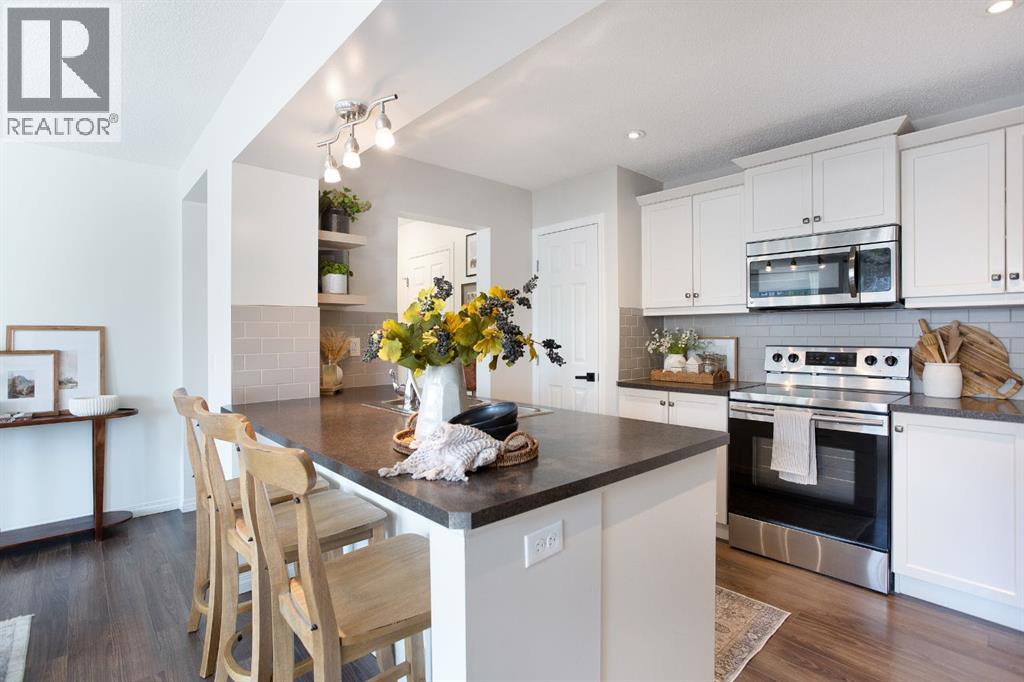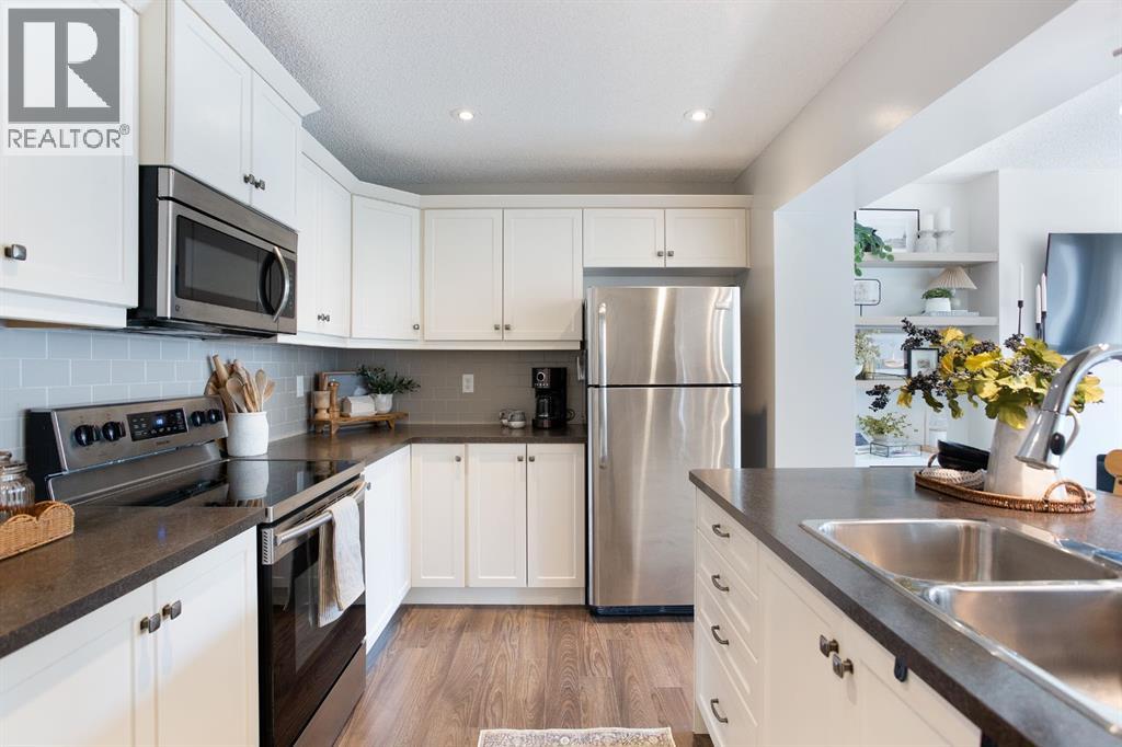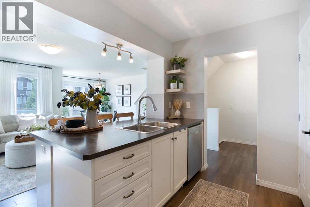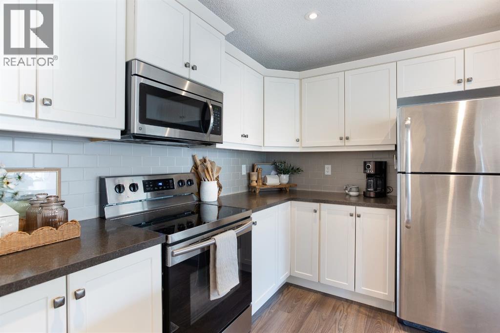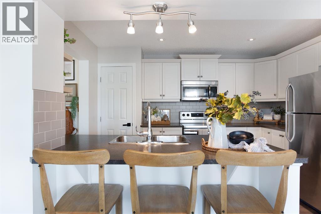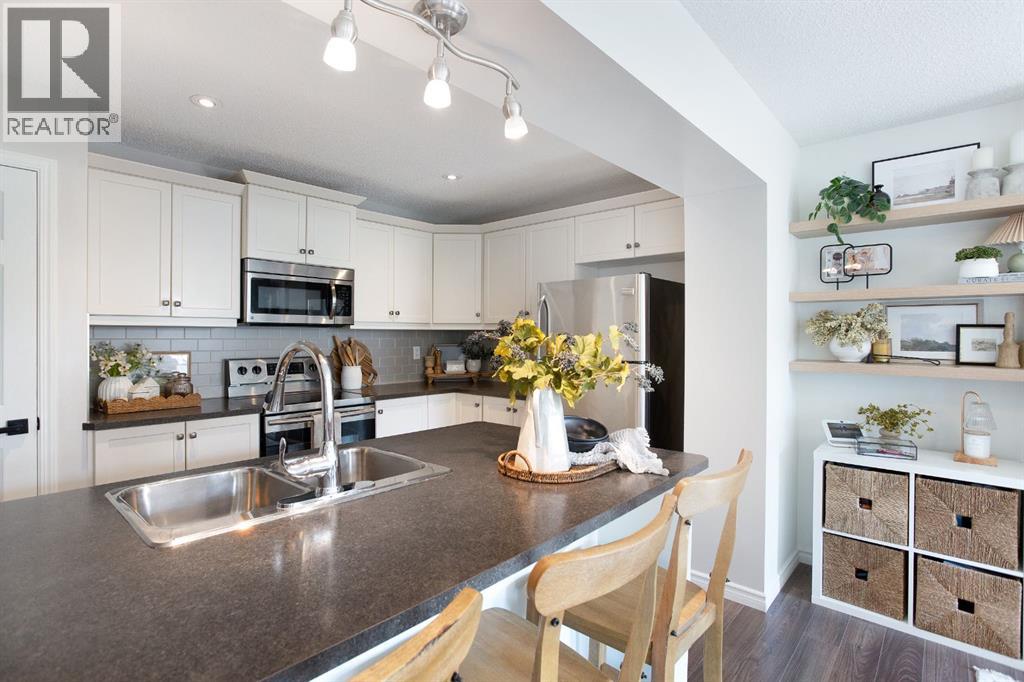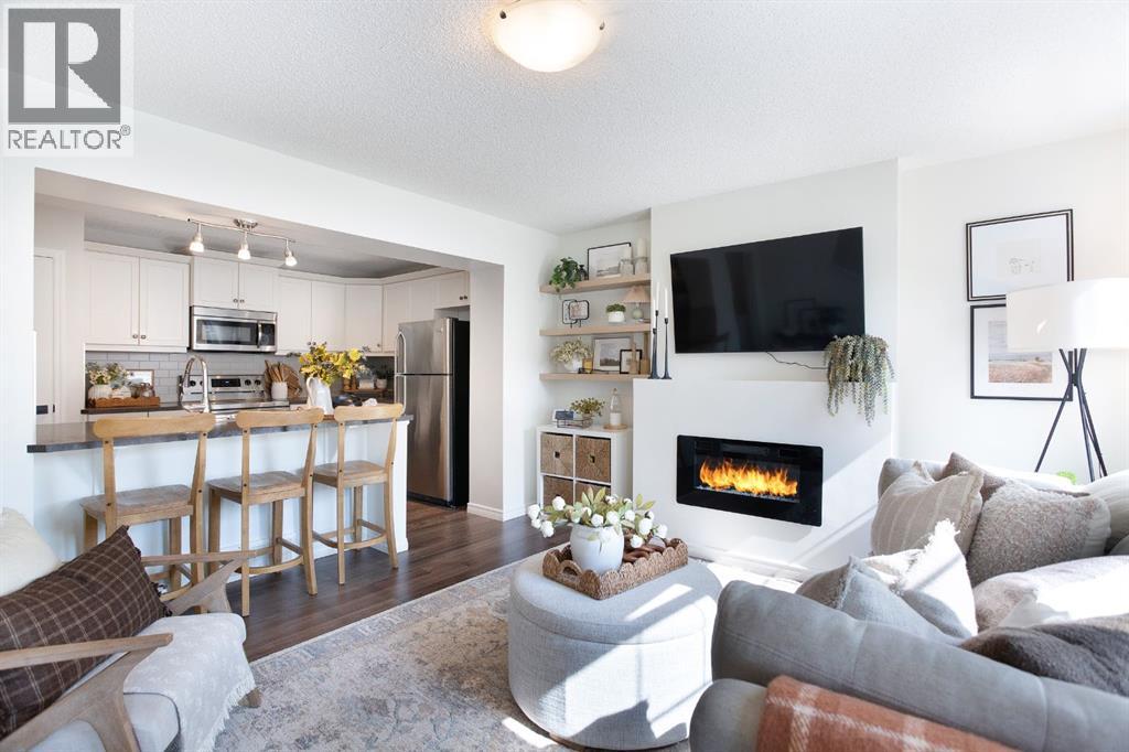 Welcome to this modern and move-in ready 2 bedroom, 2 bathroom townhome offering over 1,200 sq. ft. of stylish, freshly updated living space—without the burden of condo fees!From the front parking pad to the attached oversized single garage (with space for nearly 2 vehicles in tandem or ample storage space), this home combines convenience with comfort. Step inside and you’ll find a thoughtfully designed interior with fresh paint and trim, upgraded flooring throughout all three levels, and numerous builder-selected upgrades that set this property apart from the rest.The open-concept kitchen is a cook’s dream, featuring stainless steel appliances, upgraded countertops, crown moulding above cabinetry, and a functional pull-up counter that flows seamlessly into the sunny living room. An added electric fireplace creates a cozy focal point, while built-in hidden wiring for an entertainment system keeps things sleek. The adjoining dining area provides access to a private, south-facing balcony—perfect for morning coffee or evening relaxation and bringing in a ton of natural light into the unit. Upstairs, the spacious primary bedroom offers a large walk-in closet and direct access to the main bathroom. The second bedroom is equally versatile, ideal for guests, family, or a home office. The bathroom has been refreshed with new tile flooring for a modern finish. Additional highlights include a half bath on the main floor and a lower-level laundry area with plenty of storage space. Situated right beside a green space with walking paths and park benches it's the perfect place to take your dog or enjoy an active lifestyle. With tasteful finishes, fresh updates, and a bright, welcoming layout, this charming home is truly move-in ready. (id:53676)
