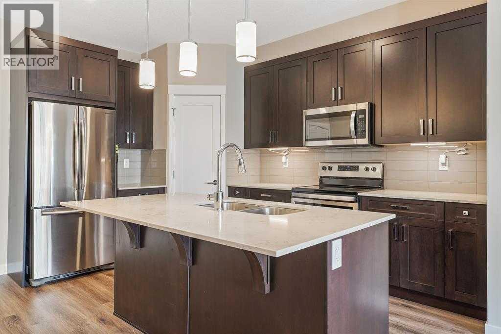 Amazing STYLISH 2bed/2bath with tons of UPGRADES with EXCLUSIVE ACCESS to Cranston Century Hall! --- Welcome to Unit 4209 at Cranston Ridge — a perfect blend of style, space, and modern comfort in one of Calgary’s most vibrant communities. This immaculate 2-bedroom, 2-bath condo offers an open-concept design that effortlessly combines functionality with aesthetic appeal. The gourmet kitchen features sleek cabinetry, stainless steel appliances, and a large island ideal for casual meals or entertaining guests. The spacious living area opens onto a private balcony — the perfect spot to unwind with a morning coffee or evening wine. The generously sized primary suite includes a walk-through closet and a private ensuite, while the second bedroom, tucked away on the opposite end, offers flexibility for a child’s room, home office, or guest space.Exclusive access to Century Hall, a 22,000 sq ft facility operated by the Cranston Residents Association. This vibrant hub features a full-sized gymnasium, splash park, tennis and basketball courts, a hockey rink, playgrounds, and year-round community programming for all ages. With in-suite laundry, underground titled parking, and secure storage, this unit meets all the essentials. Whether you’re a young family looking for a smart start, a couple settling into your next chapter, an ambitious single seeking stylish surroundings, or an investor eyeing long-term value, this condo checks every box. Located steps from parks, schools, shops, and transit — with quick access to Deerfoot, Stoney Trail, and the South Health Campus — it’s a lifestyle investment you won’t want to miss. (id:53676)