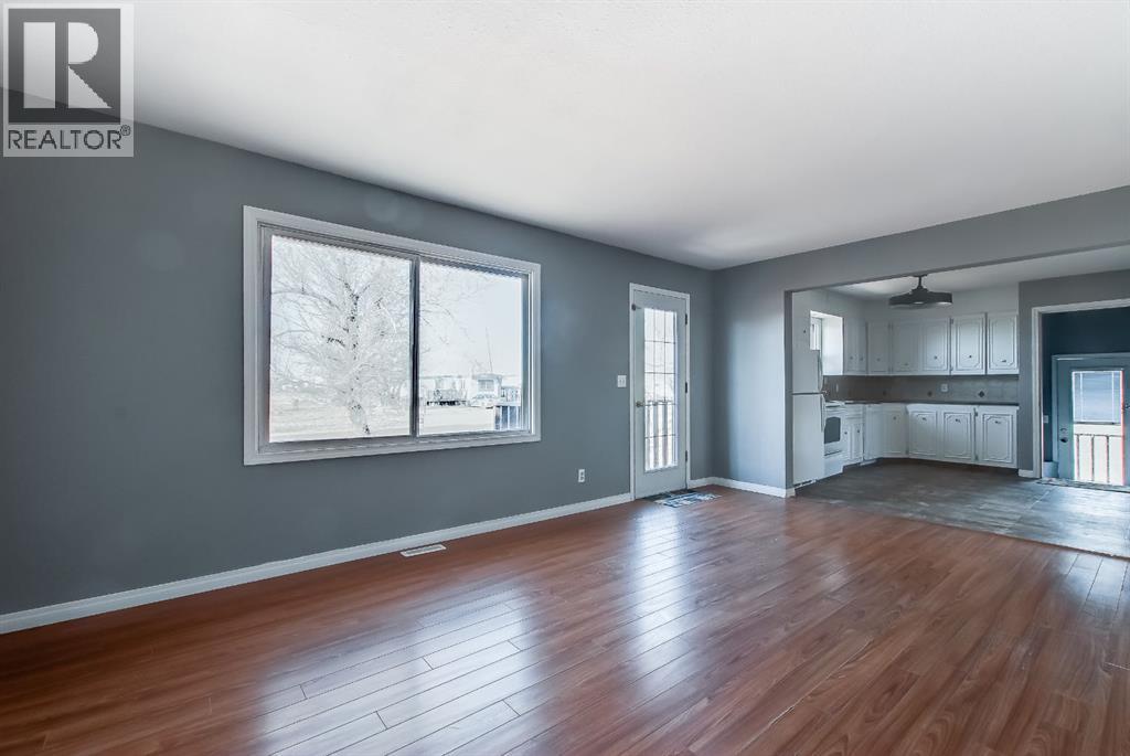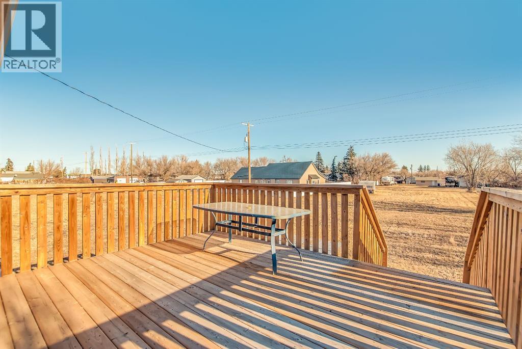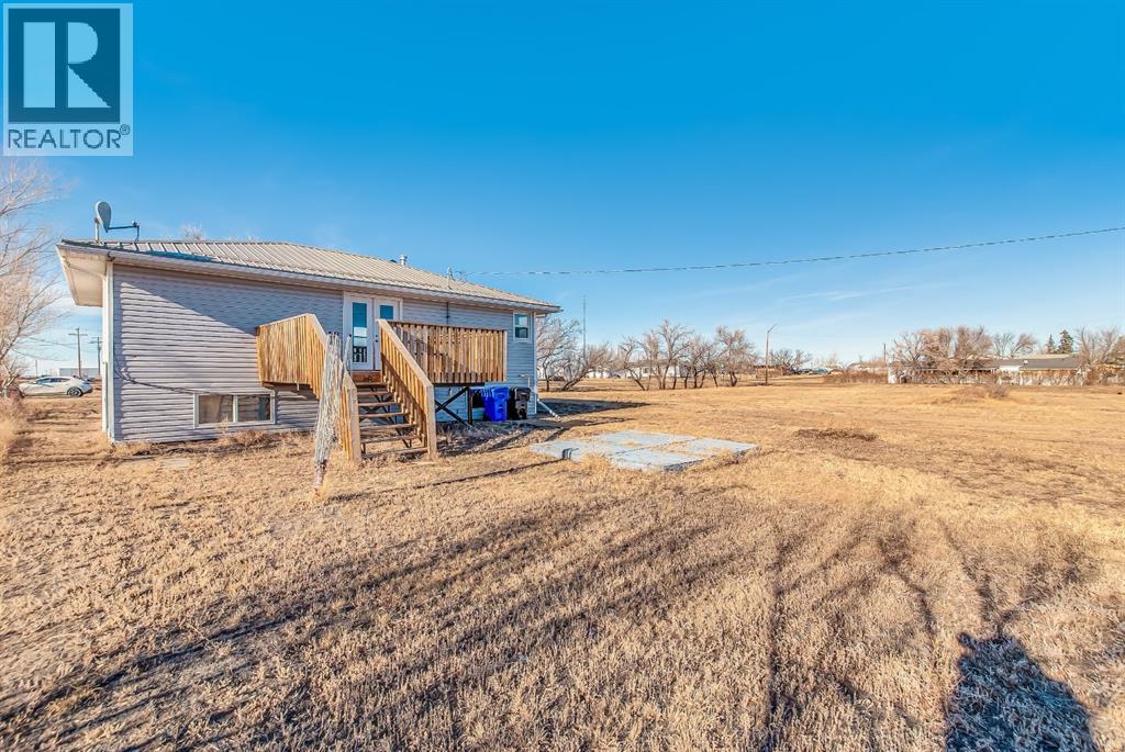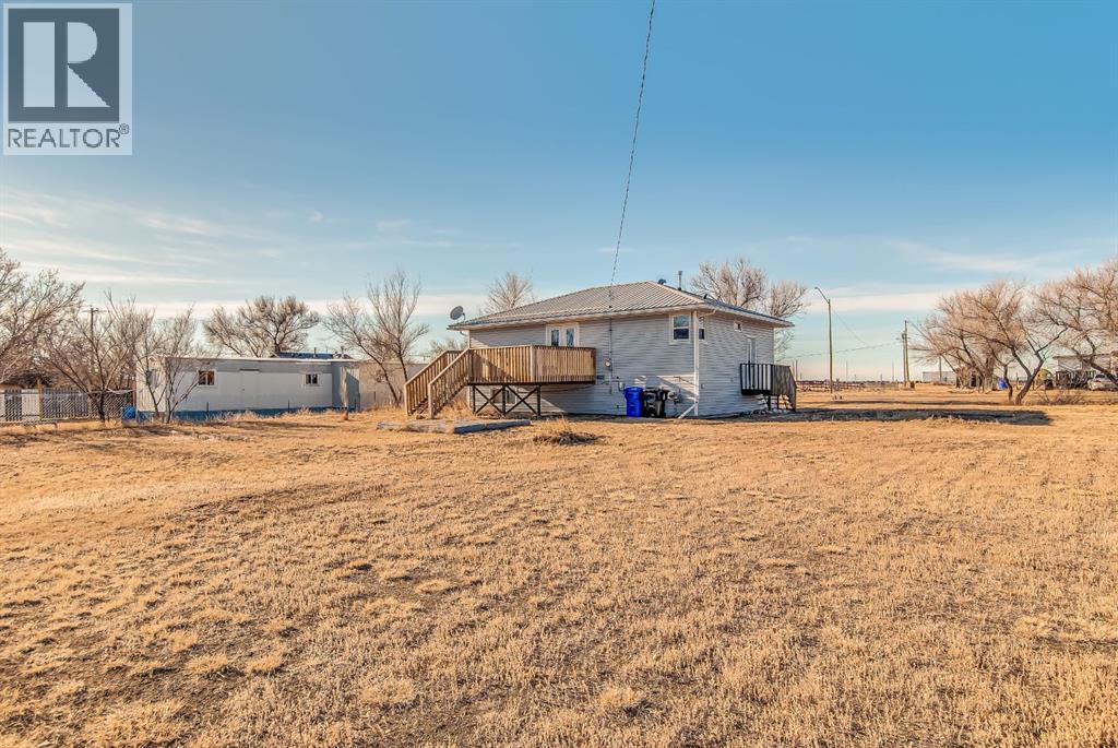 Excellent 3 bedroom home in Suffield, AB with substantial upgrades. Moved on home has newer windows,, siding, facia, soffit, eavestrough, flooring, and light fixtures from 2008. Energy efficiency attained by adding insulation wrap before residing. Extra insulation blown into the attic. Open concept eat in kitchen and living room including a full appliance package (fridge, stove, dishwasher & hood fan). The second bedroom has patio doors to the raised deck and could be used as a dining room or office. Basement has large windows. 100 Amp electrical panel, freshly painted and a new metal roof from 2025. Move in ready. Call to set up a viewing. This property currently resides on 9 lots, seller is only including 3 lots with the sale of this home. Additional lots can be negotiated with the sale. (id:53676)