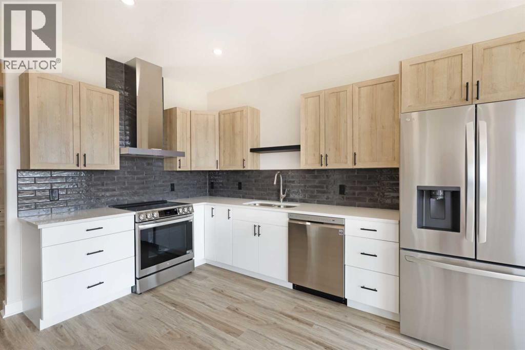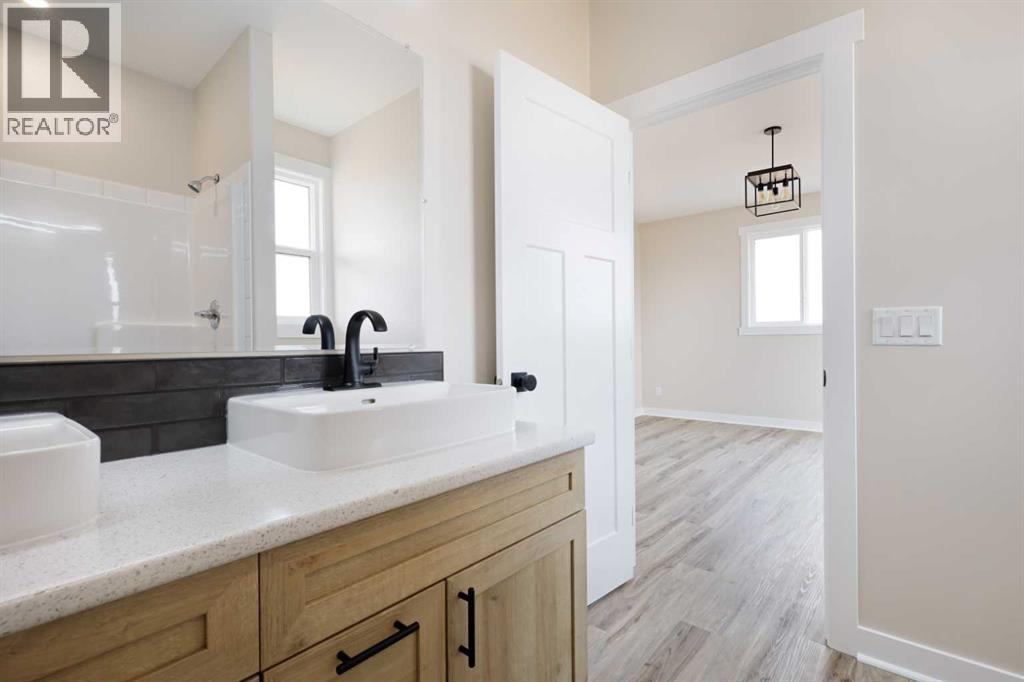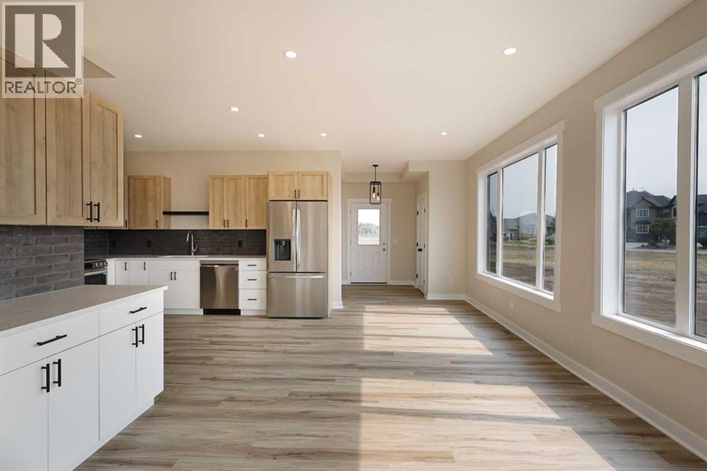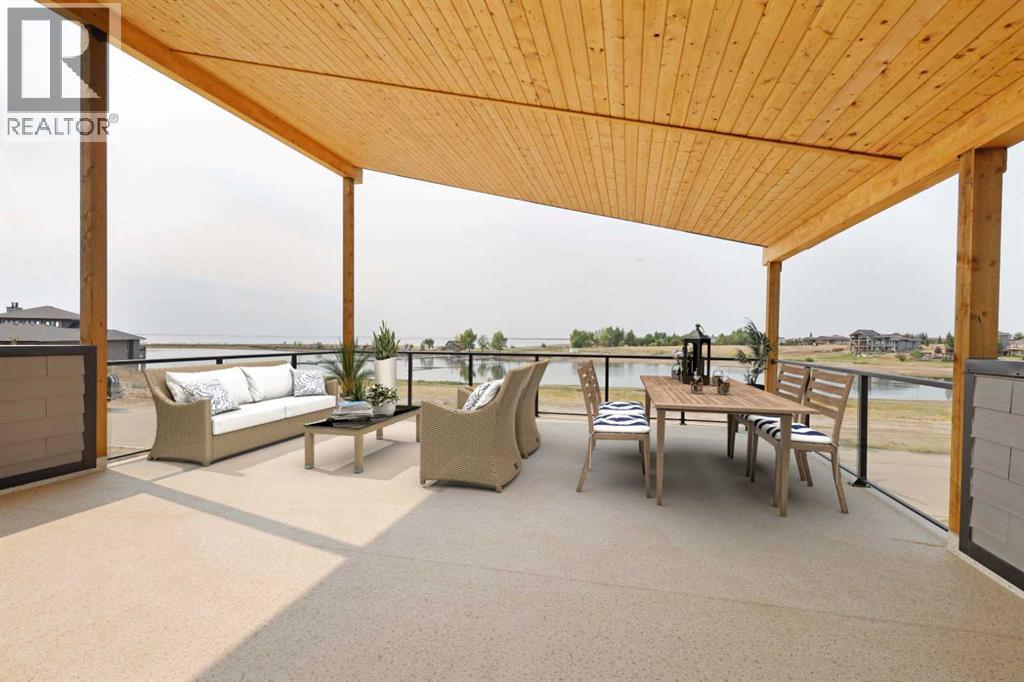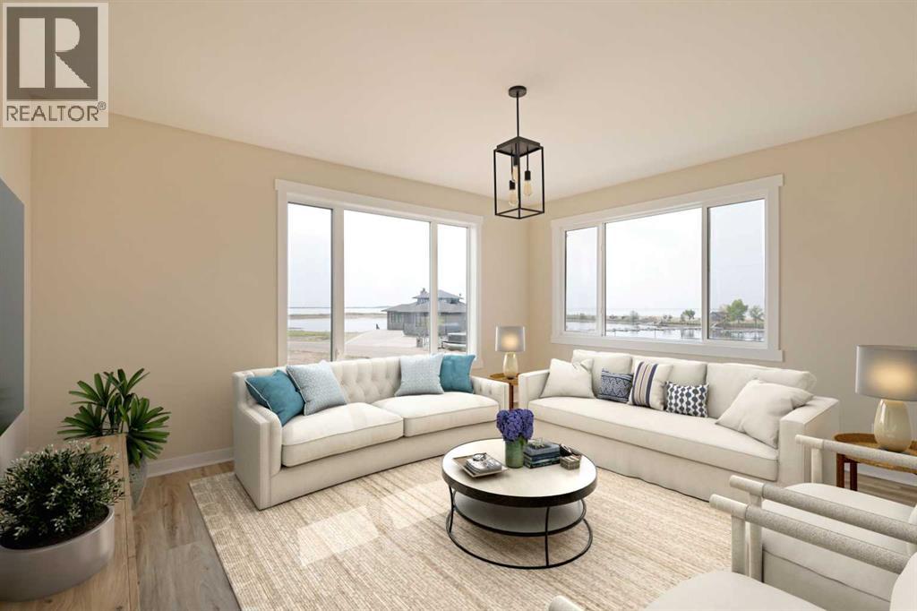 BRAND NEW BUILD - 43 KINGFISHER DRIVE is an image of modern design in the exclusive community of Lake Newell Resort. Located on an oversized .33 acre lot, with lake views, this property boasts 2248 square feet of totally uncharted living space. This home's building plans features an open concept design that smoothly blends the living & kitchen area on the main floor, which also contains the master bedroom, walk-in closet & ensuite bath. The main floor also includes a half bath, laundry room & access to the covered back. The second floor is where you will find the jewel feature of this home: an over 600 sq/ft covered deck, where you can enjoy gorgeous lake views while watching the sunrise or set. This space is especially designed as an outdoor cooking & dining area - your own private oasis. Complementary to the deck, the second floor offers a family room with a wet bar, sitting area, two bedrooms & a full bath. Other desirable features of this home include vinyl floors throughout, hardie board siding and in-floor heat for the garage and basement is roughed in. Don't miss this fantastic opportunity to own your own modern dream home in the highly sought-after community of Lake Newell Resort!! A great family community with plenty of outdoor activities all year round. Check out the 3D tour. GST is included in the purchase price. (id:53676)