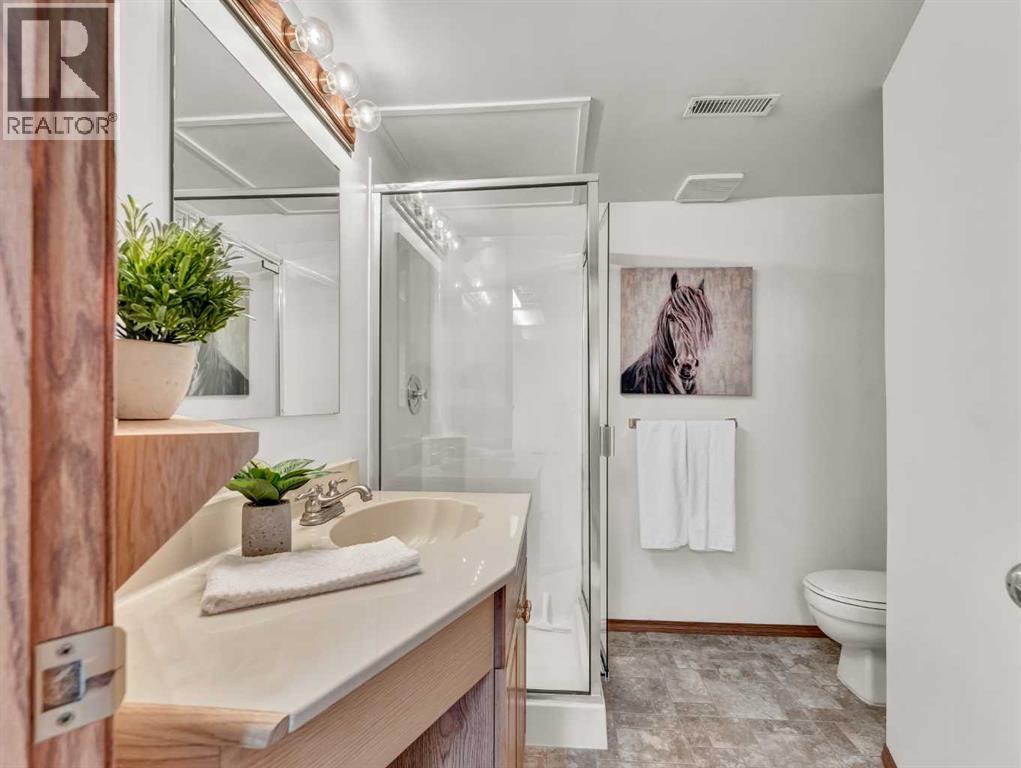 Welcome to 43 Prairie Court NE — a spacious and inviting 3+1 bedroom, 3-bathroom bungalow with a double attached garage, perfectly surrounded by nature and just minutes from Police Point Park, the River Valley, and the Medicine Hat Golf Course. The unique main floor layout features a bright front living room with large windows and a cozy gas fireplace, open to the dining area that’s ideal for family gatherings. This level also includes three bedrooms, including a comfortable primary suite with dual closets and a 3-piece ensuite. A 4-piece main bathroom, convenient main floor laundry, and access to the double attached garage complete this level.Just a few steps down, you’ll find a spacious kitchen with ample cabinetry, room for a breakfast table, and direct access to the back deck — the perfect spot for morning coffee or evening barbecues. The lower level is bright and welcoming, offering a huge rec and family room combination with a second gas fireplace and built-in oak entertainment centre, a fourth bedroom, a 3-piece bathroom, and a large storage room with shelving. The fully fenced and landscaped backyard includes a garden box and storage shed, creating a private outdoor retreat. With its ideal location, functional layout, and natural surroundings, this is the perfect place to call home. (id:53676)