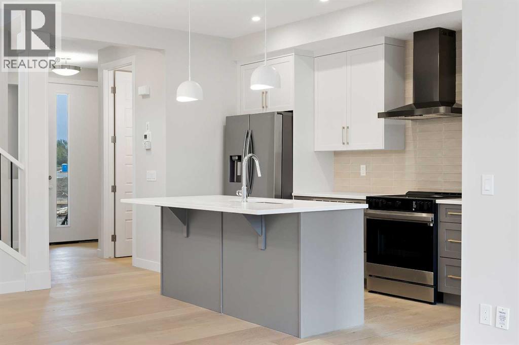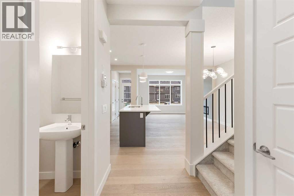 NEW PRICING - IMMEDIATE POSSESSION CONFIRMED BY THE BUILDER. BRAND NEW HOME by Douglas Homes, Master Builder in central Greystone, short walking distance to parks, the Bow River, major shopping & interconnected pathway system. Featuring the Windermere with main floor forward enclosed Flex Room & separate side entry on an R-MX zoned home site for POTENTIAL future lower level suite. NOTE: a secondary suite would be subject to approval and permitting by the city/municipality. This gorgeous 3 bedroom, 2 & 1/2 half bath home offers 1490 sq ft of living space. This home is located on a River Avenue which provides immediate access to the interconnective pathway system, perfect for those looking for a outdoor lifestyle. Loads of Designer & upgraded features in this beautiful, open floor plan. The main floor greets you with 8' front door, soaring 9' ceilings, oversized windows, built-in niches & fireplace. Gleaming Hardwood floors flow through the kitchen, hall & nook adding a feeling of warmth & style. At the front of the home you'll find an enclosed bright Flex Room (could also be a main floor bedroom) with 8'0" French Door and storage closet for the work from home crowd. The Kitchen is completed with Quartz Countertops, two tone Kitchen Cabinets, 42" uppers with decorative enclosed bulkhead, plenty of drawers including Pots & Pan drawers, soft close doors & drawers & new stainless steel Kitchen appliance package. Upstairs you'll find a generous Primary Bedroom with Ensuite - Quartz Counters with double vanities, 5' shower with Designer tiled walls & toilet in its own private doored room all completed with ceramic tile flooring & large walk-in closet accessed from the bedroom. The 2nd floor is completed by two good size additional bedrooms, main bath tub/shower combination with tiled walls, window, Quartz countertop, undermounted sink & ceramic tile flooring. You will love the convenience of 2nd Floor Laundry Room for side by side laundry completed with ceramic floor ti le. This is a very popular plan, great for young families, investors or the down sizers. Spacious, Beautiful and Elegant! The perfect place for your perfect home. Call today! Photos are from prior build & are reflective of fit, finish & included features. Note: Front elevation of home & interior photos are for illustration purposes only. Actual elevation style, interior colors/finishes, & upgrades may be different than shown & the Seller is under no obligation to provide them as such.Directions: Come to the Show Home first located at 500 River Avenue. Showings only during Show Home hours & days. Closed all Fridays THIS HOME IS UNDER CONSTRUCTION (id:53676)
