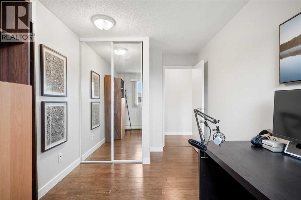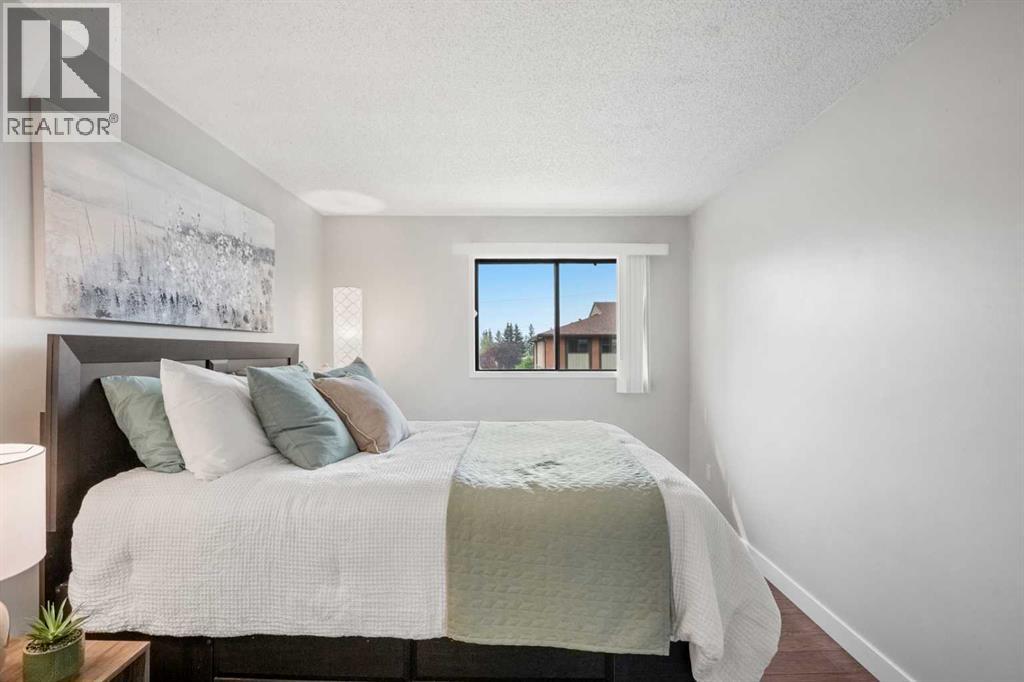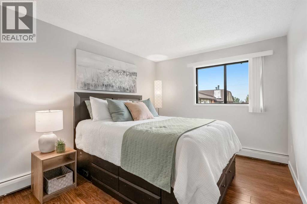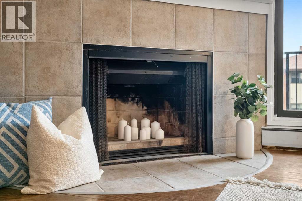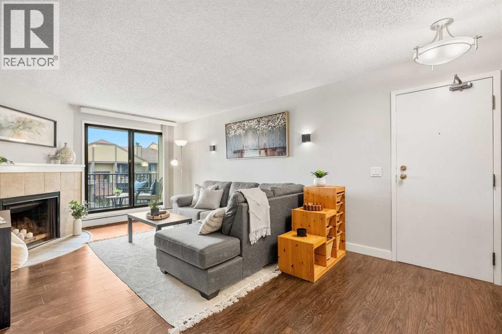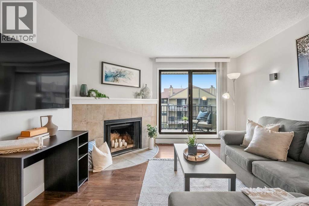 Look no further! This 2-bedroom, 1-bathroom, 822 sq. ft. TOP-FLOOR unit faces the courtyard and includes in-suite laundry, underground parking, an on-site gym with sauna, and a separate storage unit. As you enter, you’ll be welcomed by a spacious dining area that is open to the kitchen and living room. The bright living room features a cozy corner wood-burning fireplace and opens to a large south-facing balcony with scenic courtyard views. The kitchen offers a convenient peek-a-boo opening to the living room, perfect for entertaining while preparing meals. A generous laundry room, located just off the kitchen, doubles as a storage room or oversized pantry. The updated bathroom boasts a newer vanity and a full tile surround to the ceiling. The king-sized primary suite provides ample room for a desk area and includes a walk-in closet, while the second bedroom comfortably fits a queen bed. This home is move-in ready with neutral paint, modern trim, hard surface flooring throughout and an updated bathroom. Ideally situated just a 6-minute walk to the Canyon Meadows C-train station, a 15-minute walk to Fish Creek Park, and with quick access to Macleod Trail, this top-floor unit is a great opportunity to own your first home or as an investment property. (id:53676)