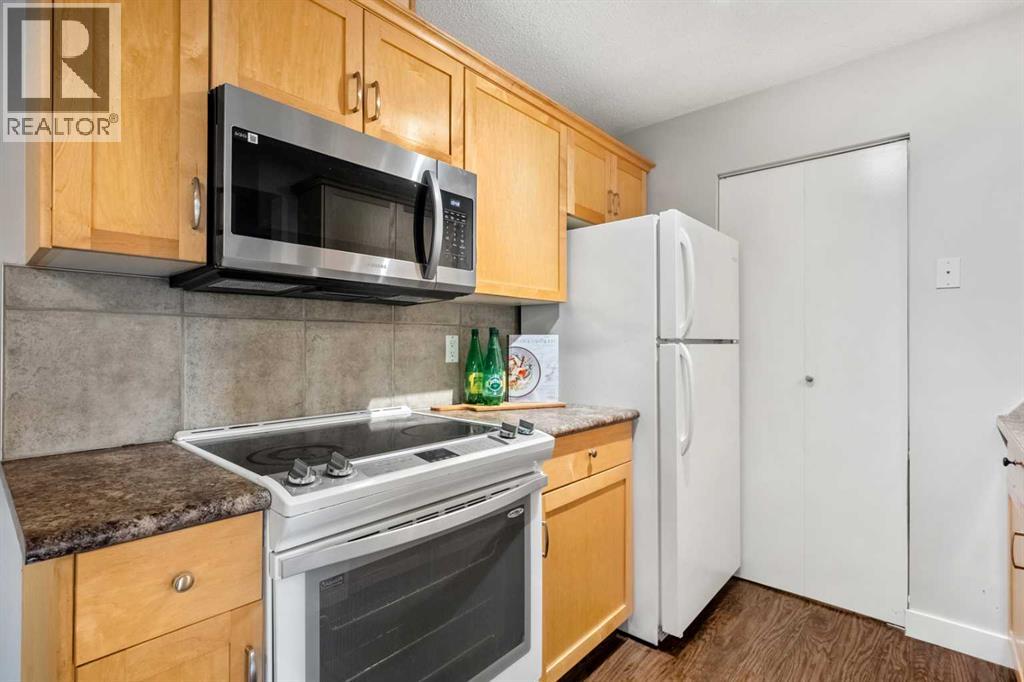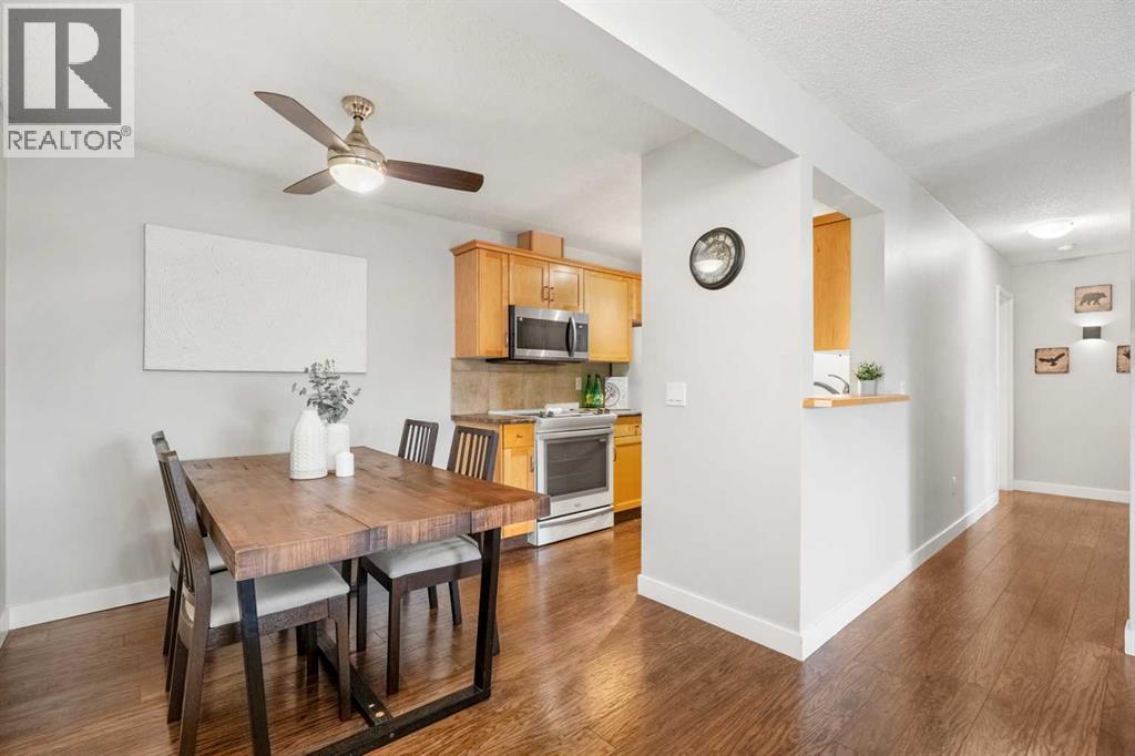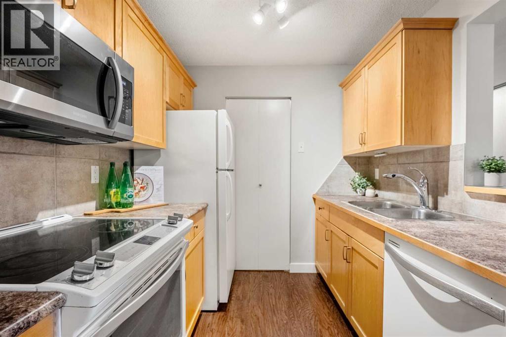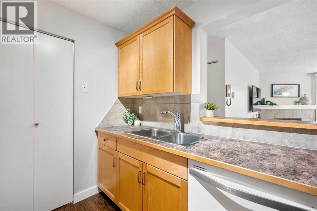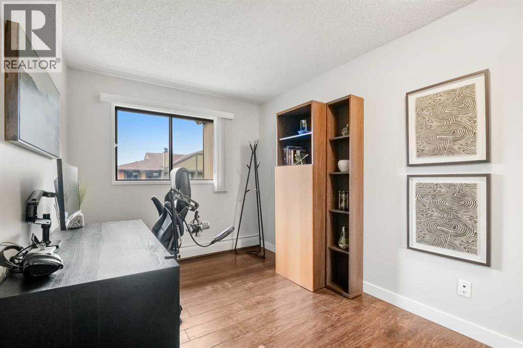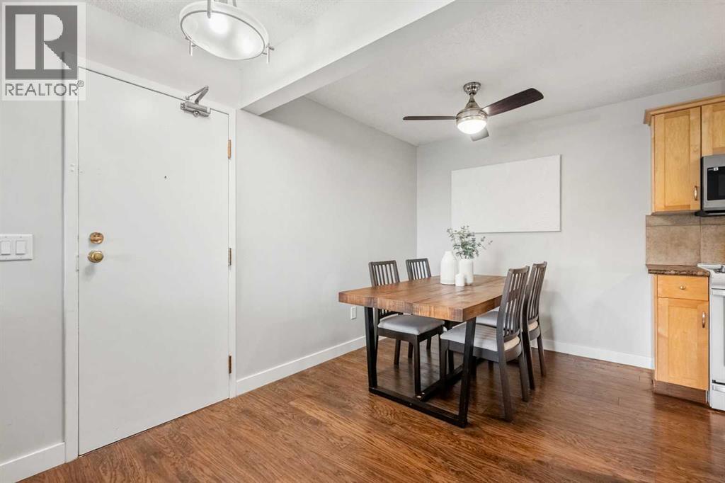 Look no further! This 2-bedroom, 1-bathroom, 822 sq. ft. TOP-FLOOR unit faces the courtyard and includes in-suite laundry, underground parking, an on-site gym with sauna, and a separate storage unit. As you enter, you’ll be welcomed by a spacious dining area that is open to the kitchen and living room. The bright living room features a cozy corner wood-burning fireplace and opens to a large south-facing balcony with scenic courtyard views. The kitchen offers a convenient peek-a-boo opening to the living room, perfect for entertaining while preparing meals. A generous laundry room, located just off the kitchen, doubles as a storage room or oversized pantry. The updated bathroom boasts a newer vanity and a full tile surround to the ceiling. The king-sized primary suite provides ample room for a desk area and includes a walk-in closet, while the second bedroom comfortably fits a queen bed. This home is move-in ready with neutral paint, modern trim, hard surface flooring throughout and an updated bathroom. Ideally situated just a 6-minute walk to the Canyon Meadows C-train station, a 15-minute walk to Fish Creek Park, and with quick access to Macleod Trail, this top-floor unit is a great opportunity to own your first home or as an investment property. (id:53676)