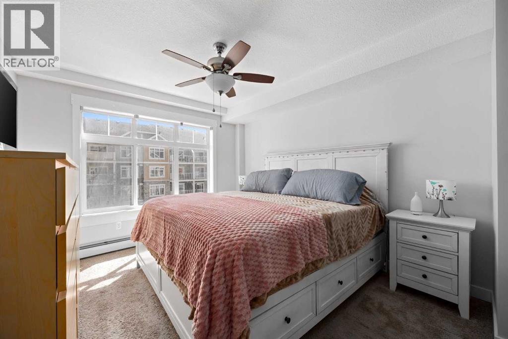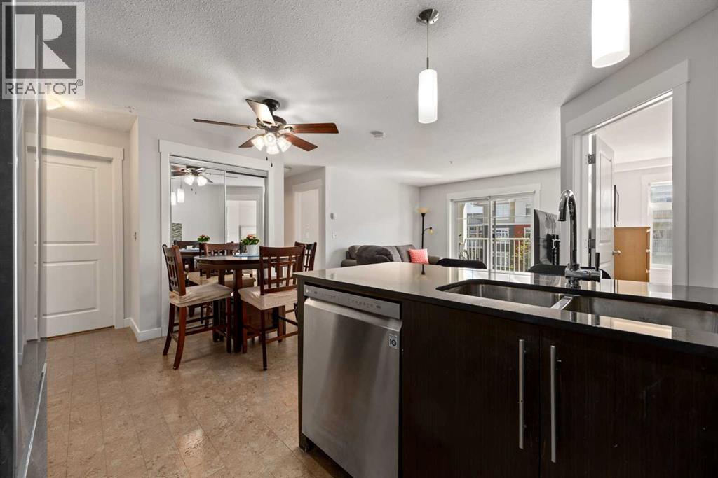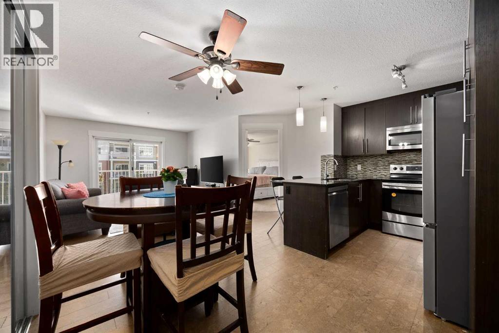 This SOUTH-FACING BALCONY offers a bright, comfortable, and modern living space packed with desirable features. With 2 BEDROOMS & 2 FULL BATHROOMS, there’s plenty of room to relax, entertain, or work from home. Lovingly maintained by the ORIGINAL OWNER, this unit shows pride of ownership throughout.As you step inside, you'll be greeted by an open-concept layout filled with natural light, thanks to its south orientation. The kitchen features STAINLESS APPLIANCES, while the IN-SUITE LAUNDRY with a stackable washer and dryer adds everyday convenience. You'll also appreciate the large IN-SUITE STORAGE ROOM and an ADDITIONAL STORAGE cage located in front of the TITLED PARKING STALL, offering plenty of space for seasonal items or gear. CEILING FANS in both the primary bedroom and dining/kitchen areas help keep the unit cool and comfortable during warmer months.Parking is a breeze with 1 TITLED UNDERGROUND STALL, plus ample VISITOR PARKING and the option to lease surface parking if needed.Located in the vibrant community of Skyview Ranch, you’ll enjoy access to parks, playgrounds, green spaces, and walking and biking paths just steps from your door. For shopping, dining, and entertainment, CrossIron Mills is only a short drive away, offering a wide variety of options.Commuting is convenient with easy access to Stoney Trail and Calgary International Airport, making travel in and out of the city quick and efficient.Don’t miss your chance to own this well-appointed condo in a thriving community... A perfect place to call home! (id:53676)