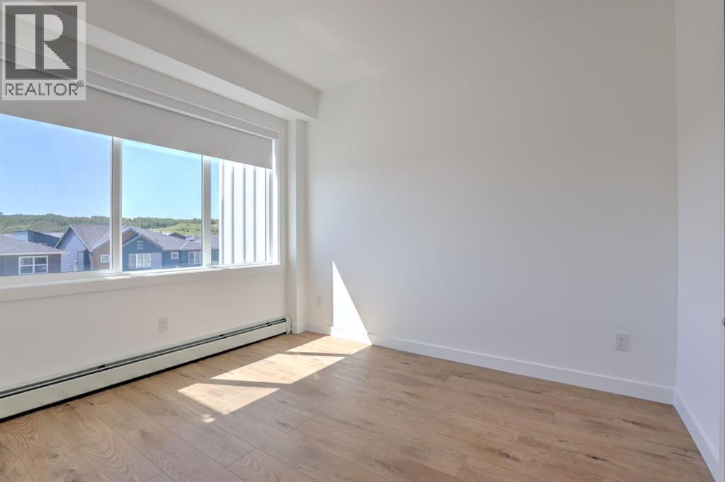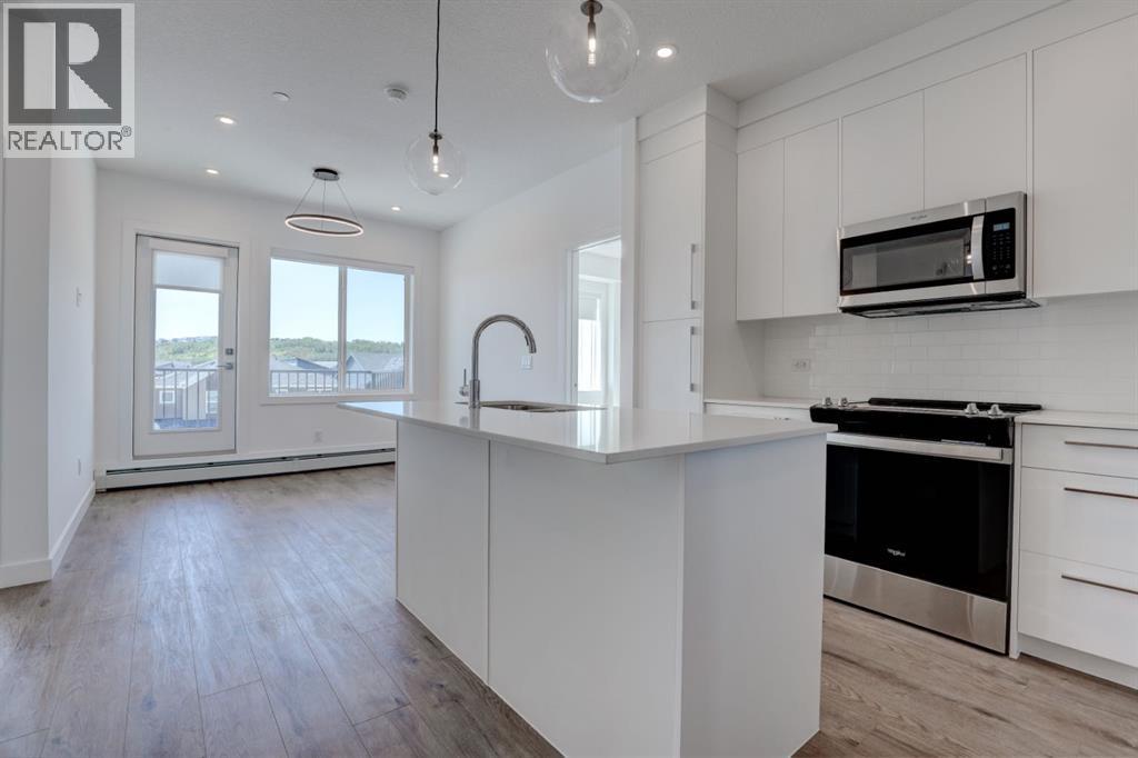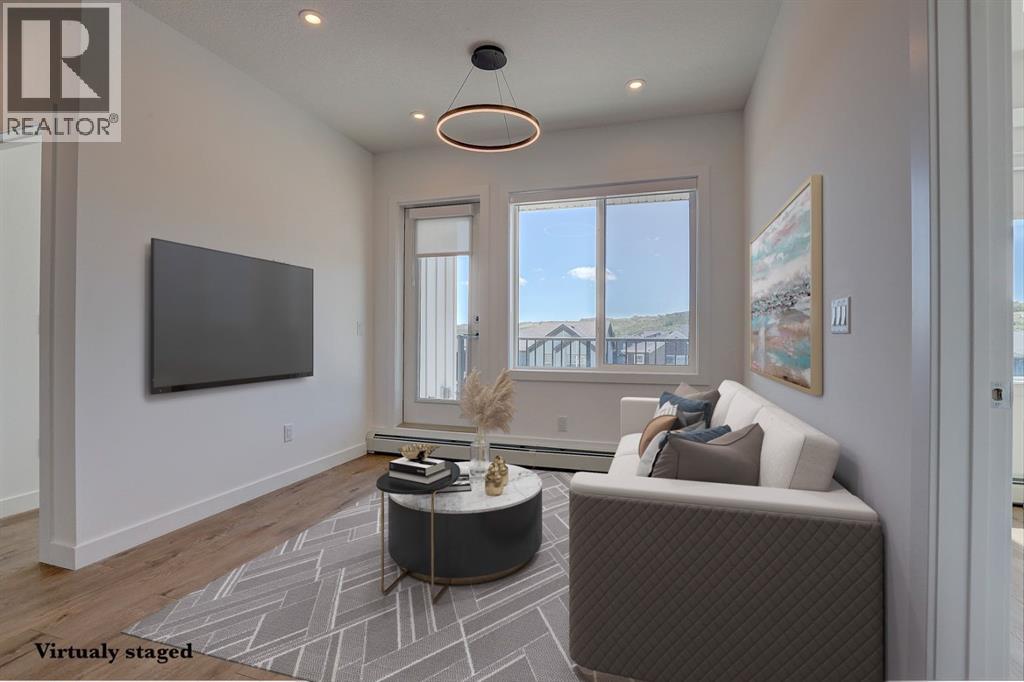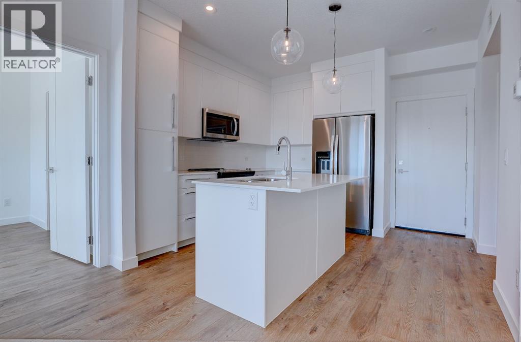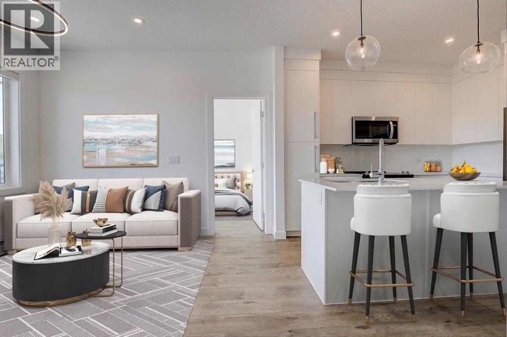 BRAND NEW | SUNNY SOUTH EXPOSURE | TITLED UNDERGROUND PARKING | EV CHARGERS | OVER 30 VISITOR STALLS | 2 BED + DEN | 2 BATH | PET FRIENDLY | GYM ACCESSBe the very first to live in this 2024-built, never-occupied condo located in the exciting, fast-growing community of Wolf Willow. Boasting one of the best sun-filled, south-facing exposures in the entire complex, this thoughtfully designed 2-bedroom + den, 2-bathroom home blends comfort, style, and convenience in a space that feels both functional and fresh.Step inside to a bright, open-concept layout that begins with a spacious entryway, complete with a coat closet and room to settle in. Tucked just off the foyer is a versatile den — perfect for working from home.At the heart of the unit is a contemporary kitchen featuring sleek quartz countertops, a large central island, stainless steel appliances, and ample cabinetry. The kitchen flows seamlessly into the living and dining area, offering a bright and welcoming space ideal for entertaining or relaxing. Step out onto the private balcony to enjoy open skies and serene views — whether it's a sunny morning coffee or an evening glass of wine, this outdoor space truly elevates your daily routine.The generously sized primary suite includes a walk-through closet and a modern 3-piece ensuite bathroom. A second bedroom and a full 4-piece bathroom provide comfortable accommodations for guests or family. In-suite laundry and additional storage round out the unit’s smart layout.Your titled, heated underground parking stall keeps your car secure and warm year-round — and with 10 EV charging stations on site, you’re future-ready. Hosting guests? You’ll love the convenience of 30+ visitor parking stalls available above ground. Pet owners will appreciate the building’s dog-friendly features, including a pet wash and nearby dog park. Residents also enjoy access to an on-site fitness centre, a bike storage room, and a stylish social lounge.Surrounded by parks, scenic path ways along the Bow River, and quick access to shopping and amenities, Wolf Willow is a community built for active living and connection. The Blue Devil Golf Course is just a 5-minute walk away, offering the perfect escape for a quick round or a relaxing afternoon.Don't miss your chance to own one of the best-positioned units in the building. Book your showing today and make Wolf Willow your next chapter. (id:53676)