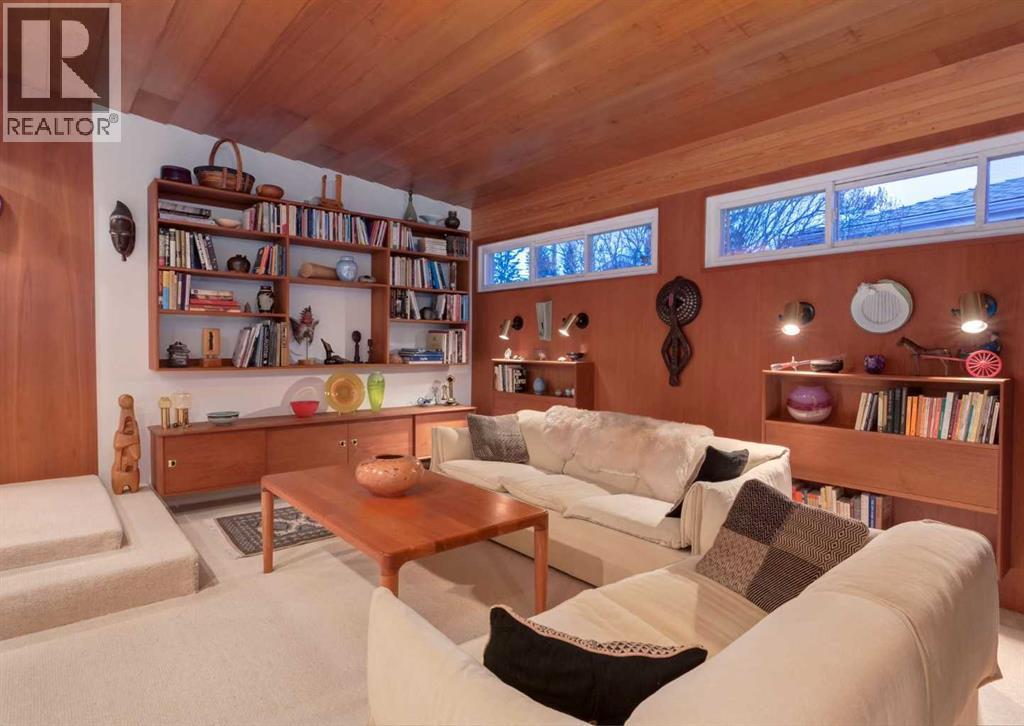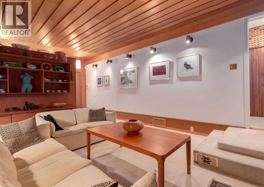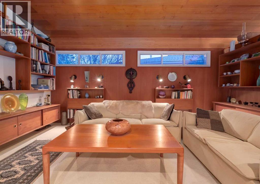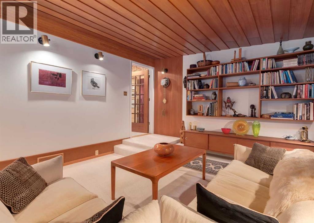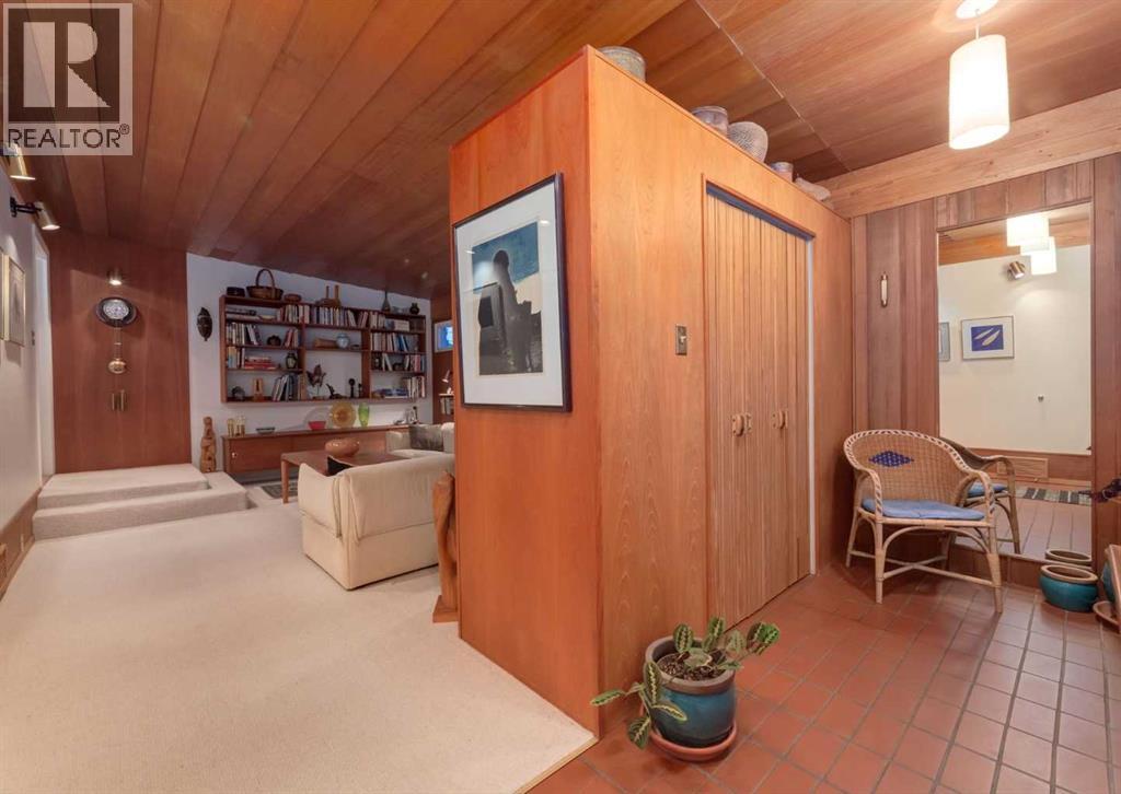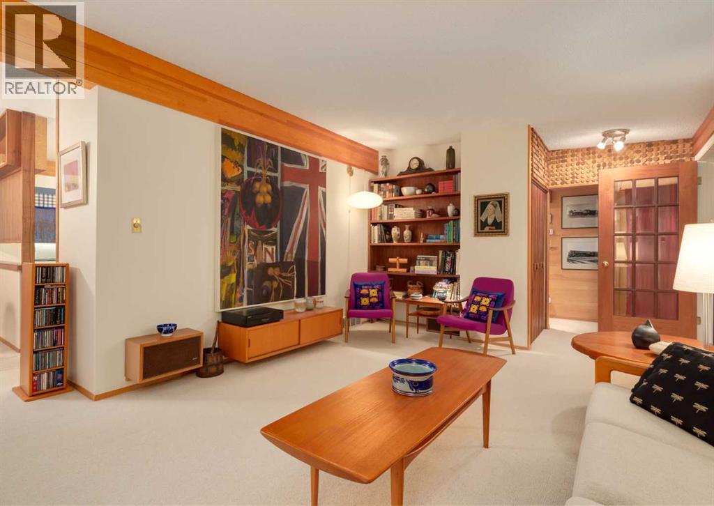 ***Open house Saturday April 25, 1-3pm*** This meticulously maintained mid-century home is a true architectural time capsule—lovingly preserved and thoughtfully crafted, with custom woodwork carried throughout nearly every space that cannot be replicated. From the moment you step into the vaulted, tiled mudroom, you’re welcomed by clean lines, natural materials, and an abundance of light streaming through the windows. The main floor den is a standout, featuring rich wood paneling and custom built-in shelving—an ideal reading or work-from-home space. A single French door leads into the living room, where a timeless wood-burning brick fireplace and windows create a warm, inviting atmosphere. The dining area seamlessly connects to the kitchen, where original cabinetry has been impeccably maintained and a skylight fills the space with natural light. This level offers three well-sized bedrooms and a full bathroom, continuing the home’s cohesive design. The lower level, with its own separate side entrance, expands the living space with a family room, a vintage-inspired 4-piece bathroom, an additional flex room, and a dedicated art studio—perfect for creative pursuits or a private workspace. Situated on a pie-shaped lot, the backyard features a large custom composite deck with plenty of room to relax or entertain. The oversized garage is a true highlight, complete with a beautifully crafted custom workbench and extensive built-in cabinetry. The studio and workshop spaces are truly special that reflect the creativity and care poured into this home over the years. This is a home for a discerning buyer—someone who recognizes the significance of mid-century design, values craftsmanship, and appreciates a property that has been carefully maintained and preserved. A truly special offering in one of NW Calgary’s most sought-after communities. Steps from Varsity Acres School and close proximity to F.E. Osborne, St. Vincent de Paul, and Marion Carson Schools. Minutes from the Unive rsity of Calgary, Market Mall, Foothills/Children's Hospital, University District, and the Bow River pathways. Opportunities like this are incredibly rare. Please click on media for the video and schedule your private viewing today. (id:53676)