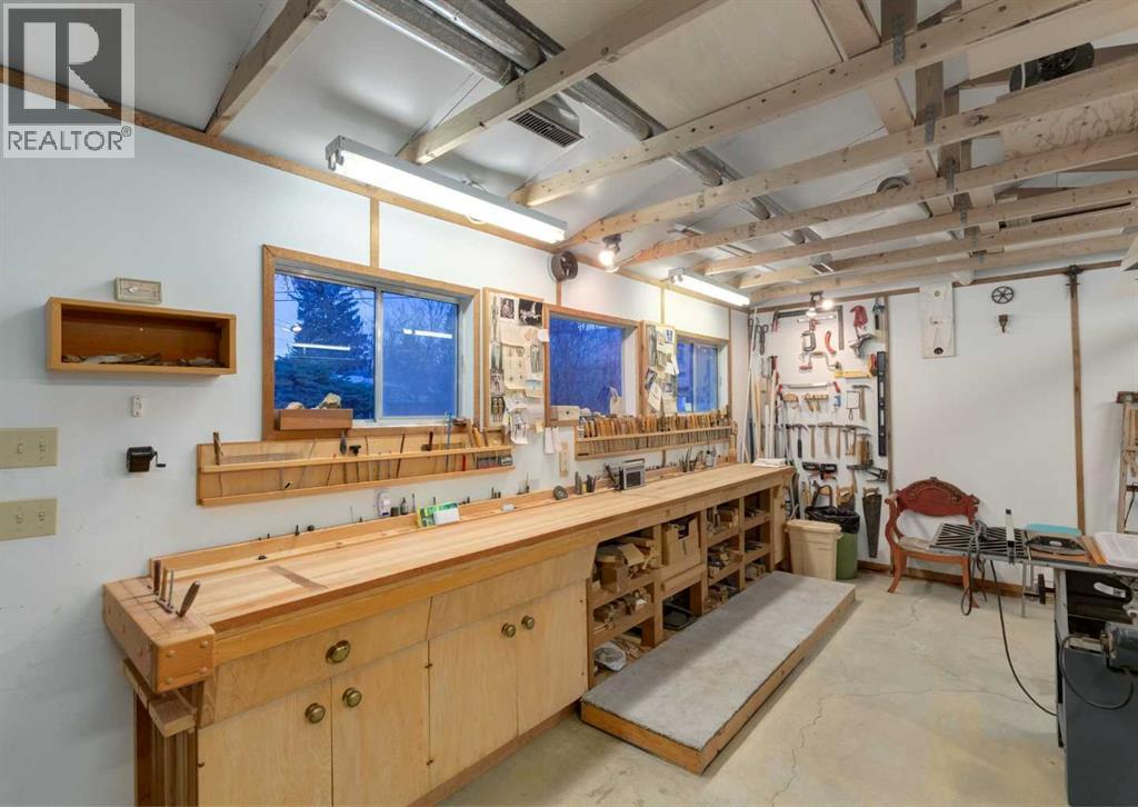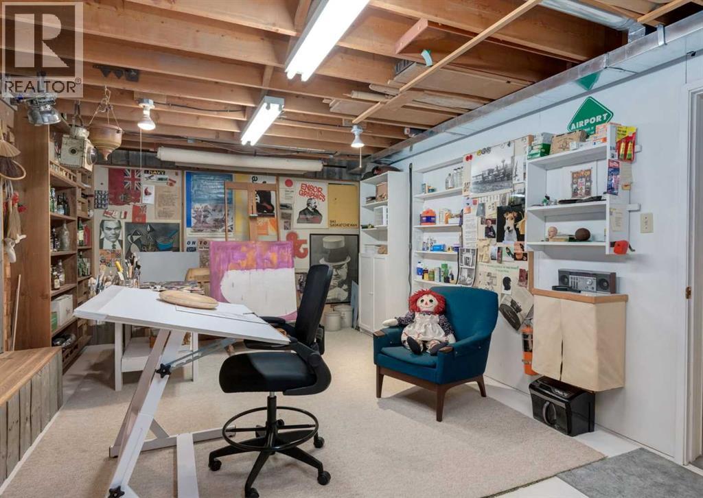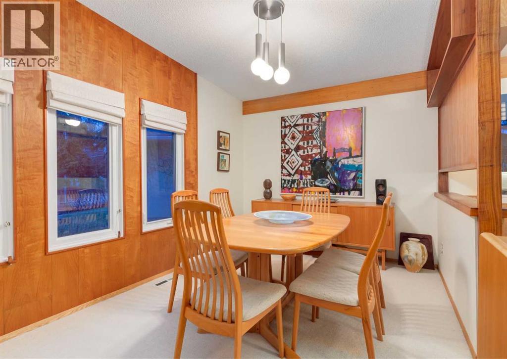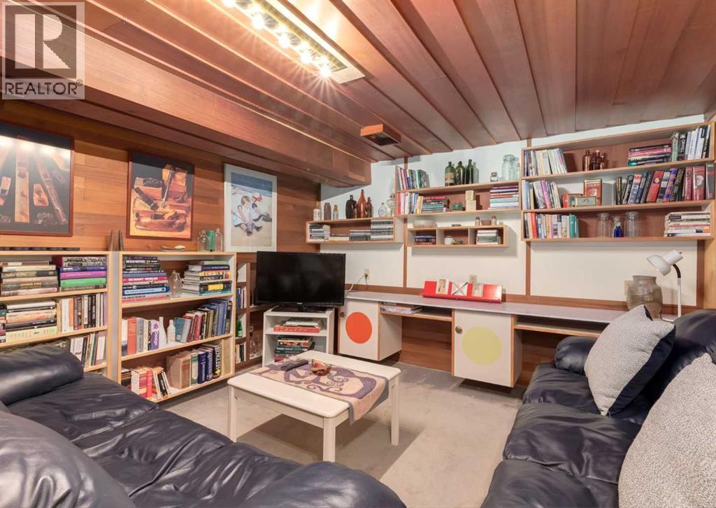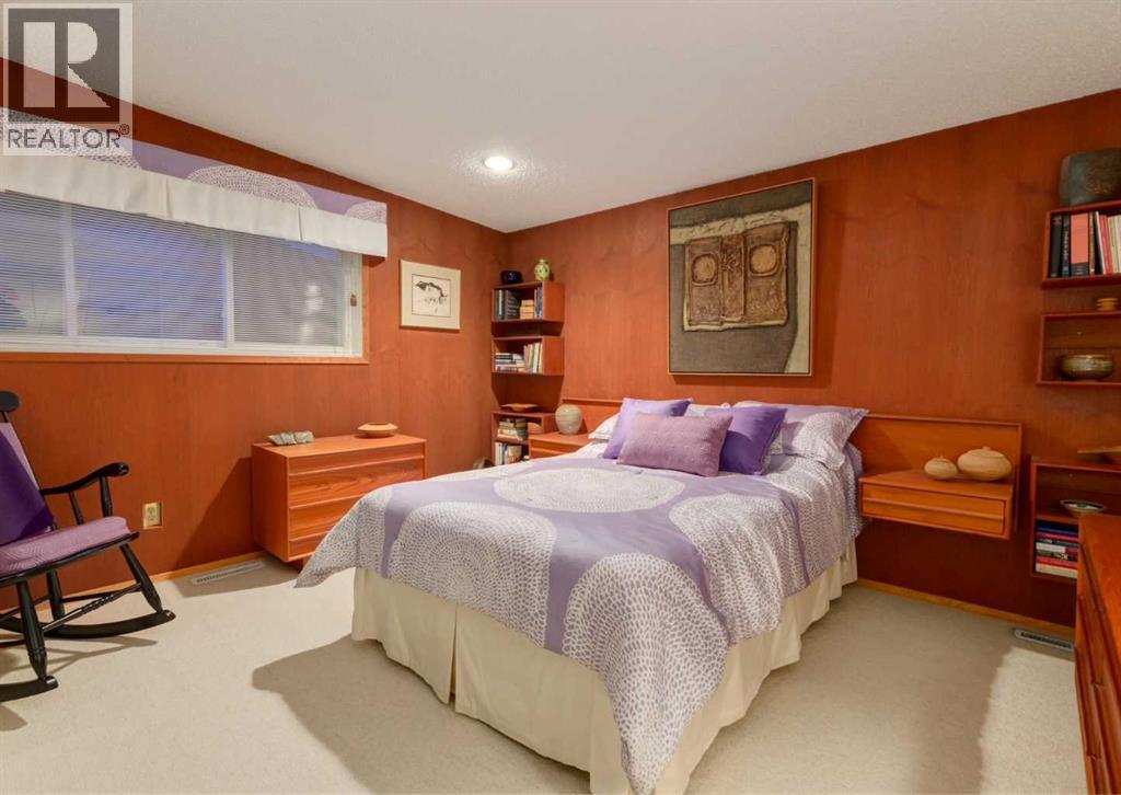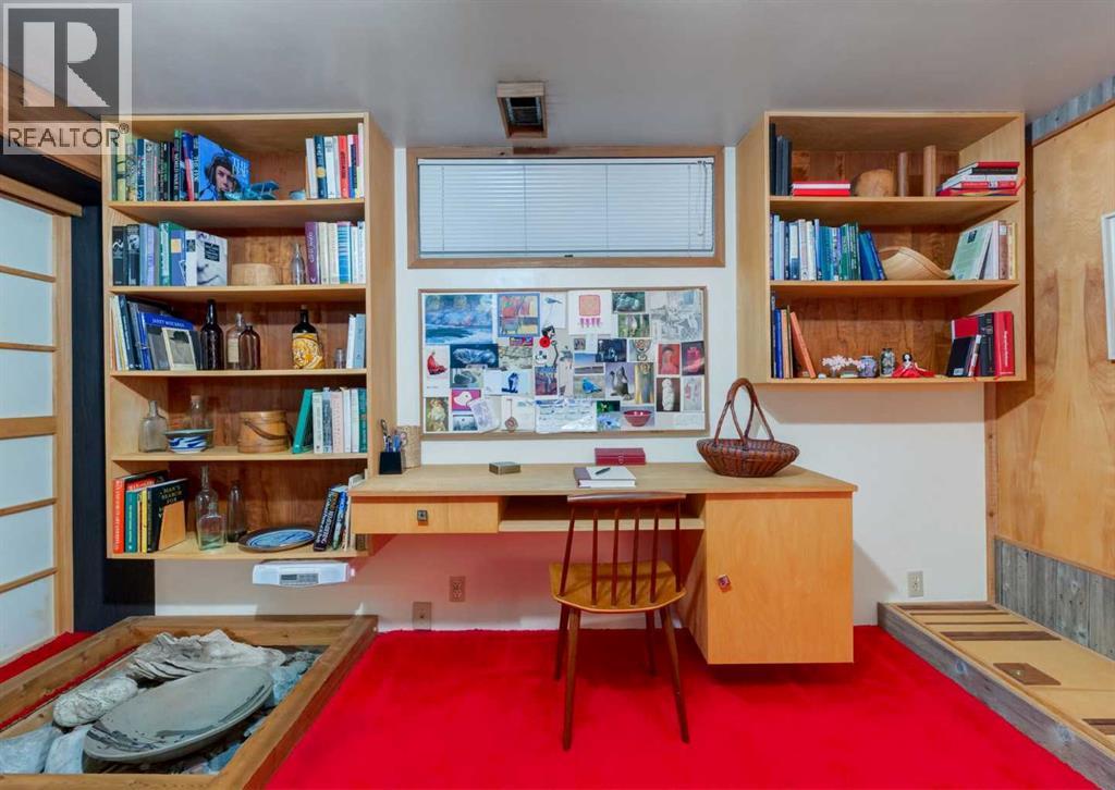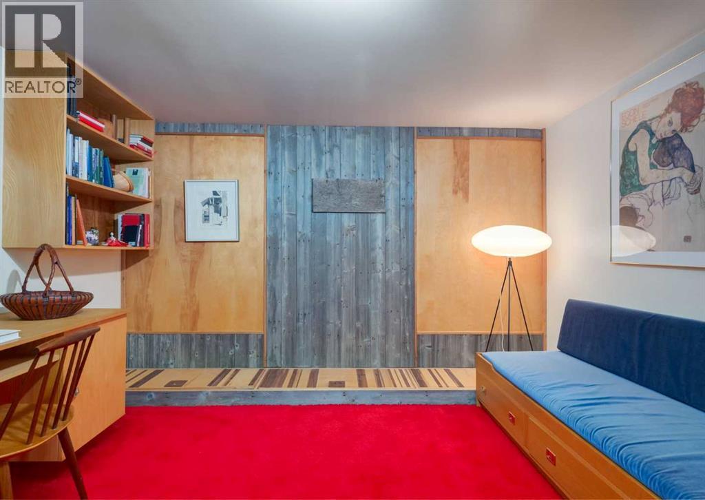 ***Open house Saturday April 25, 1-3pm*** This meticulously maintained mid-century home is a true architectural time capsule—lovingly preserved and thoughtfully crafted, with custom woodwork carried throughout nearly every space that cannot be replicated. From the moment you step into the vaulted, tiled mudroom, you’re welcomed by clean lines, natural materials, and an abundance of light streaming through the windows. The main floor den is a standout, featuring rich wood paneling and custom built-in shelving—an ideal reading or work-from-home space. A single French door leads into the living room, where a timeless wood-burning brick fireplace and windows create a warm, inviting atmosphere. The dining area seamlessly connects to the kitchen, where original cabinetry has been impeccably maintained and a skylight fills the space with natural light. This level offers three well-sized bedrooms and a full bathroom, continuing the home’s cohesive design. The lower level, with its own separate side entrance, expands the living space with a family room, a vintage-inspired 4-piece bathroom, an additional flex room, and a dedicated art studio—perfect for creative pursuits or a private workspace. Situated on a pie-shaped lot, the backyard features a large custom composite deck with plenty of room to relax or entertain. The oversized garage is a true highlight, complete with a beautifully crafted custom workbench and extensive built-in cabinetry. The studio and workshop spaces are truly special that reflect the creativity and care poured into this home over the years. This is a home for a discerning buyer—someone who recognizes the significance of mid-century design, values craftsmanship, and appreciates a property that has been carefully maintained and preserved. A truly special offering in one of NW Calgary’s most sought-after communities. Steps from Varsity Acres School and close proximity to F.E. Osborne, St. Vincent de Paul, and Marion Carson Schools. Minutes from the Unive rsity of Calgary, Market Mall, Foothills/Children's Hospital, University District, and the Bow River pathways. Opportunities like this are incredibly rare. Please click on media for the video and schedule your private viewing today. (id:53676)
