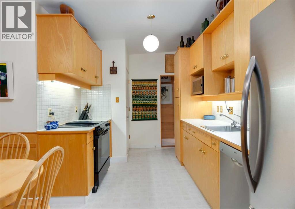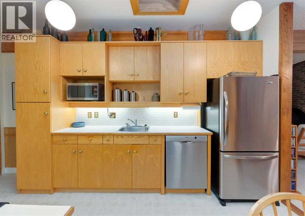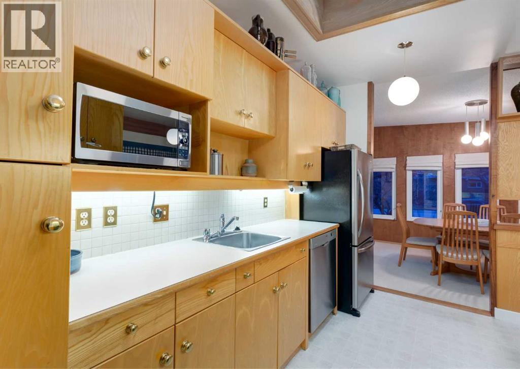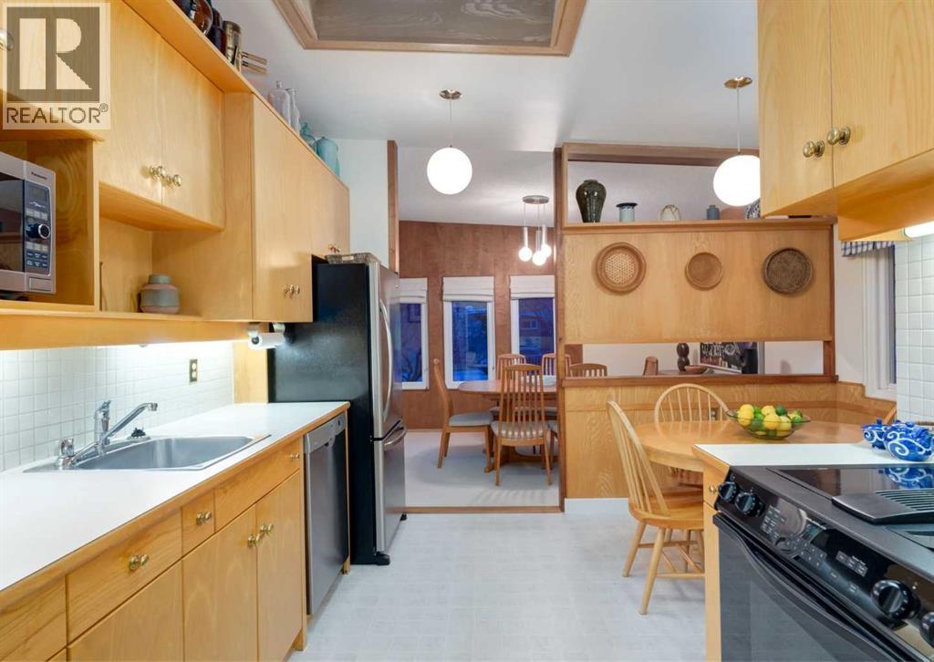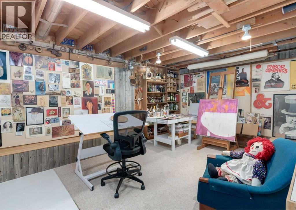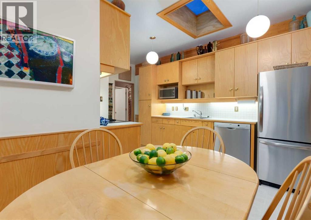 ***Open house Saturday April 25, 1-3pm*** This meticulously maintained mid-century home is a true architectural time capsule—lovingly preserved and thoughtfully crafted, with custom woodwork carried throughout nearly every space that cannot be replicated. From the moment you step into the vaulted, tiled mudroom, you’re welcomed by clean lines, natural materials, and an abundance of light streaming through the windows. The main floor den is a standout, featuring rich wood paneling and custom built-in shelving—an ideal reading or work-from-home space. A single French door leads into the living room, where a timeless wood-burning brick fireplace and windows create a warm, inviting atmosphere. The dining area seamlessly connects to the kitchen, where original cabinetry has been impeccably maintained and a skylight fills the space with natural light. This level offers three well-sized bedrooms and a full bathroom, continuing the home’s cohesive design. The lower level, with its own separate side entrance, expands the living space with a family room, a vintage-inspired 4-piece bathroom, an additional flex room, and a dedicated art studio—perfect for creative pursuits or a private workspace. Situated on a pie-shaped lot, the backyard features a large custom composite deck with plenty of room to relax or entertain. The oversized garage is a true highlight, complete with a beautifully crafted custom workbench and extensive built-in cabinetry. The studio and workshop spaces are truly special that reflect the creativity and care poured into this home over the years. This is a home for a discerning buyer—someone who recognizes the significance of mid-century design, values craftsmanship, and appreciates a property that has been carefully maintained and preserved. A truly special offering in one of NW Calgary’s most sought-after communities. Steps from Varsity Acres School and close proximity to F.E. Osborne, St. Vincent de Paul, and Marion Carson Schools. Minutes from the Unive rsity of Calgary, Market Mall, Foothills/Children's Hospital, University District, and the Bow River pathways. Opportunities like this are incredibly rare. Please click on media for the video and schedule your private viewing today. (id:53676)