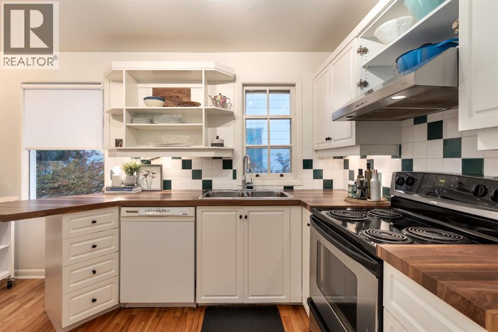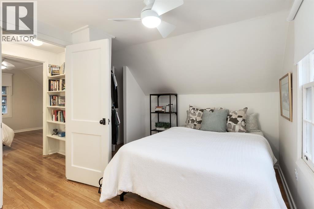 Full of character, this well-maintained and thoughtfully upgraded Mount Pleasant sits on a quiet 44’ x 120’ R-CG Lot! As you walk up, the repainted siding and a yellow front door immediately welcomes you. Inside, the spacious living room welcomes you with a picturesque front window and gorgeous original hardwood that speak to the home’s timeless character. Arched doorways enhance the charm as you transition into a sunlit, south-facing dining room — a warm and inviting space that made for gathering. The beautifully updated kitchen is equally delightful, featuring rich wood countertops contrasted beautifully against classic white cabinetry and a tiled backsplash, creating a perfect blend of warmth and style. The main floor bathroom is fully renovated, thoughtfully appointed with built-ins, with an elegant and timeless look.Upstairs, you’ll find two generous bedrooms, each tucked beneath the slope of the roofline — creating whimsical vaulted ceilings and cozy architectural character. From the rear entry, the stairs lead to a fully developed basement, offering a bright and renovated recreation area complete with an electric fireplace — equal parts stylish and inviting. A large additional bedroom, second bathroom, and laundry space provide excellent flexibility and storage. Fresh paint, updated details, and preserved original elements blend seamlessly, adding personality in all the right places.Outside, the south-facing backyard is a private inner-city oasis — with a sprawling lawn, patio, fire pit, mature shrubs, and fruit trees creating a serene and secluded retreat. The built-in garden beds, play house, and a single detached garage off the alley complete this exceptional outdoor lifestyle.Located in one of Calgary’s most beloved communities, this home is just a few blocks from Confederation Park, with quick access to the local outdoor rink, Arts Centre, playgrounds, schools, and major commuter routes off 4th streets Centre Street and 16th Avenue into downtow n. With nearby golf, Nose Hill Park, and endless amenities at your fingertips — this one truly has it all. Book your private showing today (id:53676)
