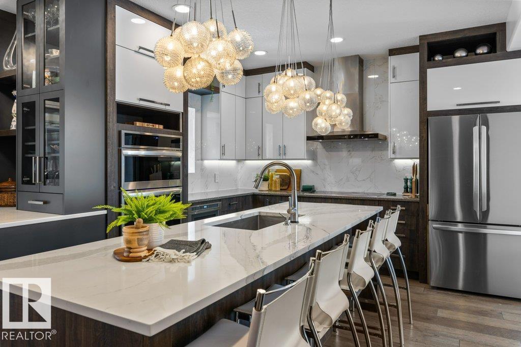 Welcome to Kingswood, where this stunning 2-storey home is designed for effortless, elevated living. Natural light fills the main floor, highlighting a gourmet kitchen with quartz counters, high-end appliances and a custom coffee bar, seamlessly flowing into the formal living and dining areas, cozy family room and main floor den. Step outside to the motorized screened deck, perfect for year-round enjoyment. Start mornings with coffee and unwind with sunset views from one of two decks. An ELEVATOR offers convenient access to every level. Upstairs features 4 spacious bedrooms, including a beautiful primary suite with ensuite, custom walk-in closet and private deck with city views. The fully finished walkout basement is built for entertaining with a rec room, wet bar and steam shower, leading to a covered patio and professionally landscaped yard with irrigation and firepit. Complete with main floor laundry, oversized double attached garage, dog run, new doors and permanent lighting. A rare find in Kingswood! (id:53676)
