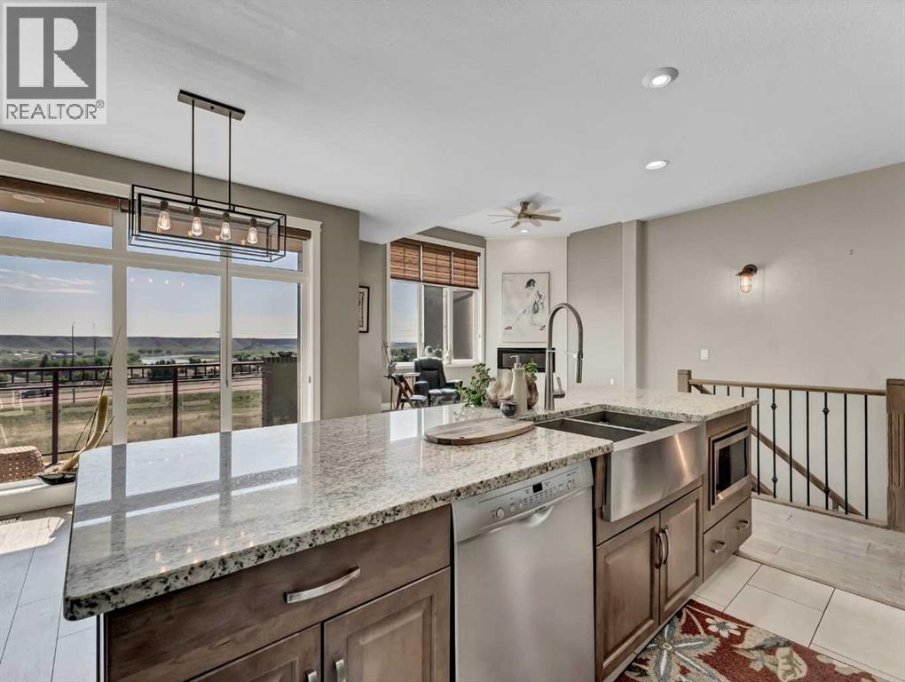 Welcome to The Palisades! This unit boasts a tweaked interior design which resonates with the executive living style. Top notch elements are featured within the choice of finishings throughout this unit. Exquisite light fixtures and attention to detail are evident. Open design kitchen with appliance package, granite counters, island with sink, counter top stove, built-in oven- all tie in to the openness of the main living area. The master suite is on the main level with an ensuite featuring double sinks with lots of counter-space and a Walkin tiled shower. The lower level has another bedroom comparable to the Primary, complete with an en-suite as well perfect for visiting company. (may be hard for them to leave!) The Palisades is noted for their oversized windows which offer a fabulous river valley views to enjoy from insideor from your deckor patio while sipping on one of your favorite beverages. Come and take a walk through this impressive design, where your new lifestyle begins. (id:53676)
