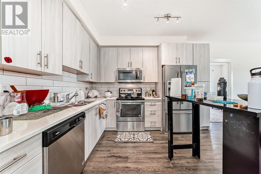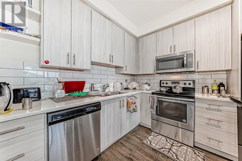 BEST PRICED TOP-FLOOR CORNER UNIT in LEGACY – Loaded with Upgrades & Move-In Ready! Welcome to Legacy, one of Calgary’s fastest-growing and most celebrated communities—designed for families, professionals, and investors alike! Known for its expansive green spaces, scenic walking paths, vibrant retail plazas, and quick access to Stoney Trail, Macleod Trail, South Health Campus,and Township Shopping Centre, this master-planned neighborhood is a destination for smart living.This TOP-FLOOR CORNER UNIT at 215 Legacy Blvd SE truly stands out—offering unmatched privacy, an abundance of natural light, and superior finishes throughout its -792.2 sq. ft. of beautifully upgraded living space. Built in 2018,, this home offers the ideal blend of modern design and worry-free ownership. Features That Set It Apart:Central Air Conditioning – Stay cool all summer!9-ft ceilings & oversized windows for a bright, airy feelGourmet kitchen with extended soft-close cabinetry, quartz countertops, upgraded stainless steel appliances, and large center island —ideal for hosting or meal preppingCustom walk-in closet in the spacious primary bedroom with a private ensuiteFull second bathroom and second bedroom—perfect for guests, office, or rental potentialIn-suite front-load laundry for total conveniencePrivate balcony with gas BBQ hookup —perfect for morning coffee or summer grillingTitled underground parking + storage locker directly in front of the stallMove-in ready with full window covering package and drapes in the primary bedroomAll this in a quiet, well-maintained building steps from Legacy Park, playgrounds, transit stops, and planned future schools. Whether you’re a first-time buyer, downsizer, or investor, this suite checks every box—and then some.Offered at the BEST PRICE in the building for a unit of this calibre! Don’t miss the rare opportunity to own a top-floor, corner unit with upgrades and lifestyle perks that truly stand out.Legacy Living Starts Here – B ook your private showing today and experience the difference! (id:53676)