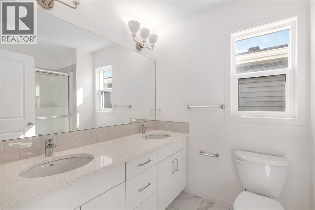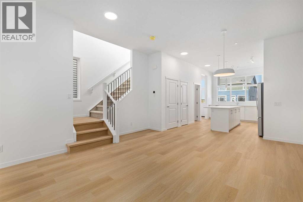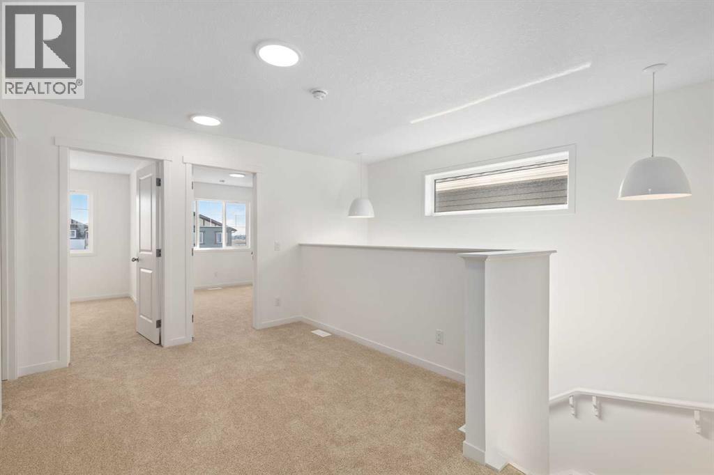 Welcome to this brand-new “Lyall” floor plan, a beautifully crafted home that blends modern style with functional design. From the moment you step inside, you’re greeted by soaring 10’ ceilings and warm luxury vinyl plank flooring that flows throughout the main level. At the front, a versatile flex room offers the perfect space for a home office, reading nook, or play area. Moving toward the back, the open-concept living space unfolds with a bright and inviting living room, complete with an elegant electric fireplace, an oversized dining area ideal for family gatherings, and a stunning kitchen that serves as the heart of the home. The kitchen is a true showpiece, featuring timeless white cabinetry extended to the ceiling, quartz countertops, a hammered white subway tile backsplash that wraps around the sleek range hoodfan, stainless steel appliances, and a spacious island—perfect for both everyday meals and entertaining. Upstairs, a central loft provides a flexible second living space and creates separation between the primary suite and the additional bedrooms. The staircase is highlighted with modern black spindle railing, adding a contemporary touch to the home’s design. The spacious primary retreat includes a walk-in closet and a spa-inspired 4-piece ensuite with dual sinks. Two more bedrooms, a full 4-piece bathroom, and a convenient upper laundry room complete this level. The fully finished basement adds incredible value with two additional bedrooms, a large rec room, and a 4-piece bathroom. With a separate entrance, it’s roughed in for a wet bar and extra laundry. Located in the growing southeast community of Hotchkiss, this home offers more than just a beautiful interior. Residents here enjoy a family-friendly setting with scenic pathways, green spaces, and quick access to major routes like Stoney Trail and Deerfoot. You’re also just minutes away from the amenities of Seton, including restaurants, shopping, the South Health Campus, and recreation options. Thi s is your opportunity to own a brand-new, move-in ready home in one of Calgary’s up-and-coming communities—complete with a finished basement and high-end upgrades that make it truly stand out. (id:53676)