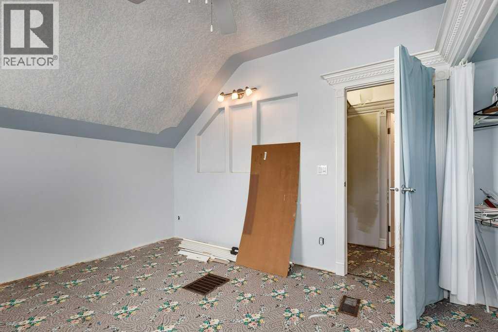 Welcome to a character-filled 1½-storey home in the heart of Innisfail! Bursting with charm and natural light, this 3-bedroom, 2-bath property blends functional living and a bright, open layout! Step inside through the inviting entry room- perfect for coats, shoes, and seasonal gear-featuring a garden door that leads into the cozy living room, where warm hardwood floors and large windows create a bright, welcoming space. The living area flows seamlessly into the kitchen, which offers generous cabinetry, excellent prep space, and a sunny dining area. Beyond the kitchen, a spacious laundry/mudroom provides convenient access to the back deck and yard-ideal for families, pets, and outdoor entertaining with multiple garden spaces and fruit trees. The main floor includes a comfortable bedroom and a 3-piece bath, offering flexibility for guests or main-level living. Upstairs, you’ll find two additional bedrooms, including a large primary bedroom with custom built-in closets, accent lighting, and charming display nooks framed by elegant crown molding with integrated lighting-a truly unique feature that adds warmth and personality. A 3-piece bath with a classic clawfoot tub completes the upper level. Outside, you’ll love the fenced yard with alley access to a detached single garage-ideal for parking, storage, or a workshop- along with additional space for RV or off-street parking. A partial basement offers extra storage and workspace options. Located steps from schools, parks, and Innisfail’s downtown core, this home delivers both charm and practicality and is perfect for first-time home buyer, investors, or anyone seeking a well-maintained home with character to add your personal touches! (id:53676)