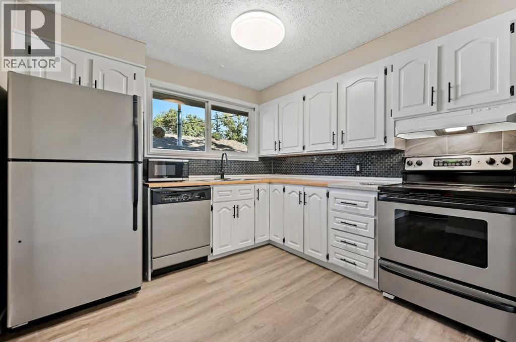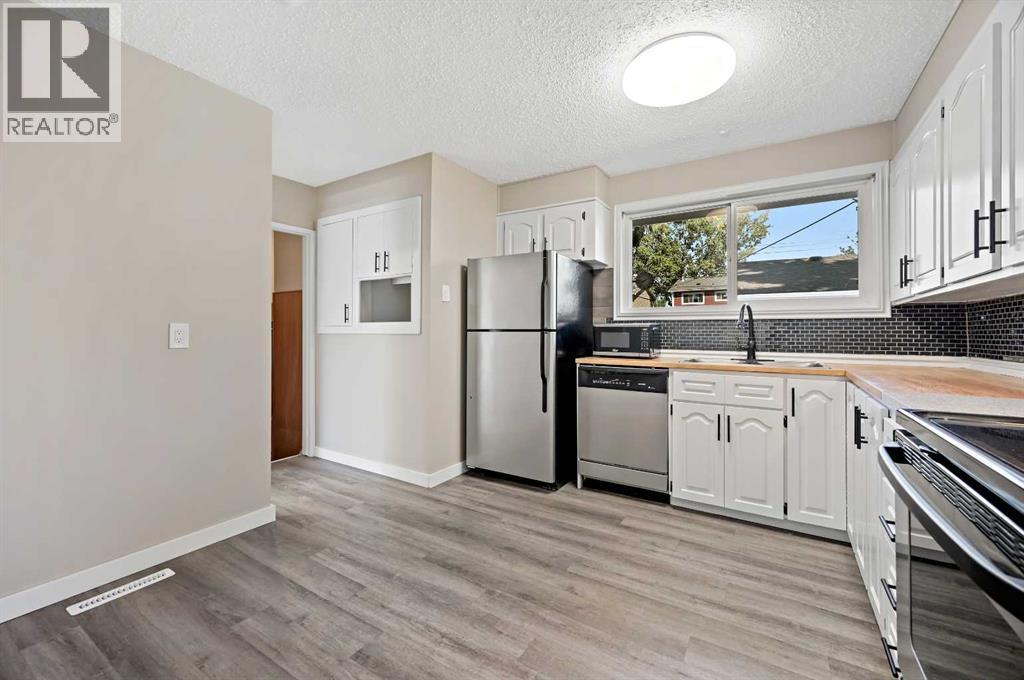 Welcome to 4524 Fordham Crescent – a beautifully updated bungalow offering the perfect blend of mid-century charm and modern upgrades. Built in 1962, this home has been thoughtfully refreshed with brand new vinyl plank flooring and fresh paint throughout, creating a warm and welcoming space for your family. The open-concept living and dining area is flooded with natural light through a large front window, making it the ideal space to relax or entertain.With 3 bedrooms and a full 4-piece bathroom featuring a jetted bathtub, comfort and functionality meet style in every corner. The kitchen has been recently upgraded, showcasing granite countertops, a wood butcher block accent, stainless steel appliances, and ample cabinetry—perfect for any home chef.Enjoy additional updates like new baseboards and touches of wood paneling that bring texture and charm. The primary bedroom features a generous closet, and the full undeveloped basement provides endless possibilities for future development—whether you envision a recreation space, home gym, or more. The basement also features a brand new electrical panel and new furnace, offering modern efficiency and peace of mind for years to come.The oversized garage is a true bonus, complete with stone siding, a wood-burning stove (as-is), and a gas line, making it a dream setup for car hobbyists or workshop lovers. There’s also RV parking and plenty of driveway space for all your toys.The private backyard is a peaceful retreat, framed by mature pine trees that bring timeless character and beauty. Stone siding carries through the exterior for a cohesive look that stands out in the neighborhood.This is an excellent family home offering space, comfort, and flexibility in a quiet, established area. With exceptional value and quality upgrades throughout, 4524 Fordham Crescent is ready to welcome its next chapter. (id:53676)