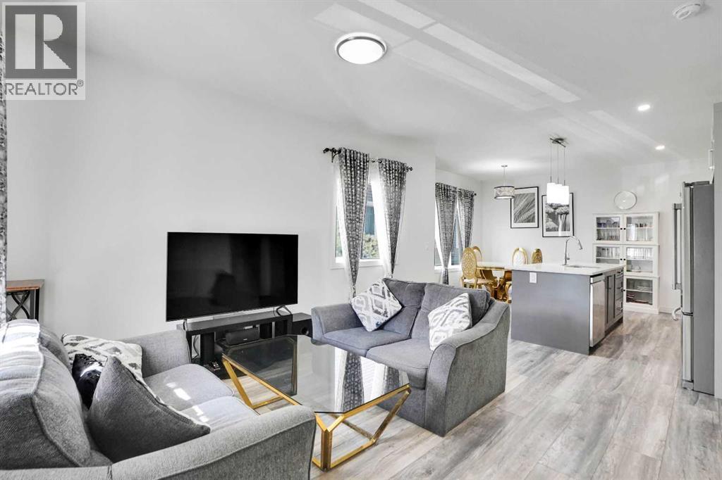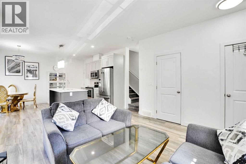 This sun-filled corner townhome is move-in ready and designed for modern living. With south and west-facing windows, the open-concept main floor is bright and welcoming, featuring 9’ ceilings, a spacious living area, and a stunning kitchen with quartz counters, a large island, stainless steel appliances, and plenty of storage—perfect for both everyday living and entertaining.Upstairs, you’ll find two generous bedrooms with walkin closet in primary bedroom, a stylish 4-piece bathroom with a quartz vanity, and the convenience of upper-level laundry. The fully developed basement adds even more space with a third bedroom, a second full bath, and a versatile den ideal for a home office, gym, or flex room.Additional highlights include:- Single Garage with additional parking pad to park other car.- Front porch balcony for morning coffee or evening relaxation- Durable finishes: vinyl, ceramic tile, and carpet flooring- High ceilings, open floorplan, walk-in closet, and quartz counters- No animal home, no smoking home – well-maintained and move-in ready- Close to lakes, parks, playgrounds, shopping, sidewalks, and street lightingWith its blend of modern finishes, functional layout, and desirable location, this home offers the comfort and convenience you’ve been looking for. Book your showing today! (id:53676)