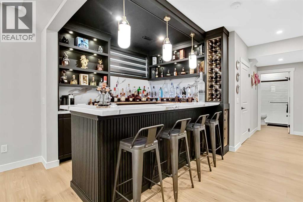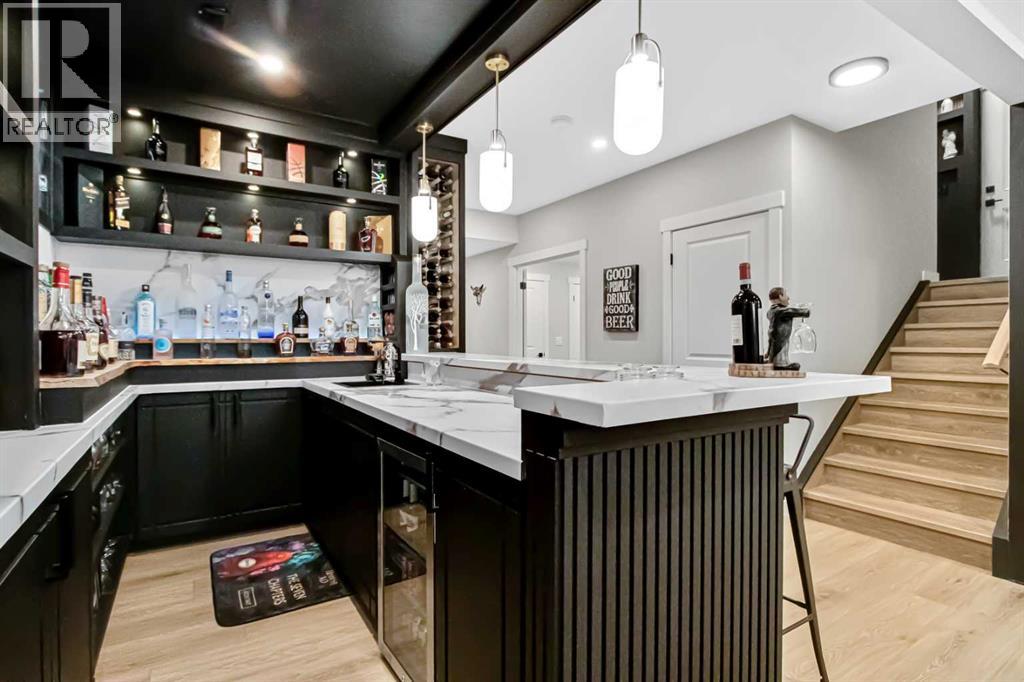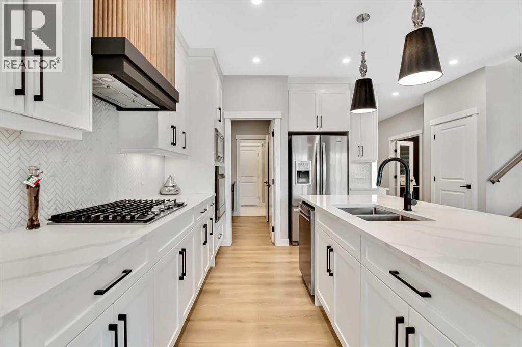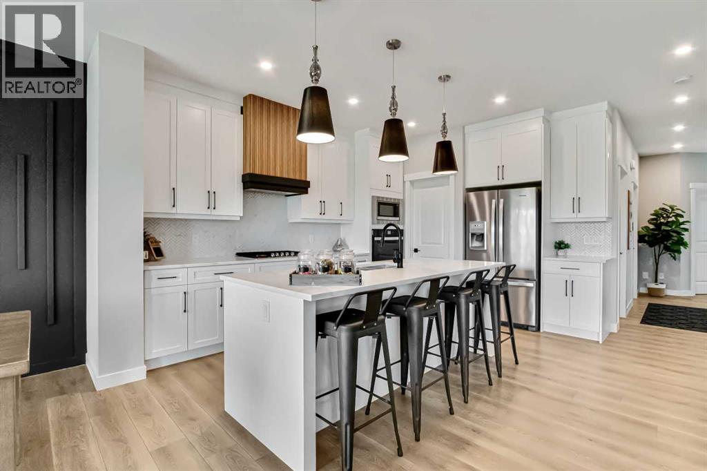 Pond views, sunset evenings and thoughtfully designed spaces for everyday living - welcome to one of Wedderburn’s most desirable offerings. Backing directly onto the pond and pathway system, this exceptional home delivers a rare blend of privacy and connection to nature. Walking distance to schools, park, dog park and pump track, this location offers an ideal balance of outdoor living and everyday convenience. The professionally landscaped backyard is designed for unforgettable gatherings, featuring a custom patio with fire pit, pergola lounge area and serene water views that create a true retreat. The rear deck with BBQ gas line extends the entertaining space, making it effortless to host in every season.Inside, the main level offers beautifully defined yet connected living zones. A dedicated home office provides quiet focus, while the enclosed flex/media room with French doors is ideal for kids study, gaming, or additional lounge space. The inviting family room with modern fireplace flows seamlessly into the gourmet kitchen - complete with built in appliances, gas cooktop, quartz countertops and a walk through pantry - creating the perfect setting for both daily life and entertaining. Upstairs, the primary suite is a private retreat featuring a spa inspired ensuite with jetted tub, rain head shower and generous walk in closet. Three additional bedrooms provide flexibility for growing families - one with its own private ensuite, while the remaining two share a well appointed full bathroom. A bright bonus room overlooking the pond offers the perfect space for movie nights or relaxed family time, and the upper level laundry room adds everyday convenience. The fully finished basement is designed for entertaining, showcasing a large recreation area, custom wet bar, games space, fifth bedroom, full three piece bathroom and convenient side entrance access - offering versatility for guests or extended family. Additional highlights include custom mudroom built ins, heated garage with epoxy flooring, central air conditioning, water softener and elevated finishes throughout.Combining modern design, functional family living and breathtaking pond views, this home offers a lifestyle opportunity rarely available in today’s market. Some photos were taken in August 2025 to highlight the pond during the summer season. (id:53676)
