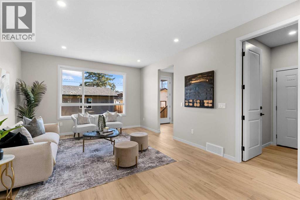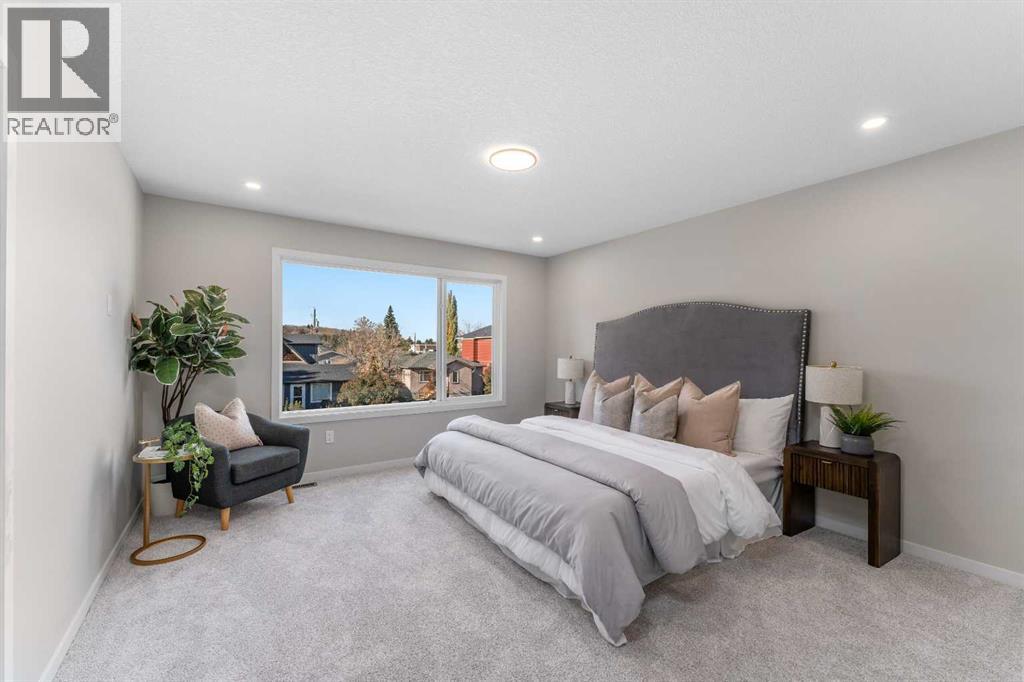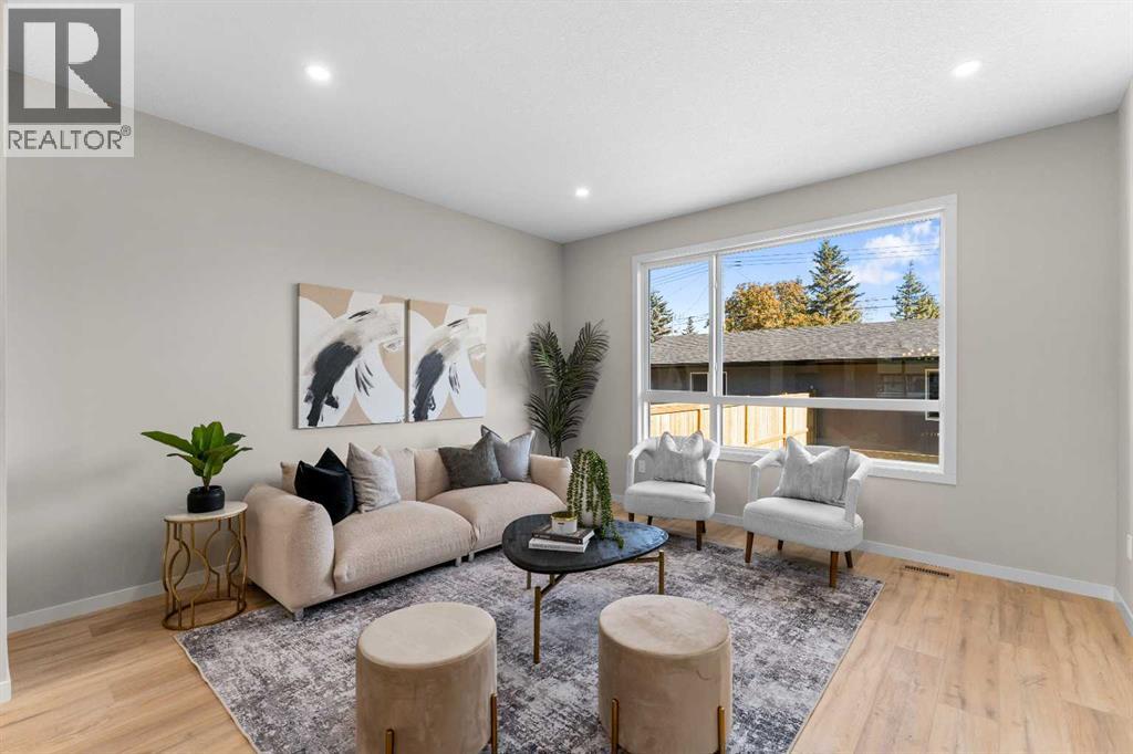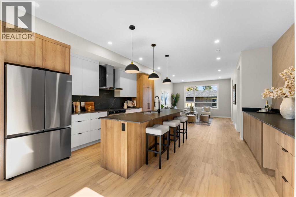 Discover modern living at its finest in this brand-new luxury infill on a quiet street in sought-after West Bowness. This home perfectly blends style, comfort, and income potential.The open-concept main floor impresses with 9’ ceilings, large windows, designer lighting, and warm wood accents. The chef’s kitchen features quartz countertops, premium stainless-steel appliances, backsplash, and a stunning island perfect for entertaining. Enjoy cozy evenings in the spacious living room.Upstairs, the primary suite is a true retreat with a feature wall, walk-in closet, and spa-inspired ensuite with a freestanding soaker tub and rain shower. Two additional bedrooms, a stylish bathroom, and upper laundry complete this level.The legal 2-bedroom basement suite offers its own laundry, modern finishes, and a private side entrance—ideal for generating rental income or hosting extended family.Move-in ready, loaded with premium finishes, and designed for modern families who value smart investment—this home offers the perfect combination of luxury and practicality. (id:53676)