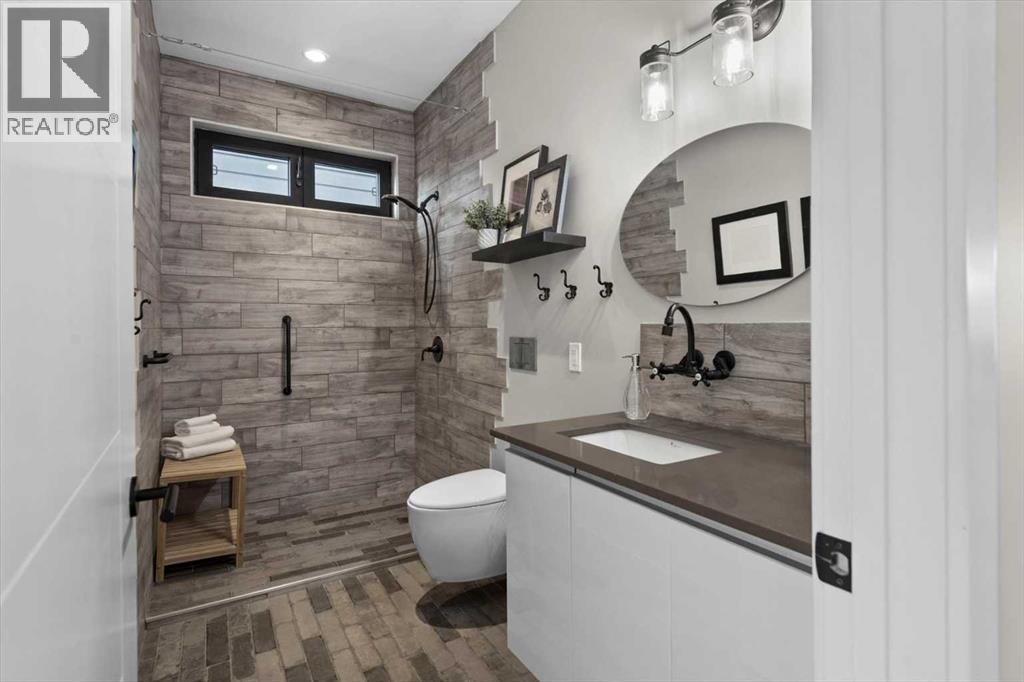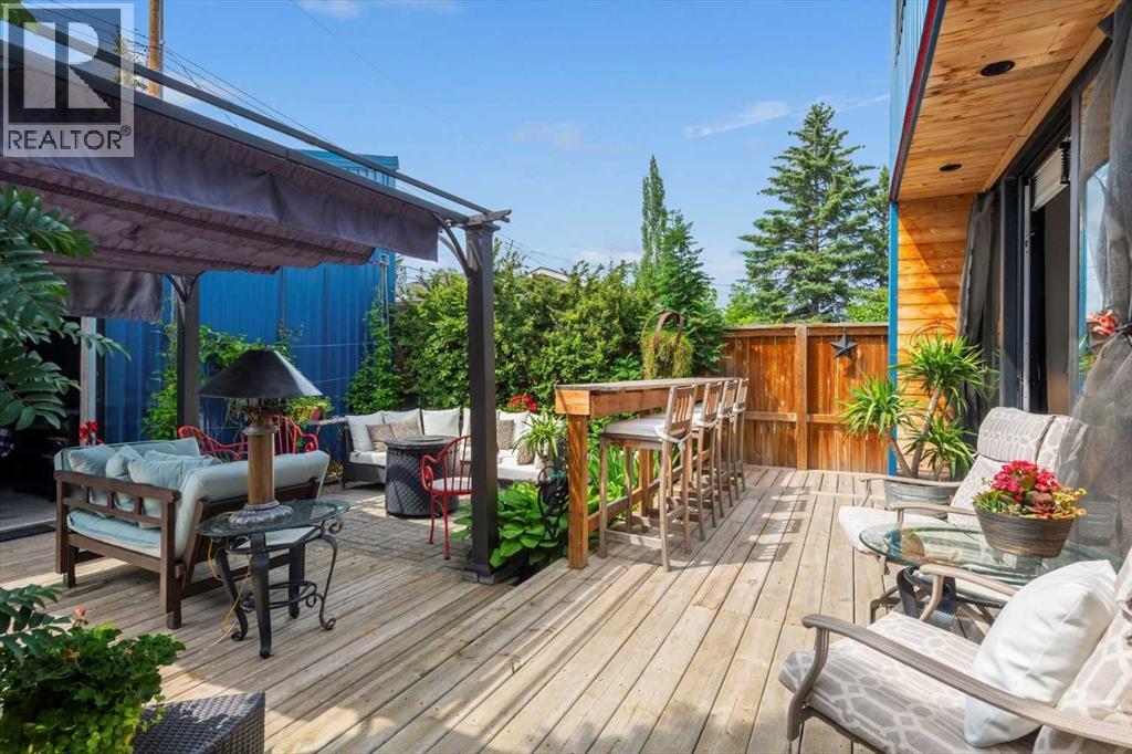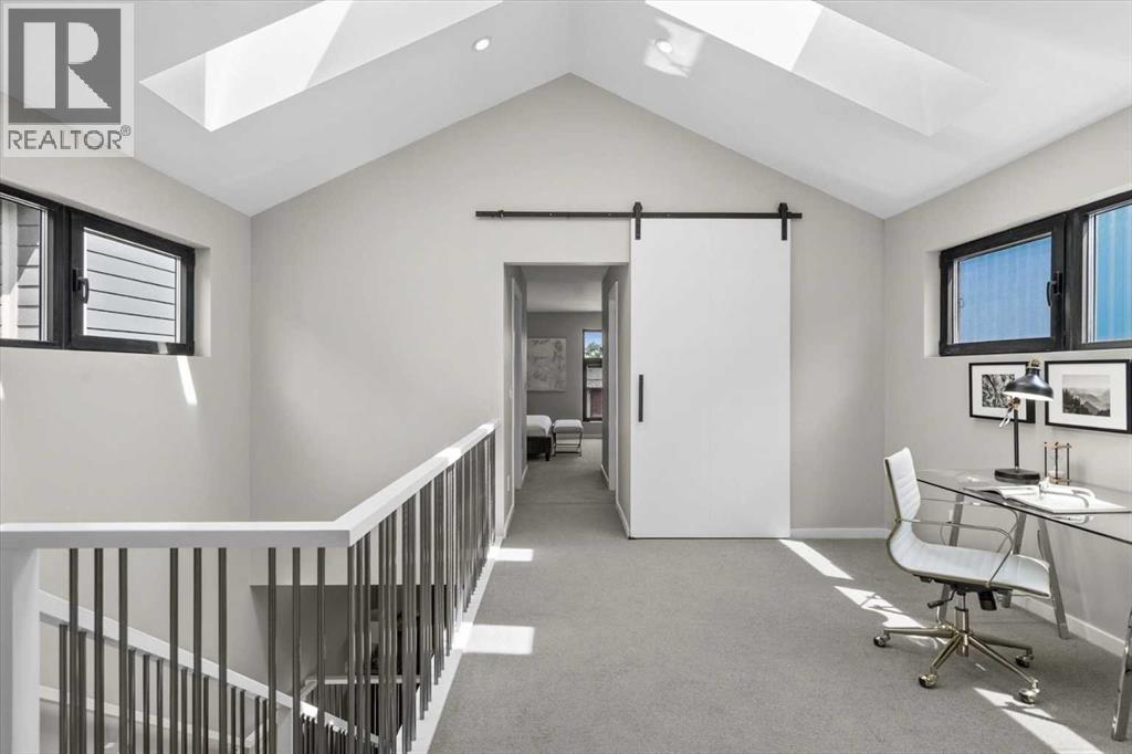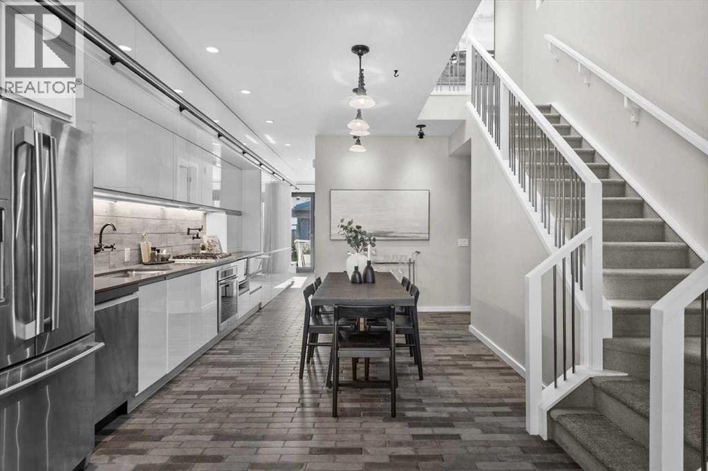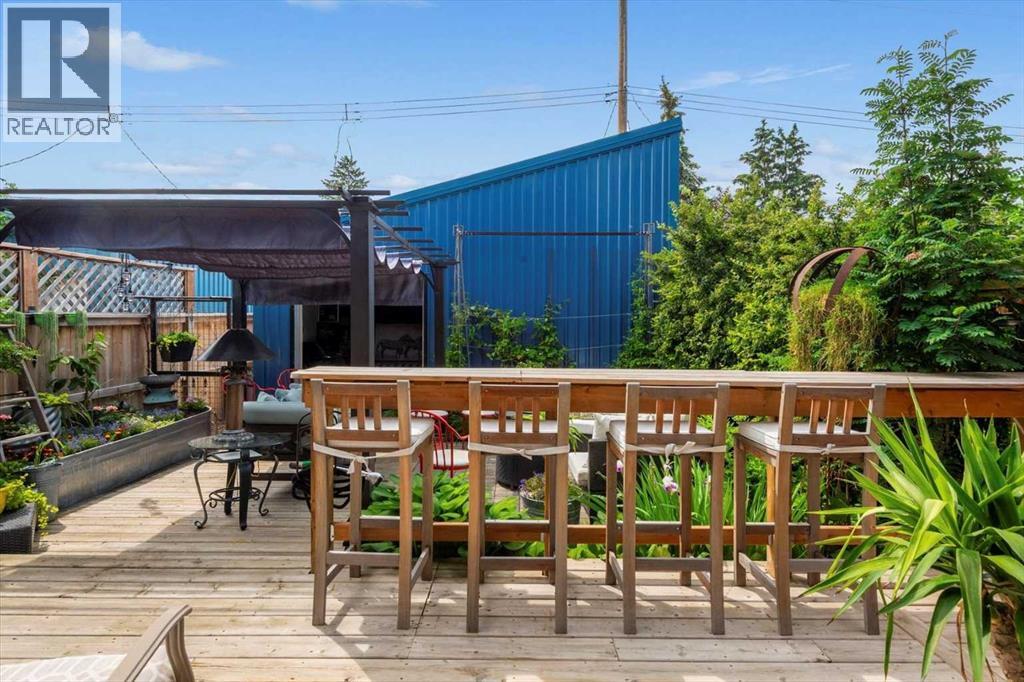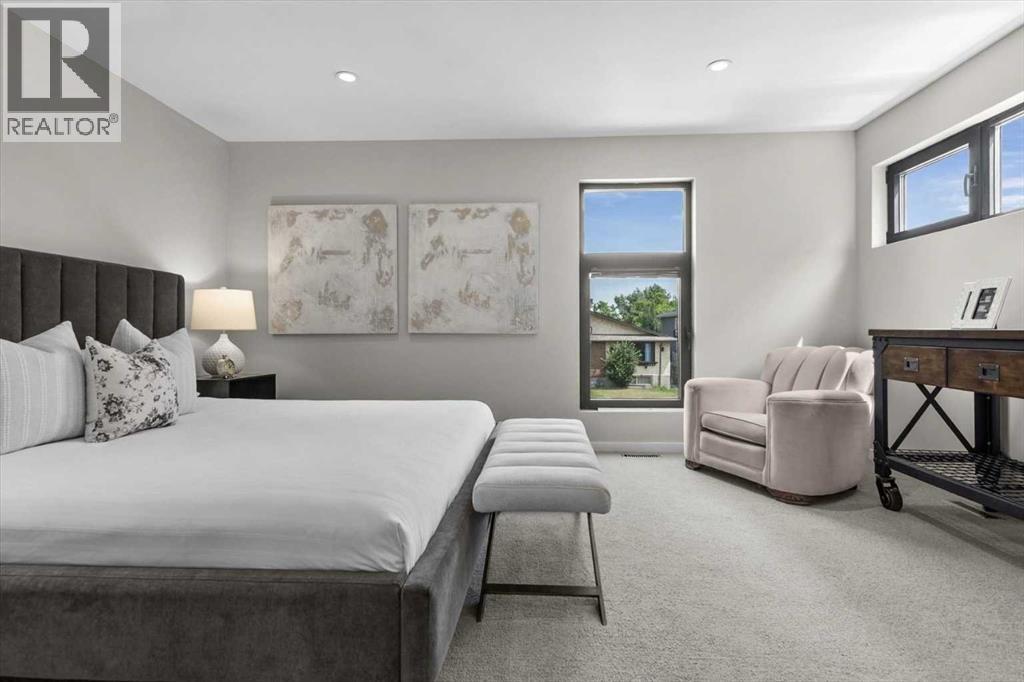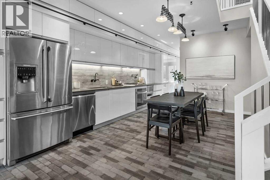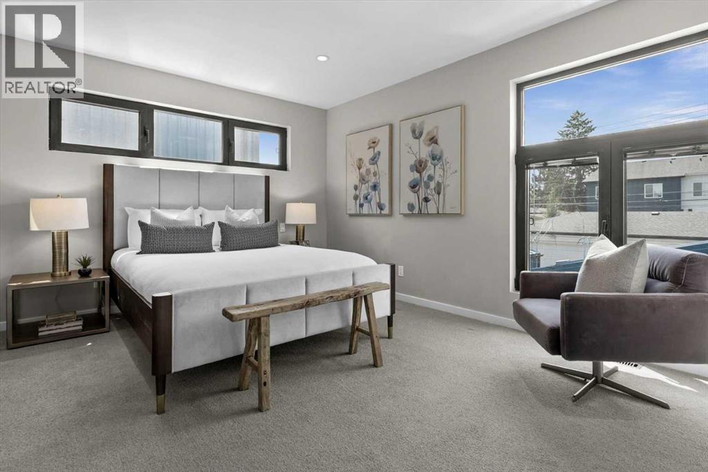 Distinctive Design in the Heart of BownessThis one-of-a-kind Bowness home showcases exceptional attention to design and detail throughout. The open-concept main floor features soaring ceilings, tilt-and-turn windows, and a cozy living area with an electric fireplace (convertible to gas). The chef-inspired kitchen offers full-height German custom cabinetry, a library ladder for upper storage, a gas cooktop with pot filler, convection oven, and pull-out pantry—perfect for seamless entertaining.A versatile main floor room (ideal as an office, den, or guest room) opens to a charming “bijou courtyard” garden. A sleek European-style wet room bath completes the level.Upstairs, skylights flood the landing with light, leading to two spacious primary suites—each with its own ensuite—and convenient upper laundry.The fully developed basement offers heated concrete floors, a third bedroom, full bath, second laundry, and a large flexible space pre-plumbed for a kitchen and gas fireplace—ideal for a guest suite or recreation area.Outdoors, enjoy a beautifully landscaped multi-level garden with stylish planters, a bar area, and a unique entertaining nook within the double garage. An outdoor shower adds convenience after gardening—or for pampered pets! Too many features to list—this extraordinary home must be seen to be fully appreciated. Book your private showing today! (id:53676)
